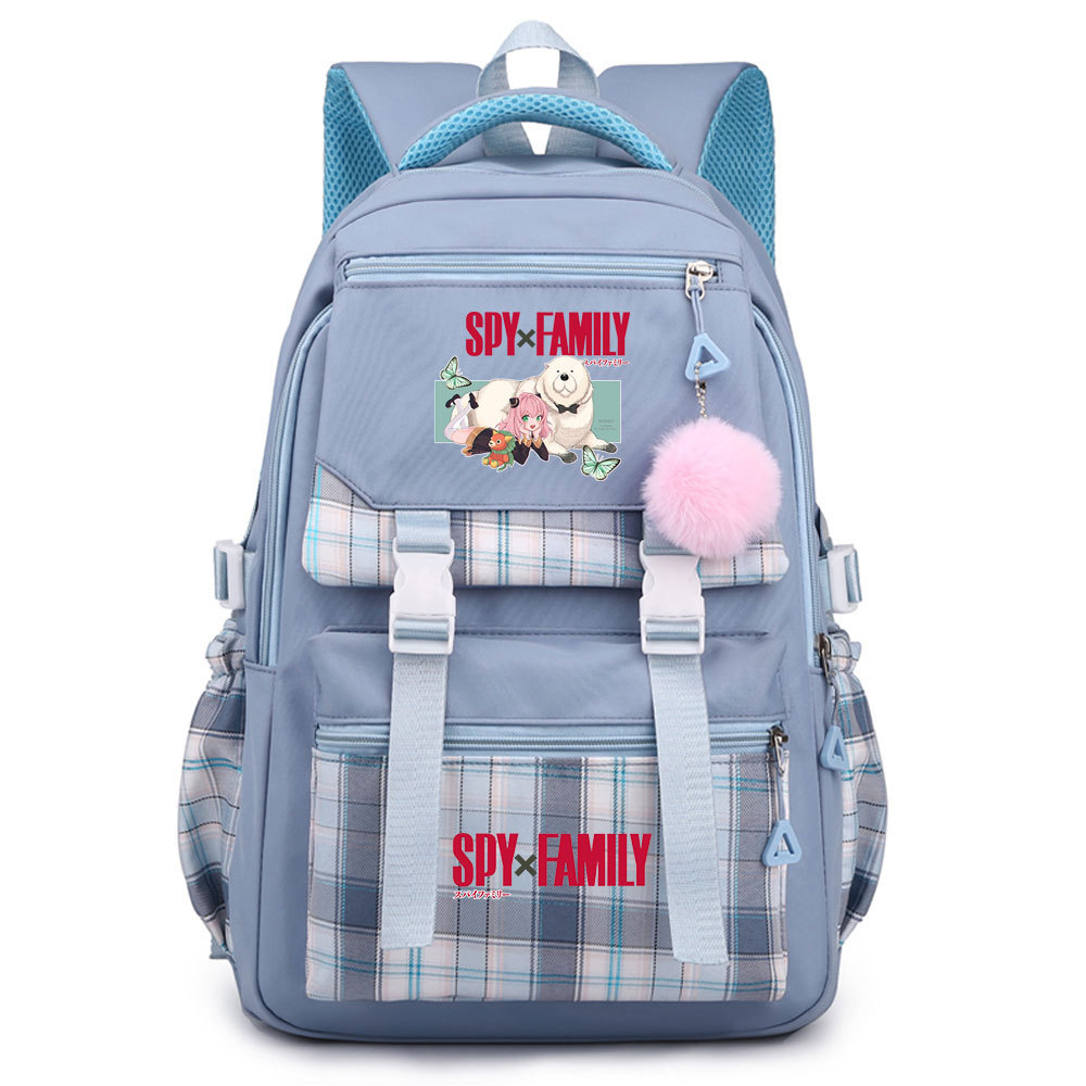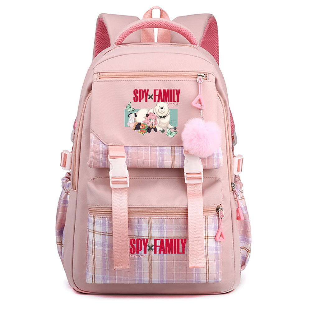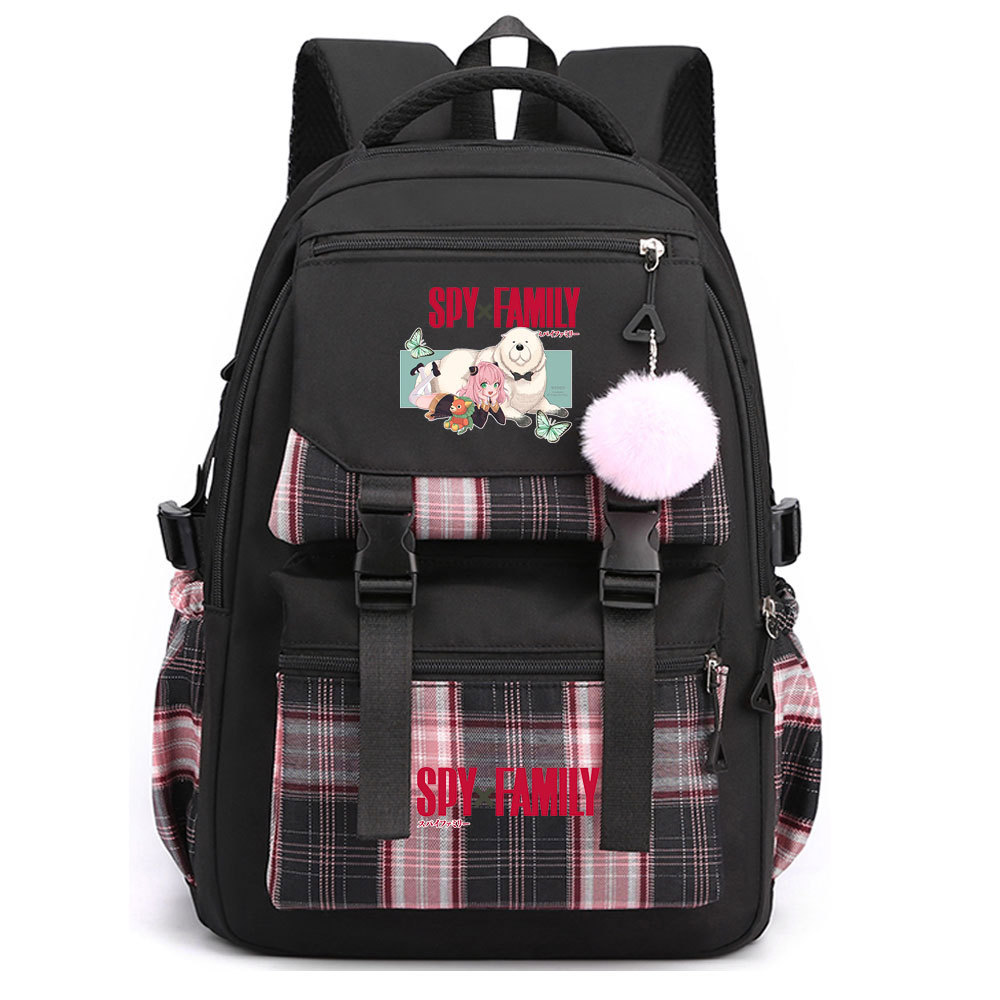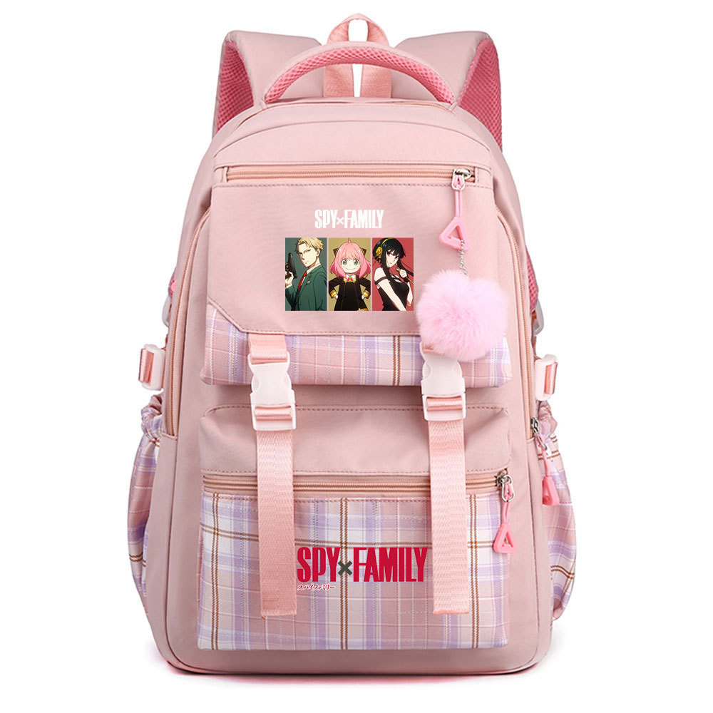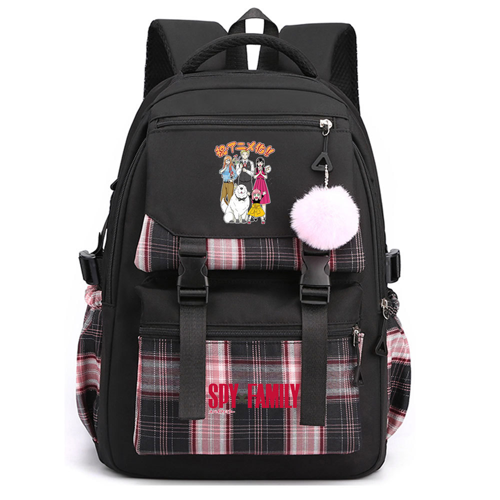 03 인쇄 일본 만화 만화 청소년 초등 및 중등 학교 가방 격자 무늬 모피 공 여성 캐주얼 경량 배낭스토어 가기