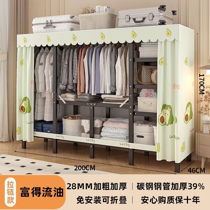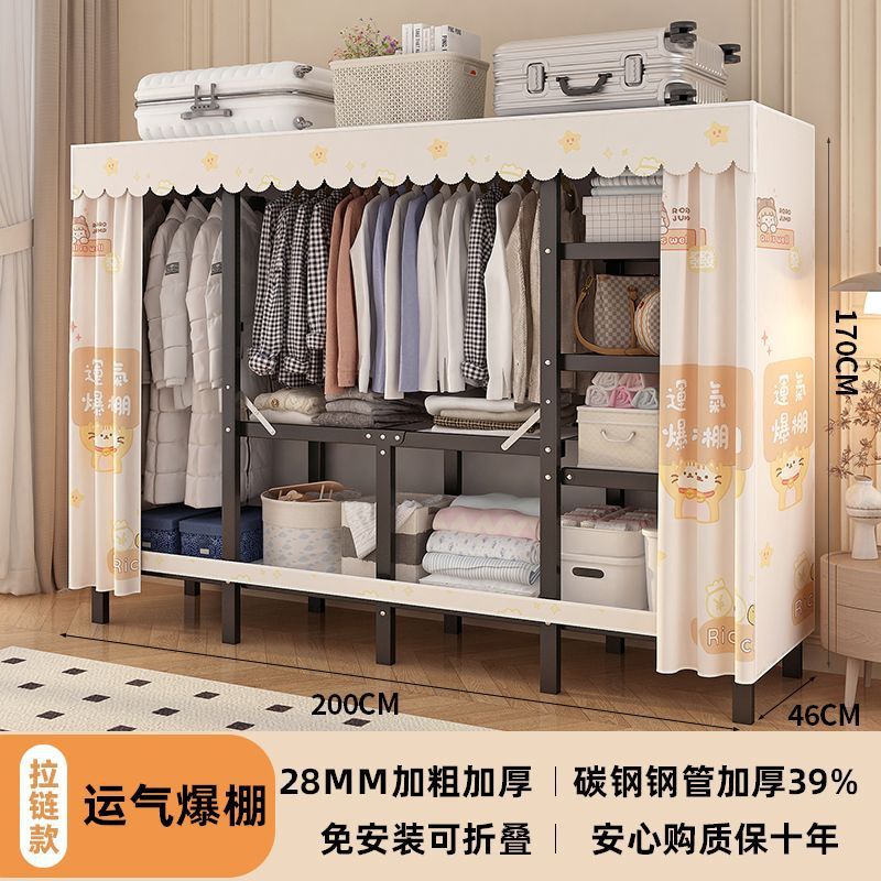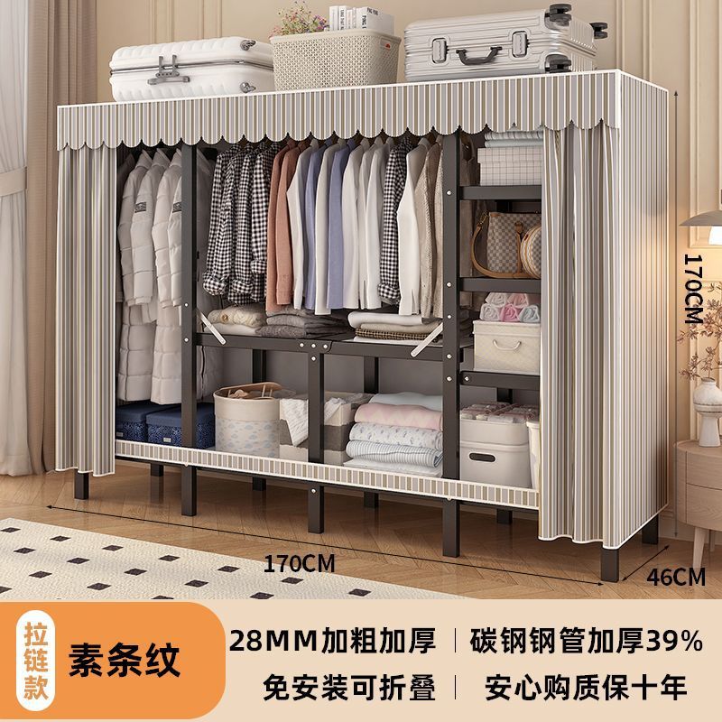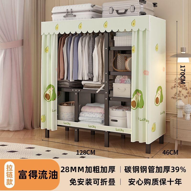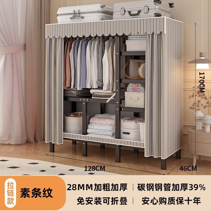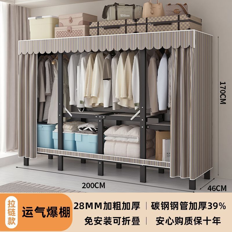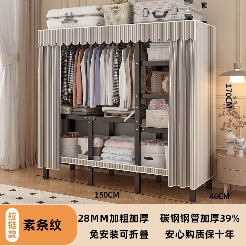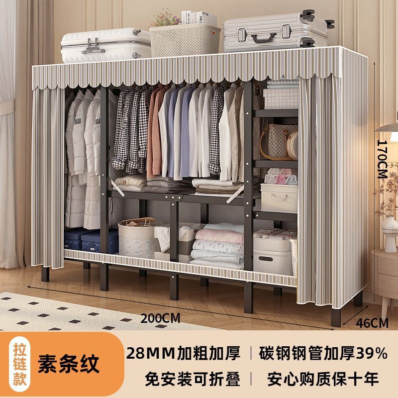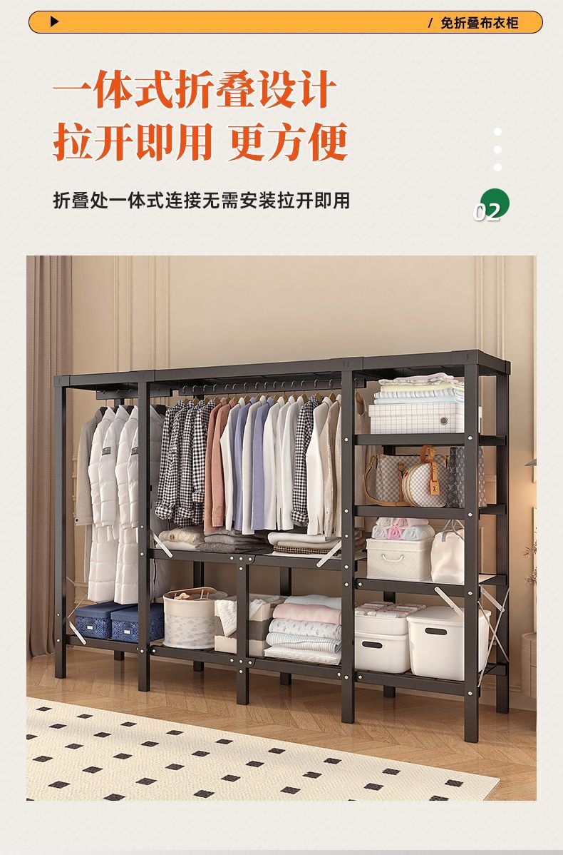 공장 직접 판매 28MM 강철 파이프 두꺼운 접이식 설치가 필요없는 옷장 전체 강철 프레임 간단한 천 옷장