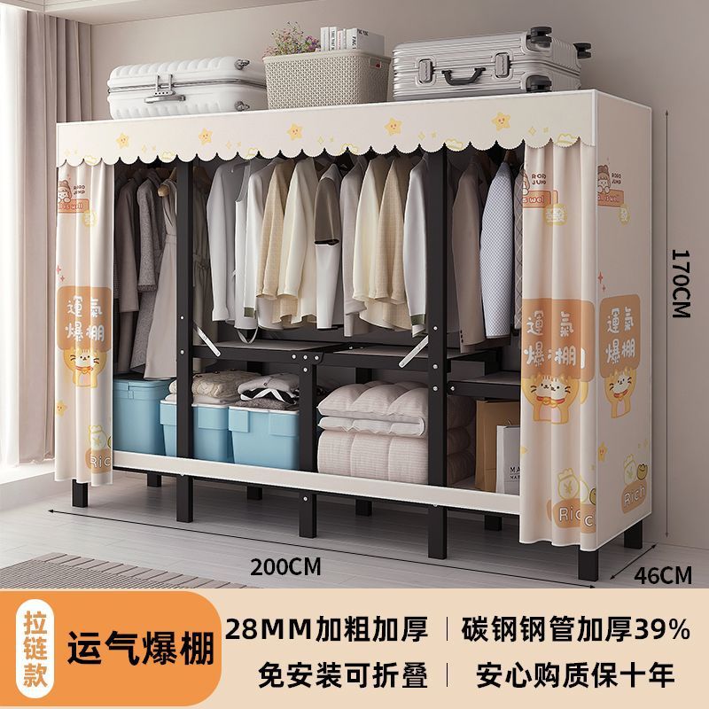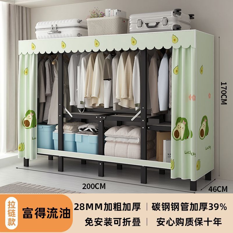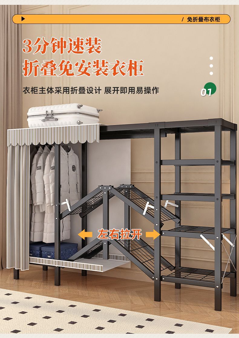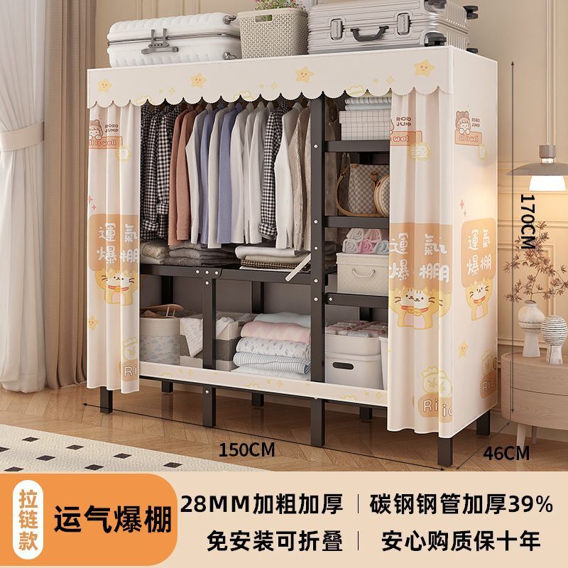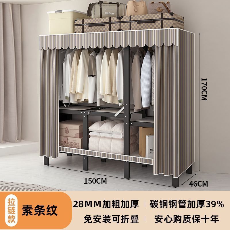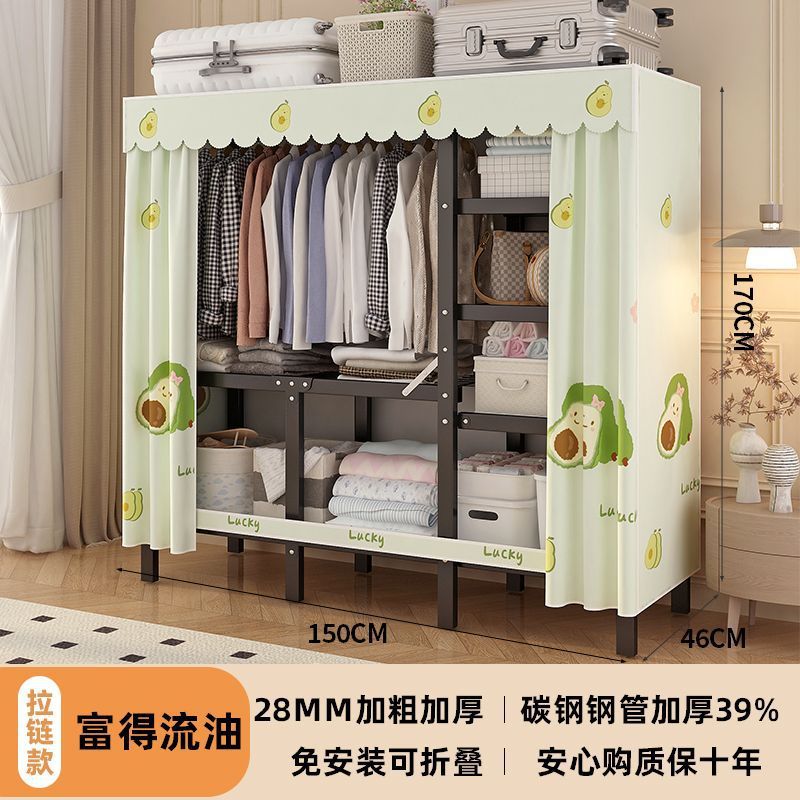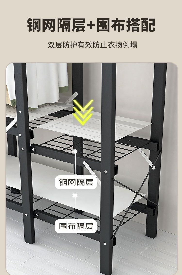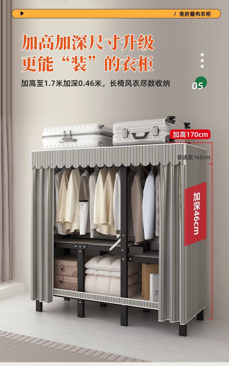 공장 직접 판매 28MM 강철 파이프 두꺼운 접이식 설치가 필요없는 옷장 전체 강철 프레임 간단한 천 옷장