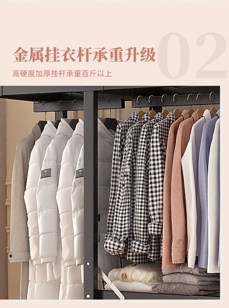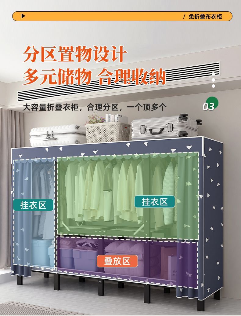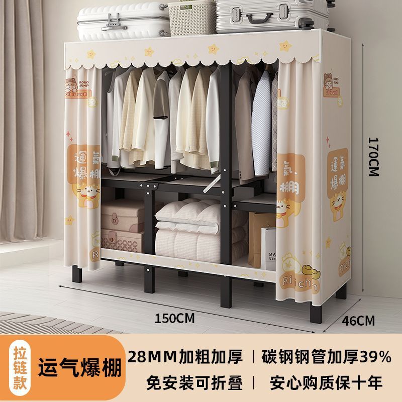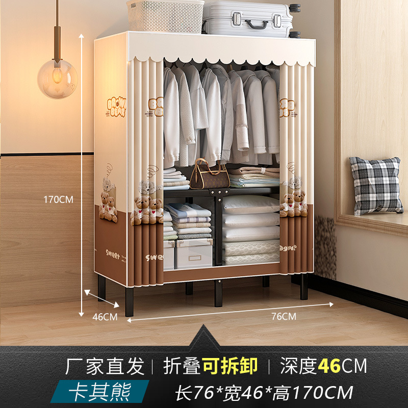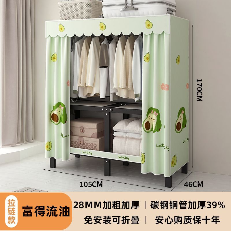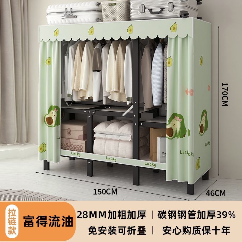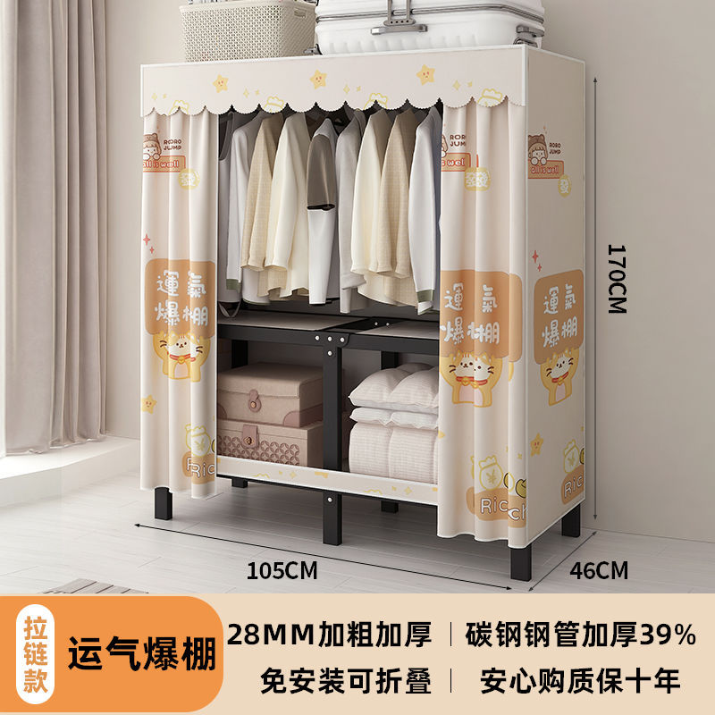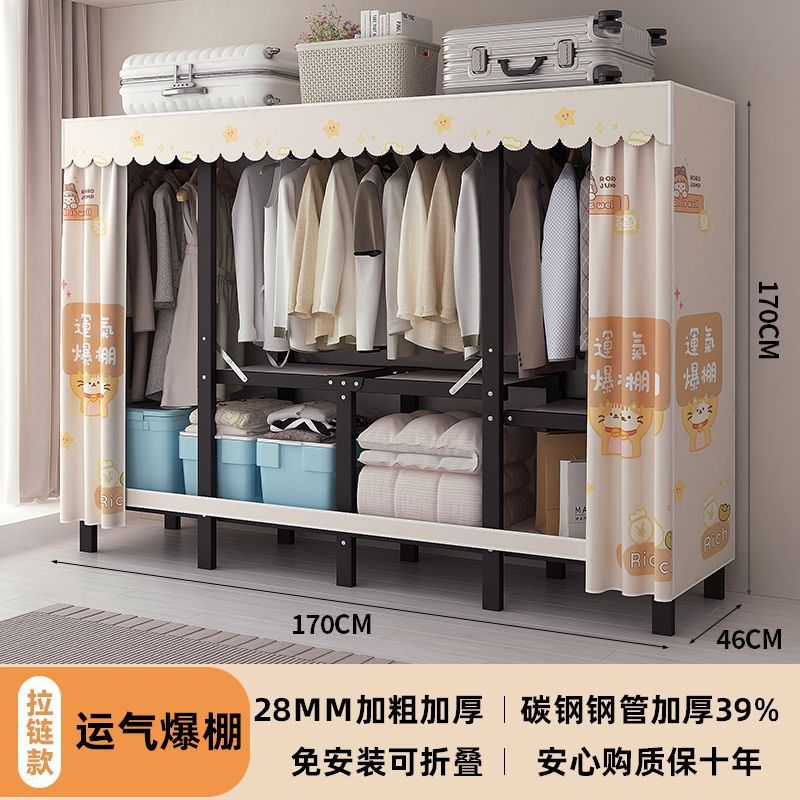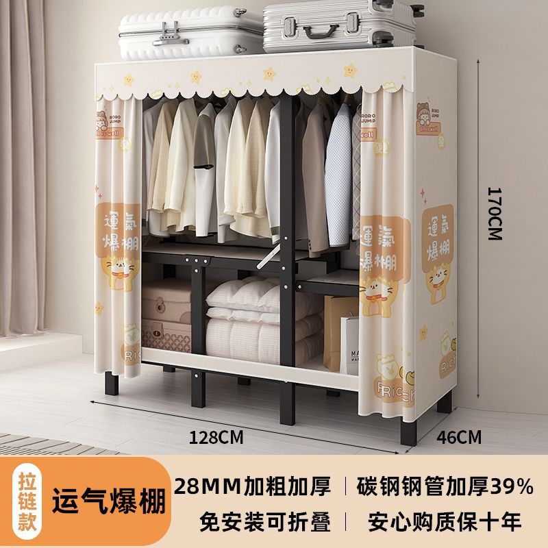 공장 직접 판매 28MM 강철 파이프 두꺼운 접이식 설치가 필요없는 옷장 전체 강철 프레임 간단한 천 옷장