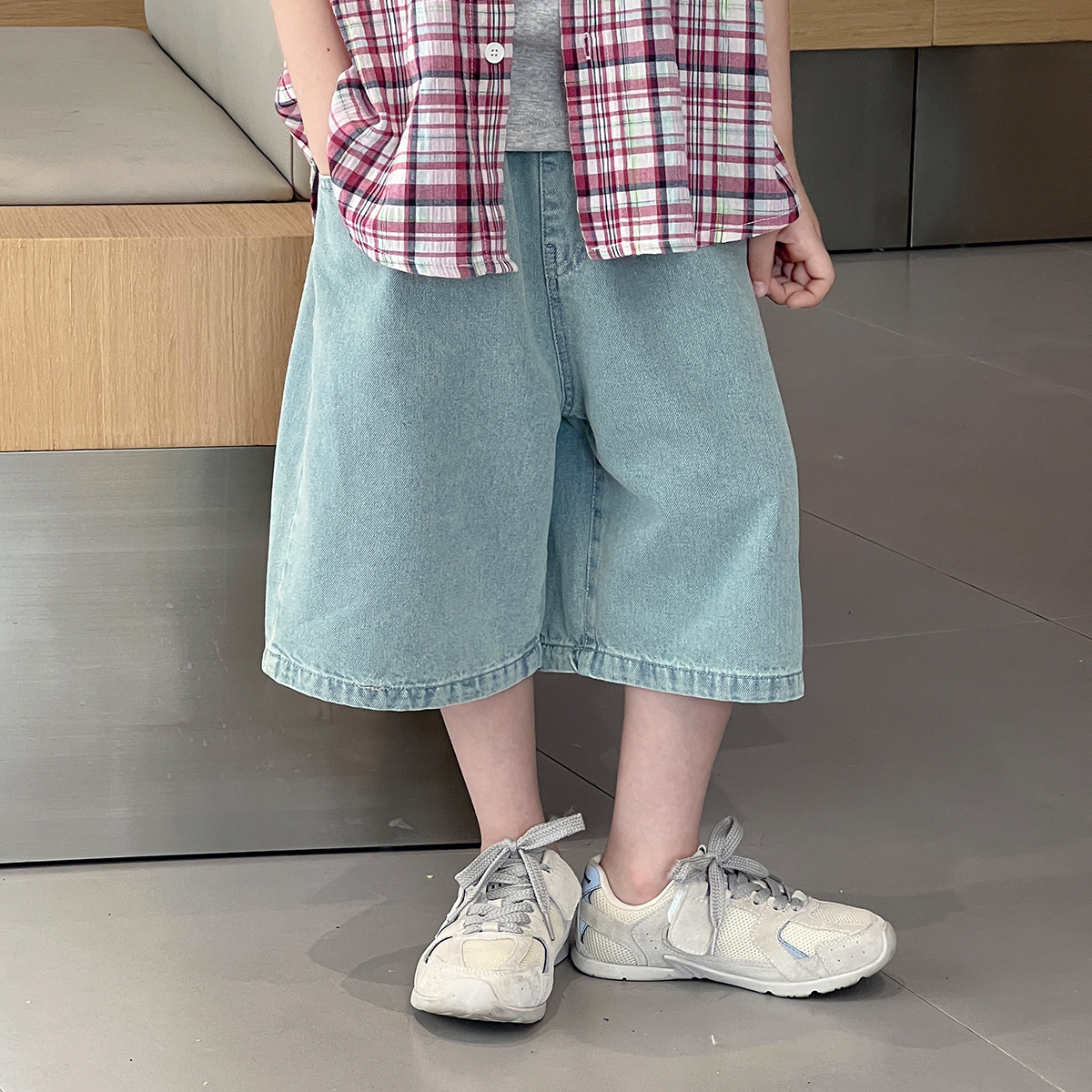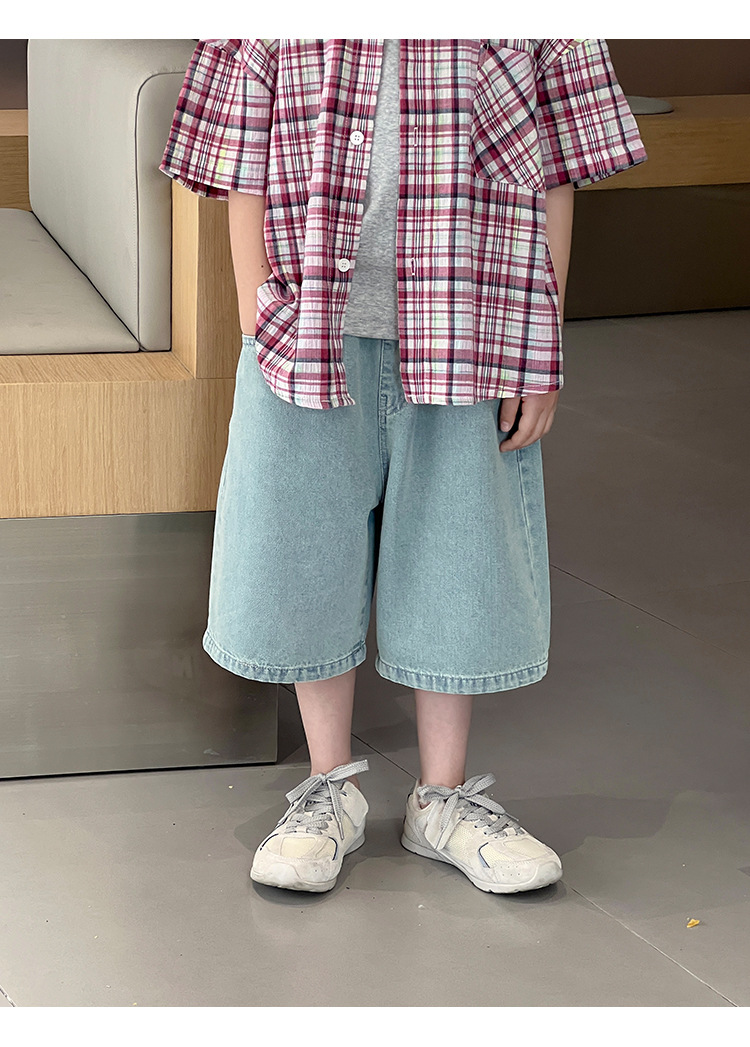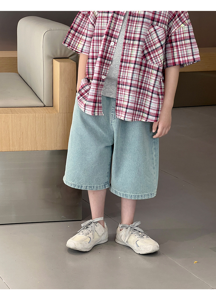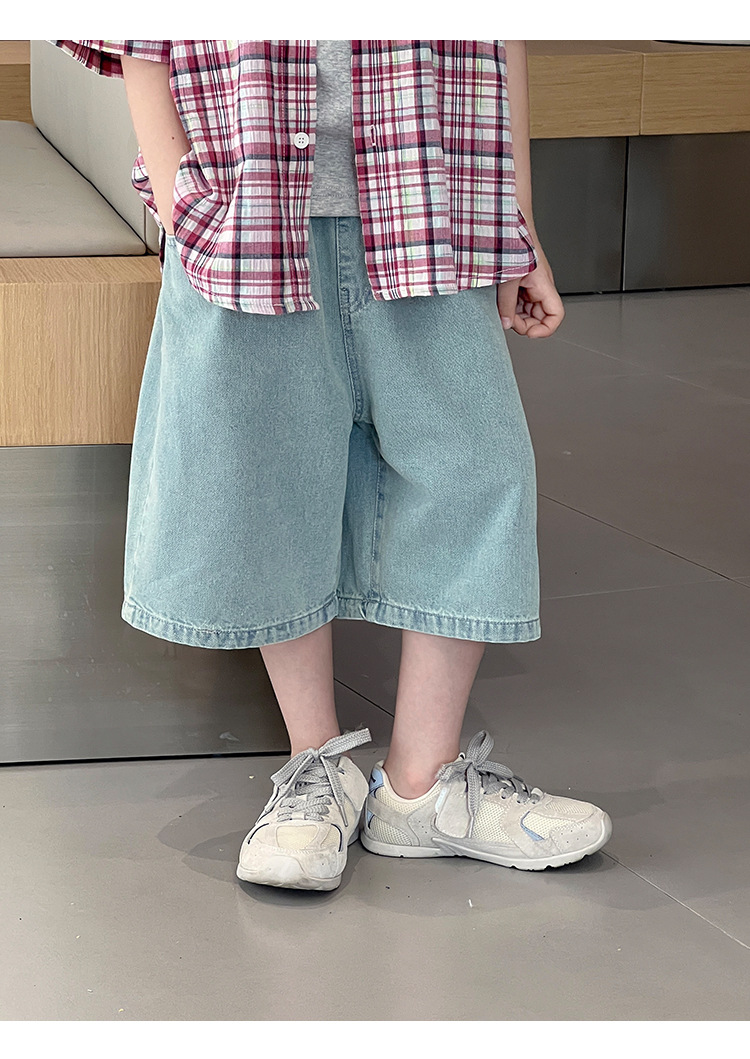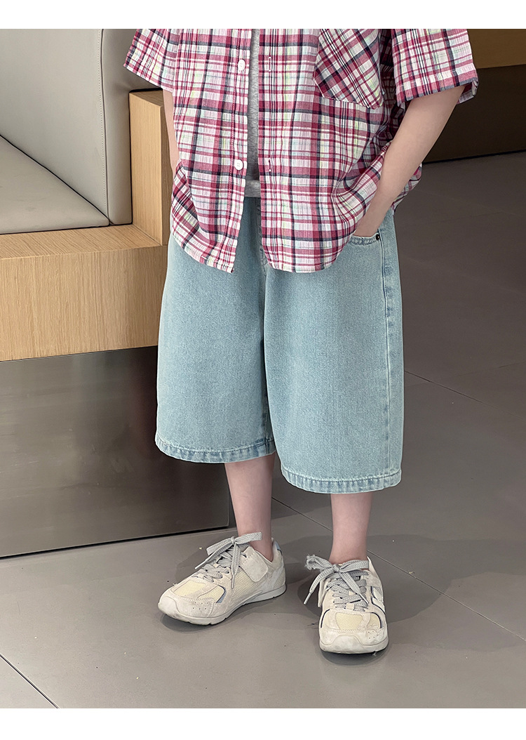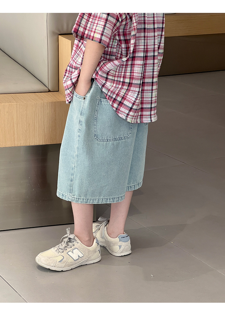 2026 여름 신상품 패셔너블한 한국 스타일 심플 아동복 클래식 데님 반바지 아동 여름 와이드 레그 5부 바지스토어 가기