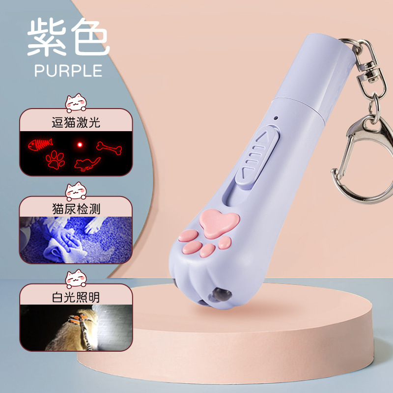 고양이 장난감 레이저 포인터 고양이 놀리는 스틱 충전식 고양이 발톱 손전등 보라색 빛 적외선 멀티 패턴 고양이 놀리는 스틱스토어 가기