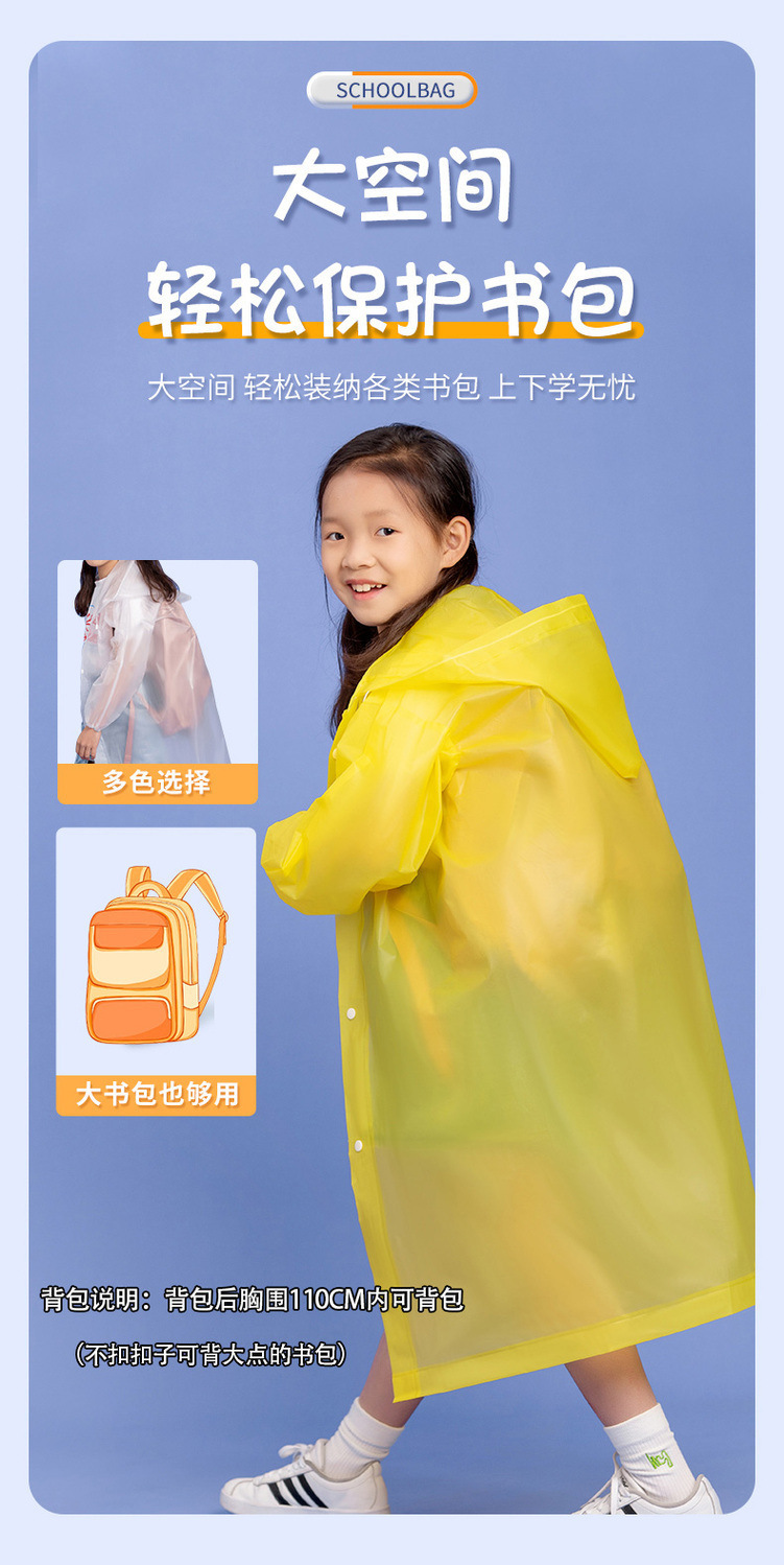 어린이 비옷, 비오는 날씨 방지, 일회용, 두껍고 내구성이 뛰어난 전신 배낭 스타일, 소년 소녀, 초등학생, 학교용
