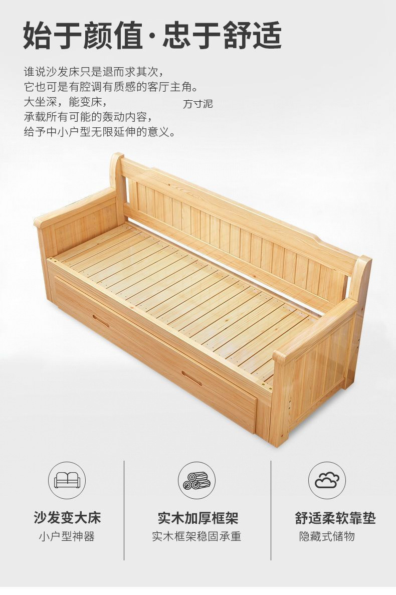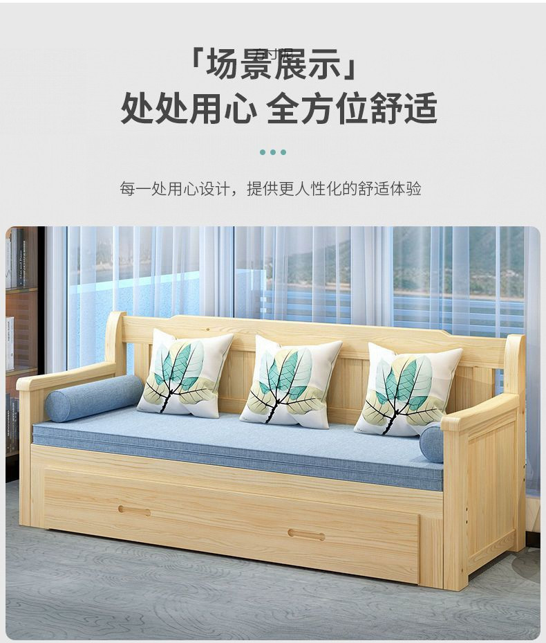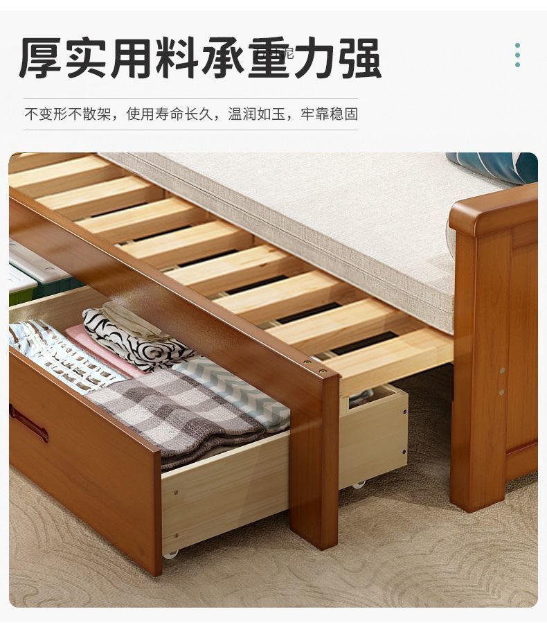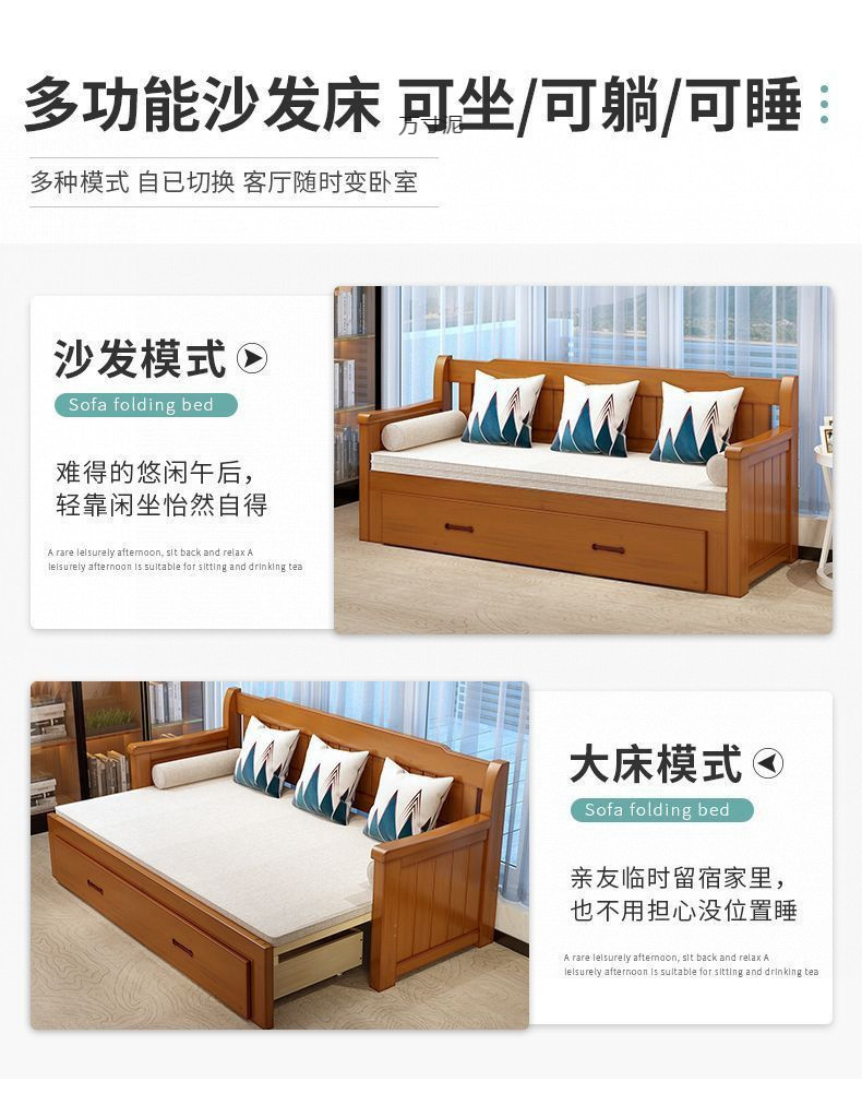 중국식 소파 베드, 원목 소파 베드, 일체형, 좌식 및 수면, 소형 거실, 다기능, 접이식 및 수납 가능, 신규스토어 가기