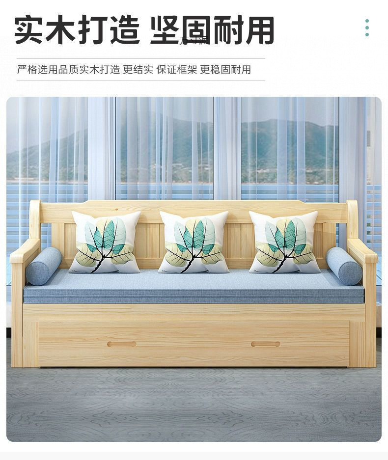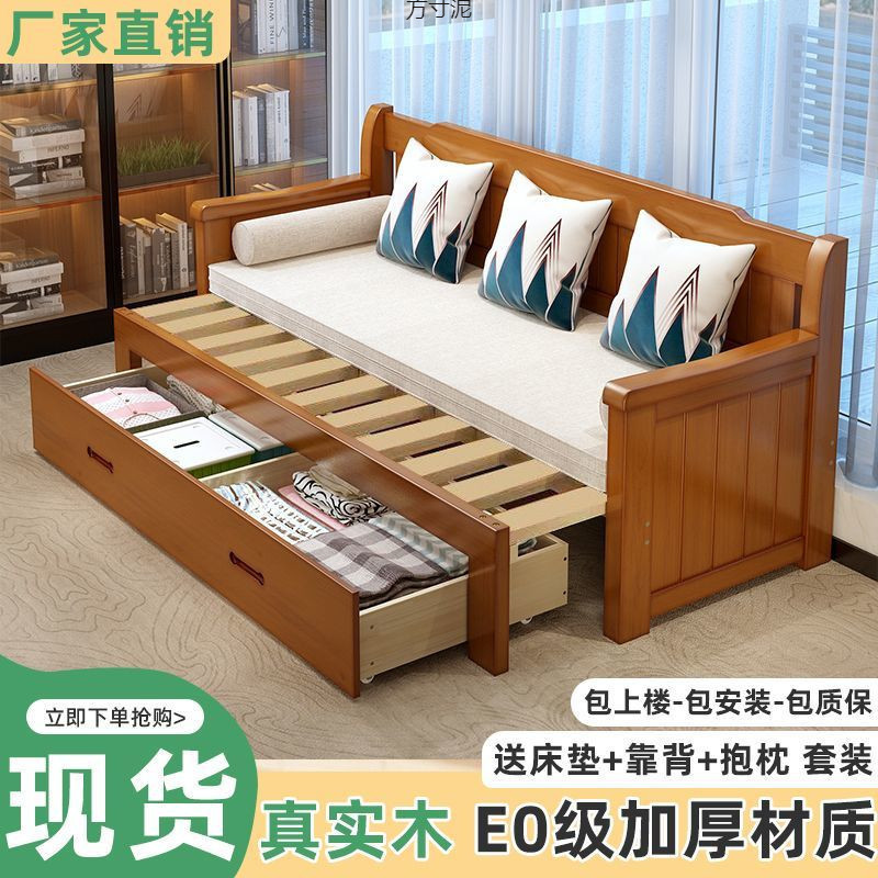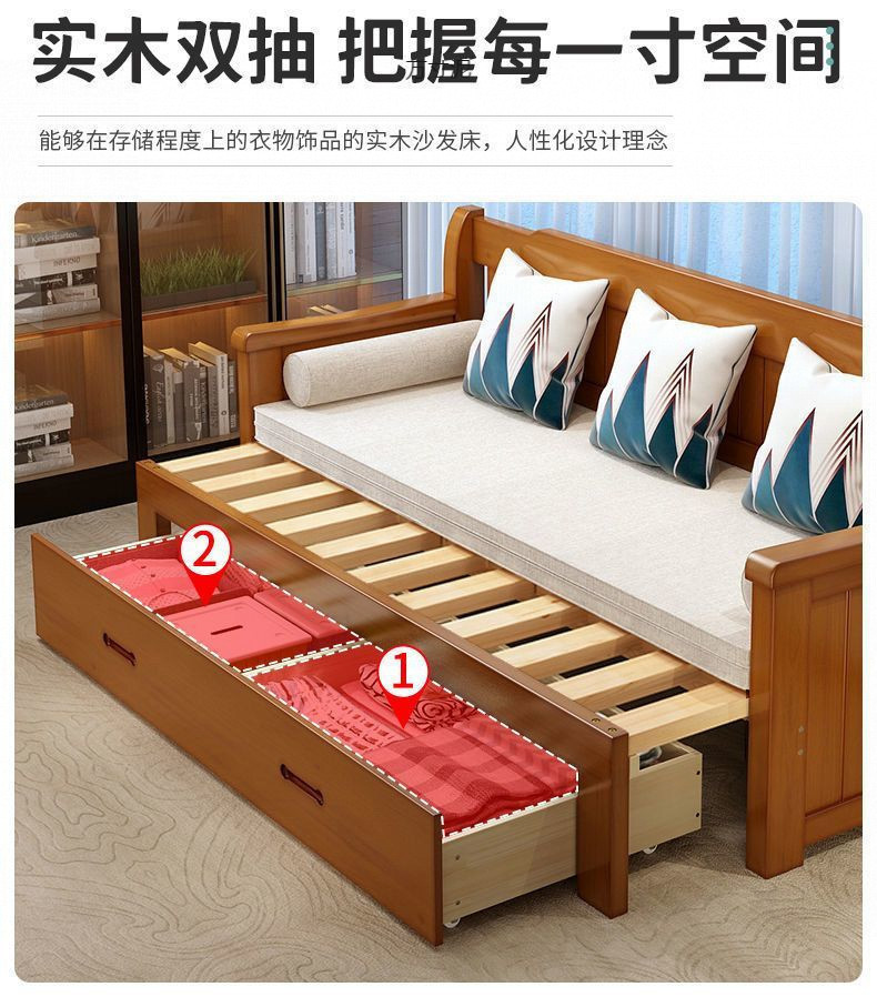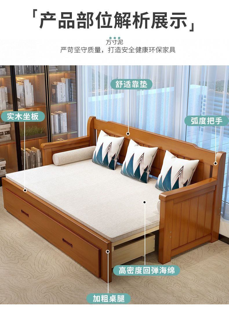 중국식 소파 베드, 원목 소파 베드, 일체형, 좌식 및 수면, 소형 거실, 다기능, 접이식 및 수납 가능, 신규
