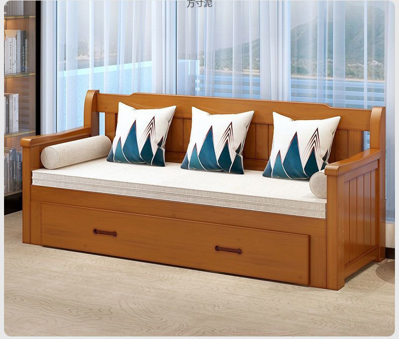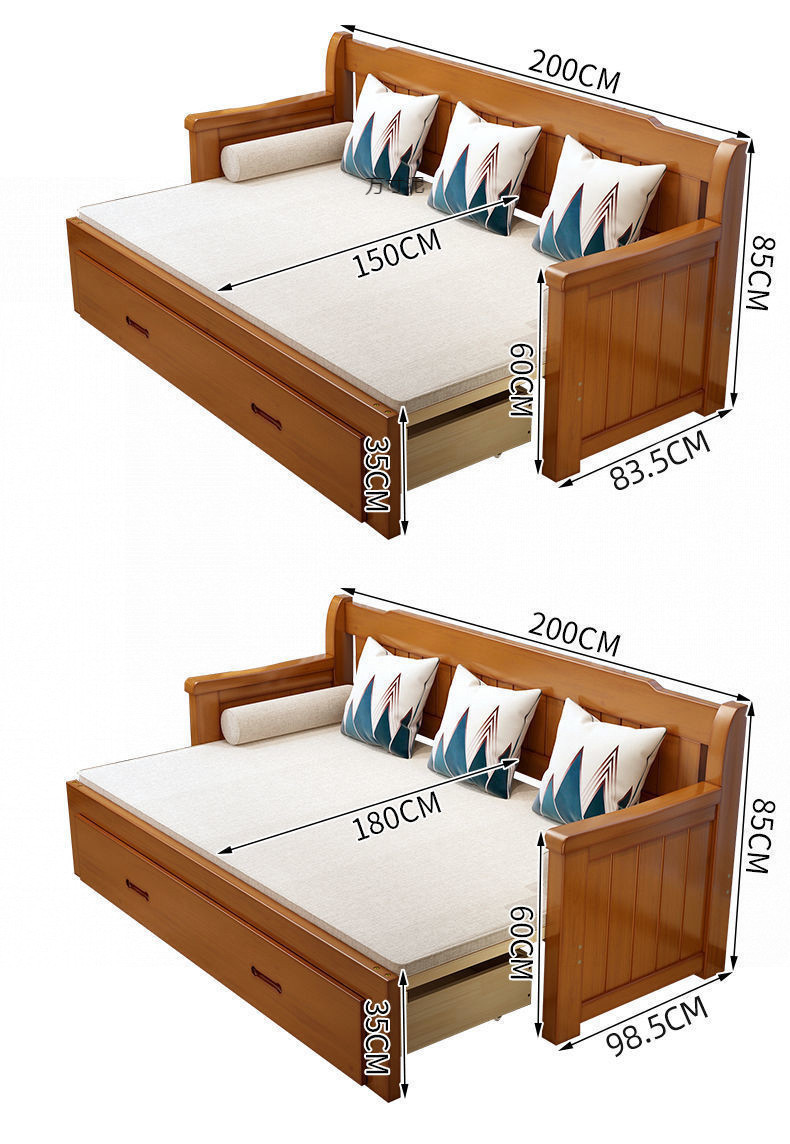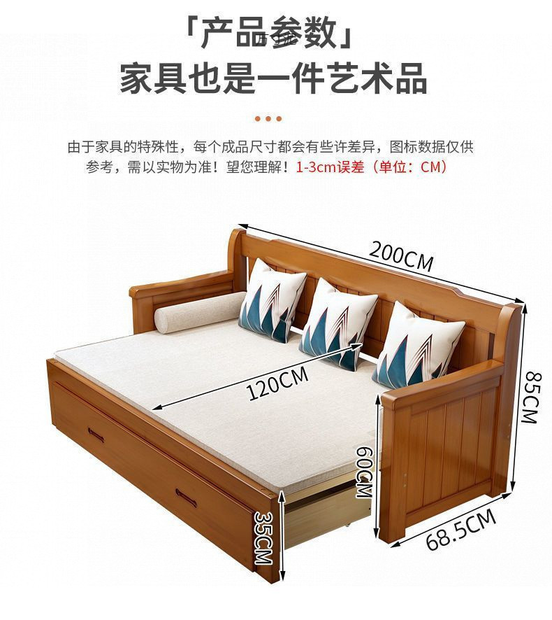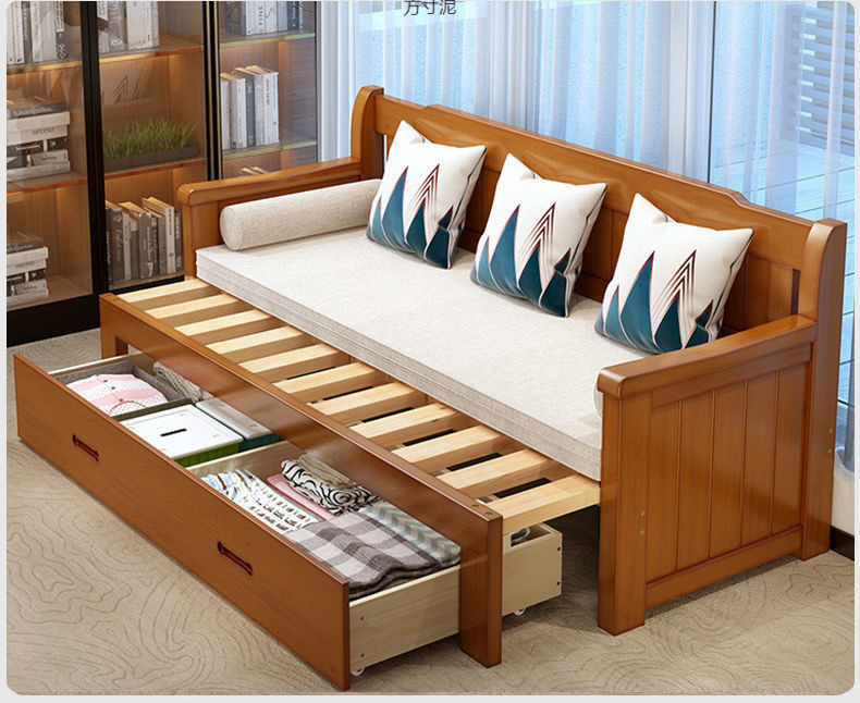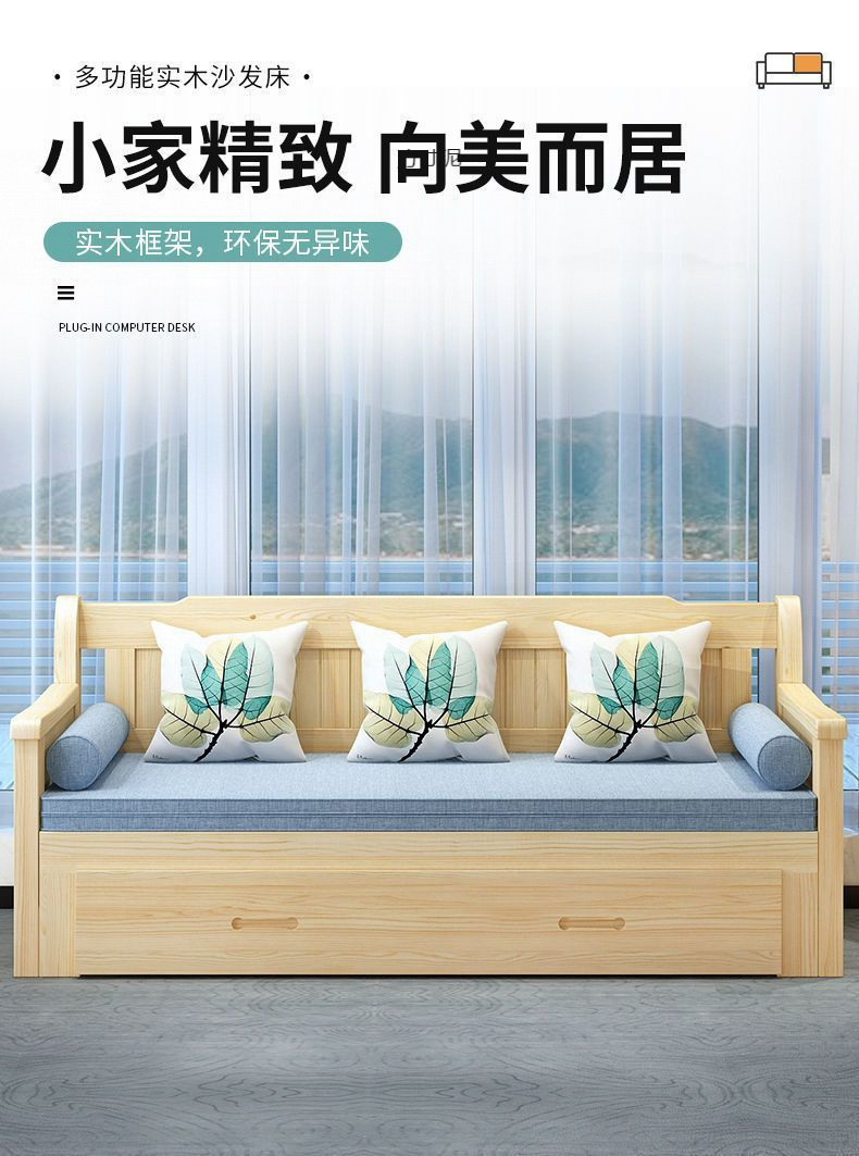 중국식 소파 베드, 원목 소파 베드, 일체형, 좌식 및 수면, 소형 거실, 다기능, 접이식 및 수납 가능, 신규