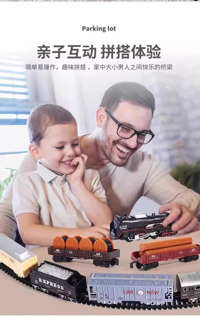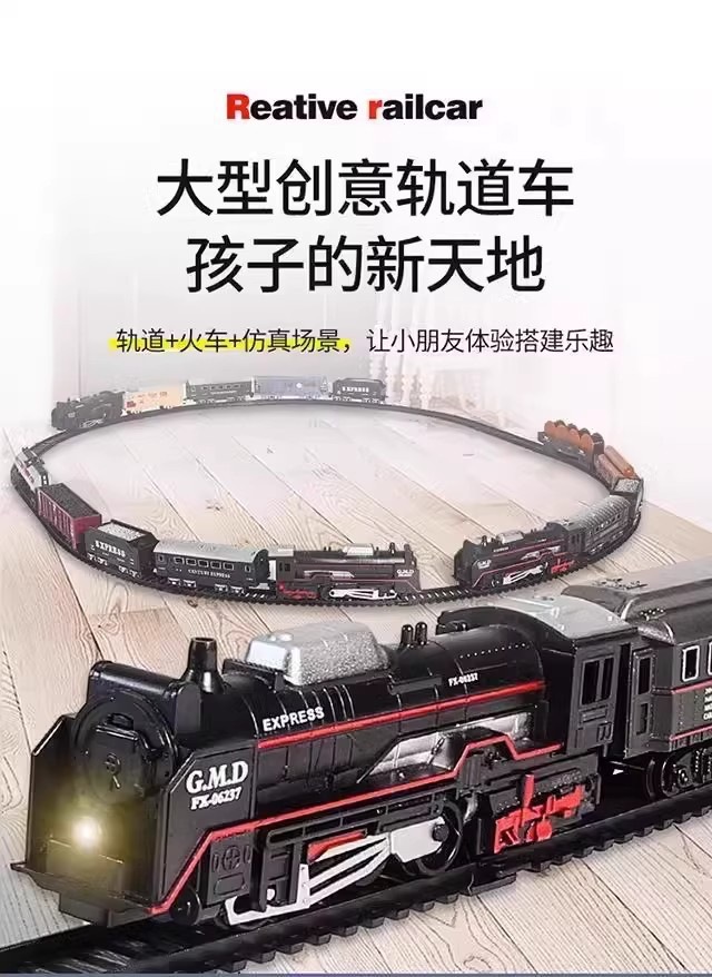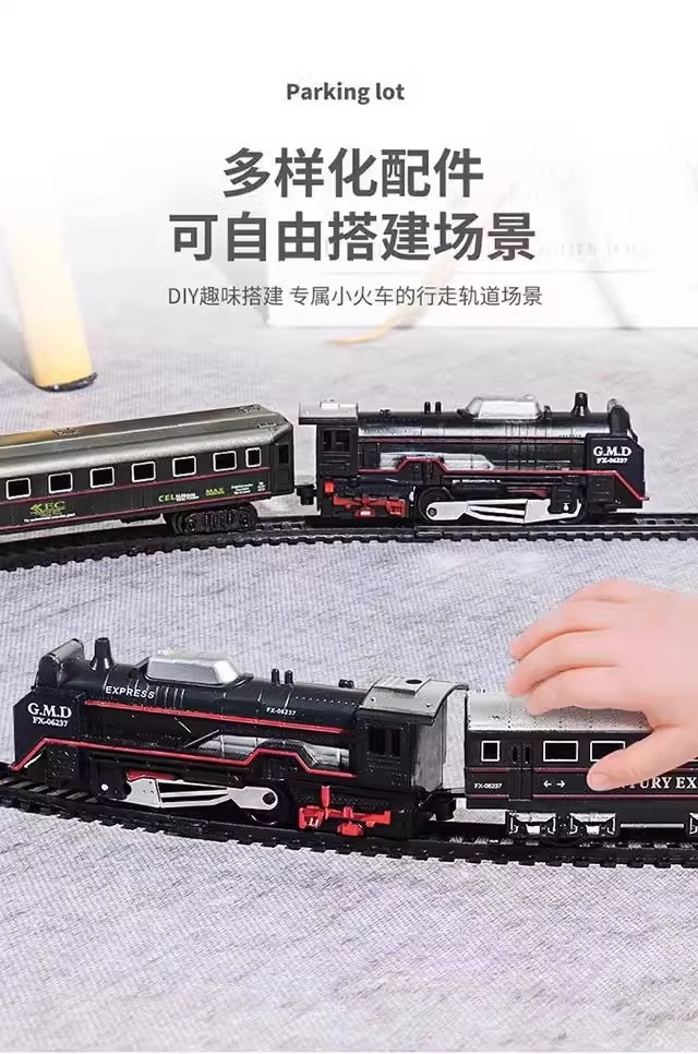 전기 트랙 기차 어린이 교육 조립 조명 시뮬레이션 복고풍 기차 소년 모험 장난감스토어 가기