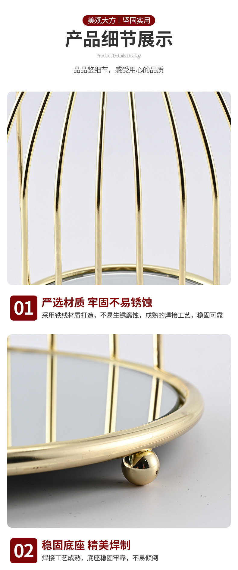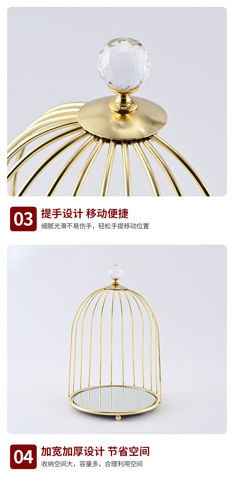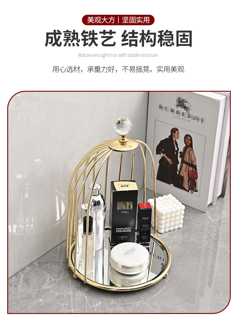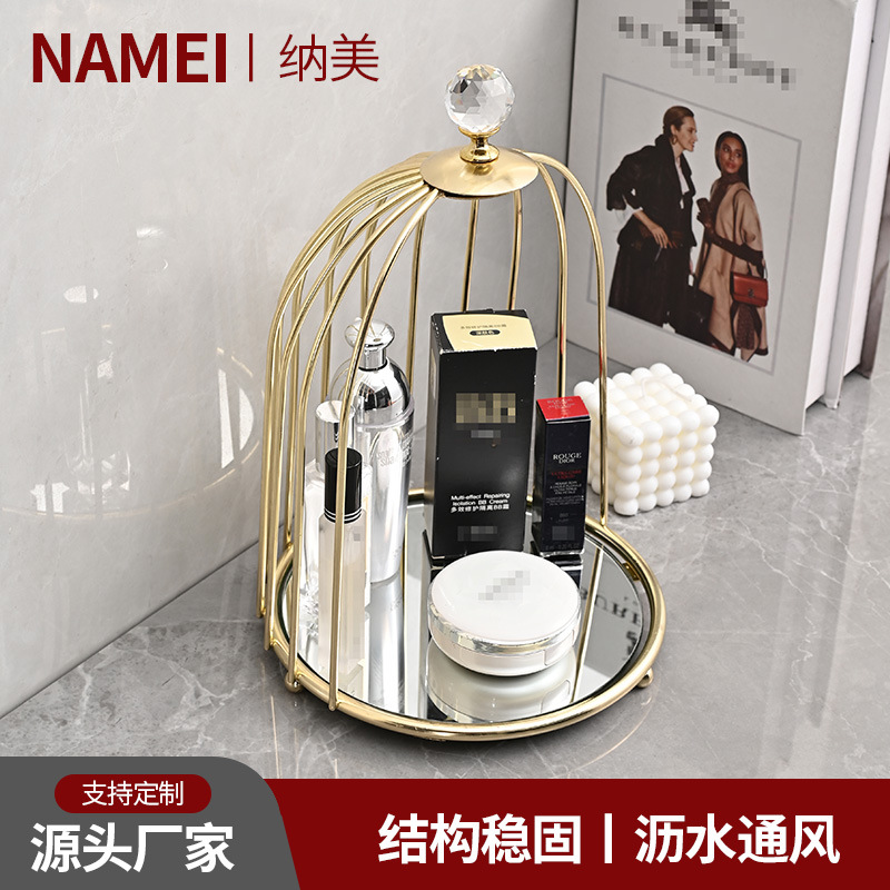 맞춤형 유럽풍 황금색 철제 새장 모양 보석꽂이 침실 욕실 스킨케어 화장품 수납함