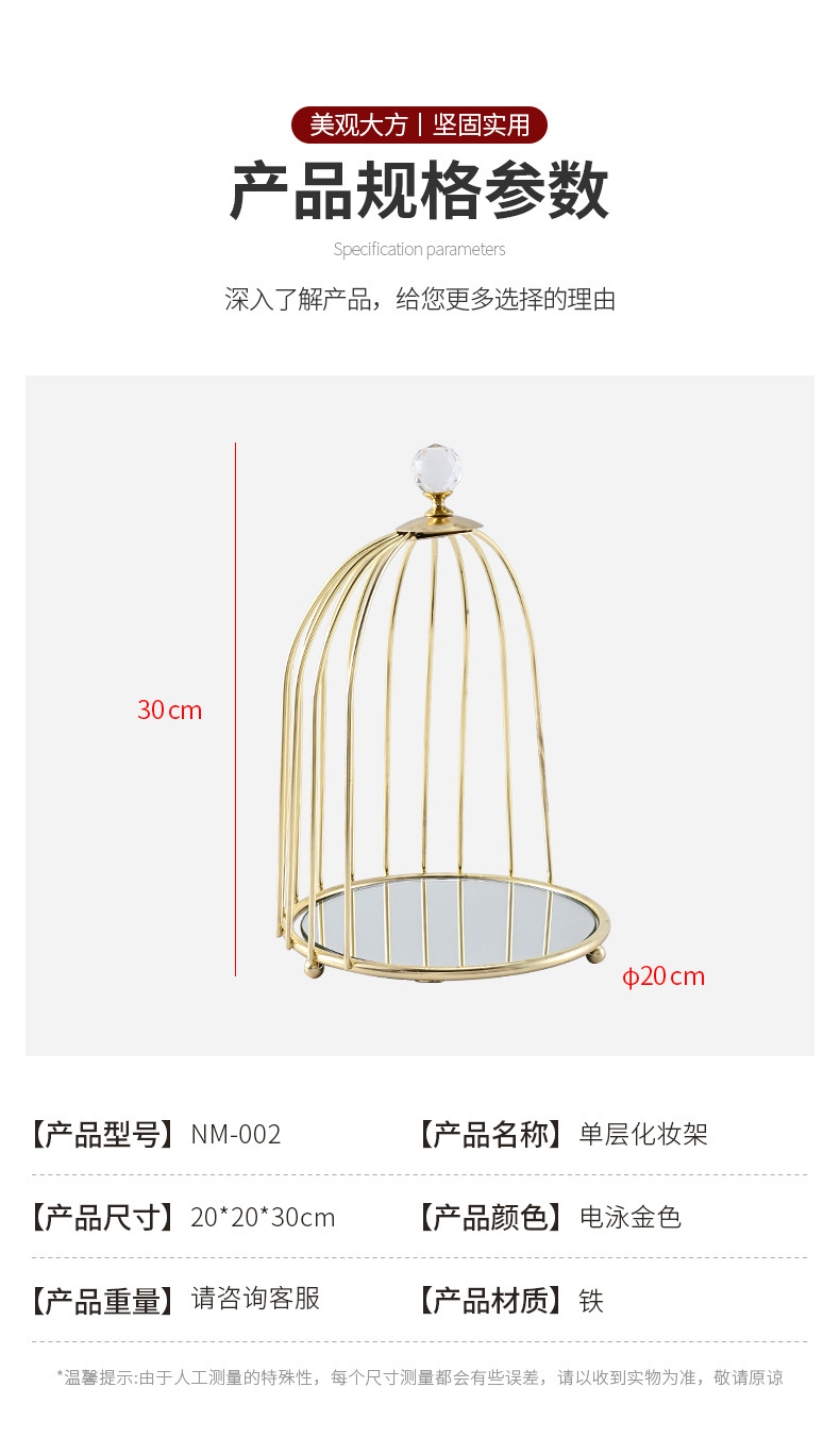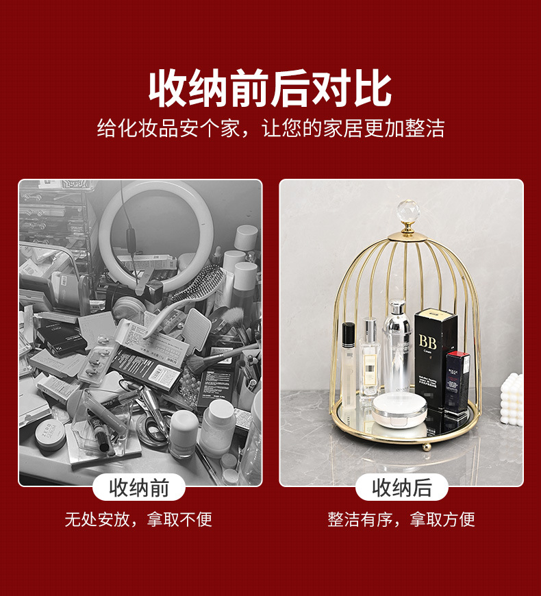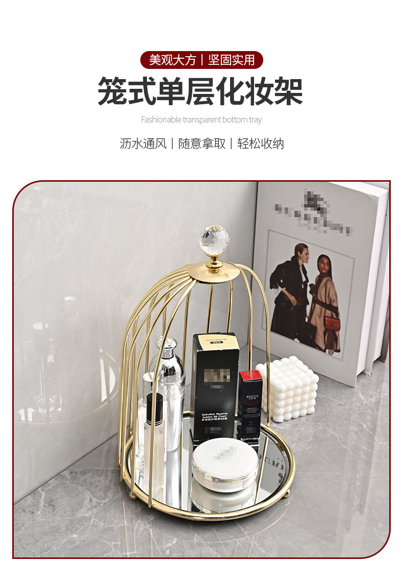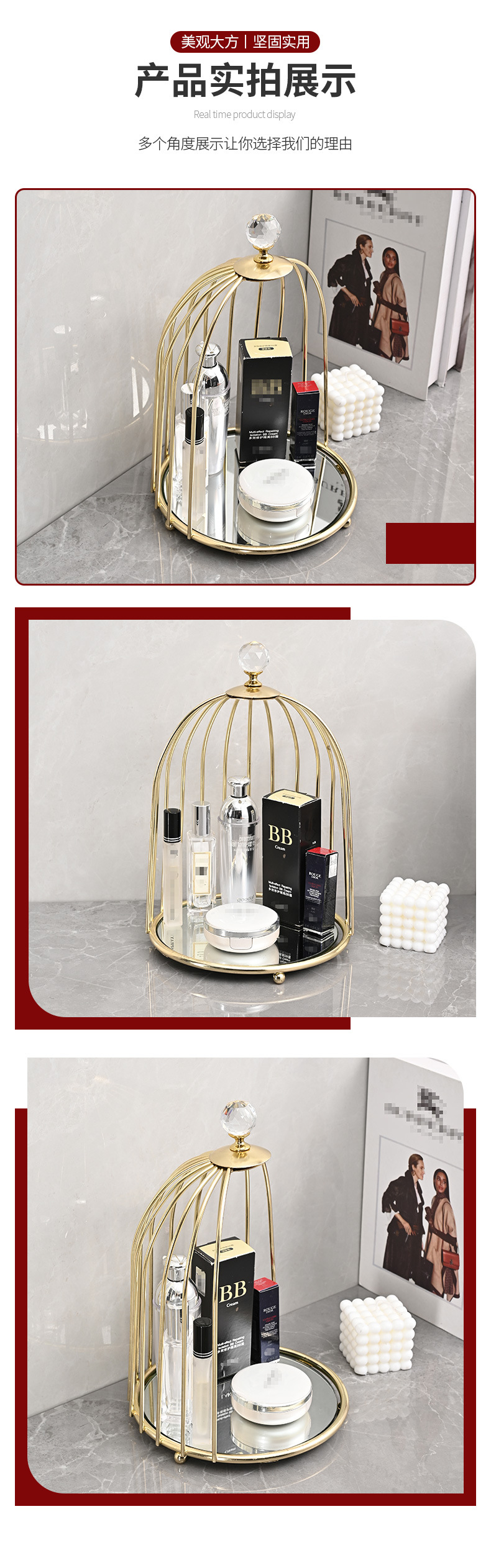 맞춤형 유럽풍 황금색 철제 새장 모양 보석꽂이 침실 욕실 스킨케어 화장품 수납함스토어 가기