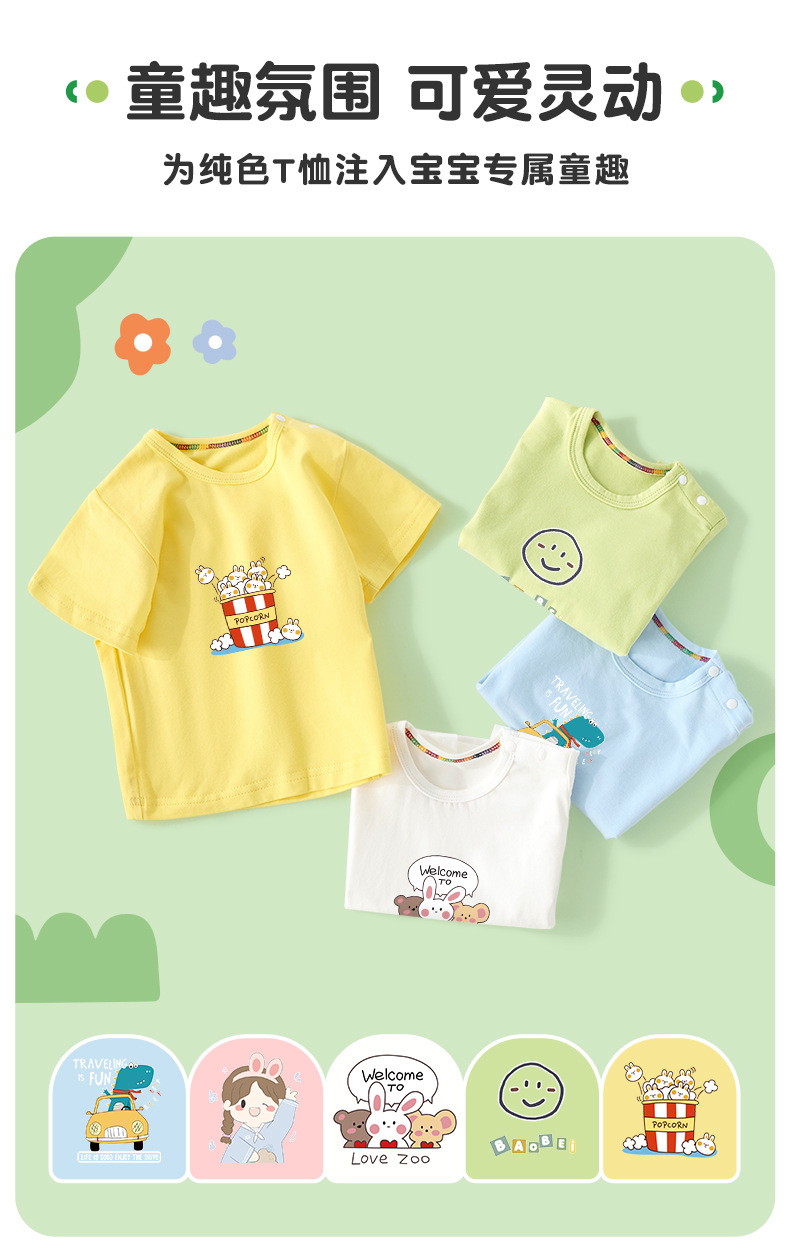 아기 티셔츠 여름 1 세 2 어린이 3 얇은 순면 반팔 원피스 옷 소년과 소녀 여름 베이비 탑스토어 가기