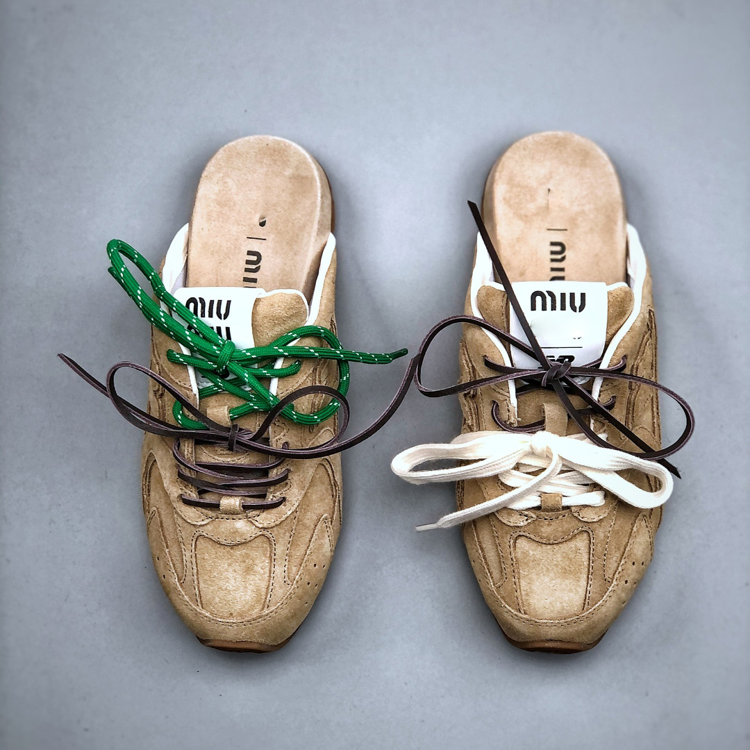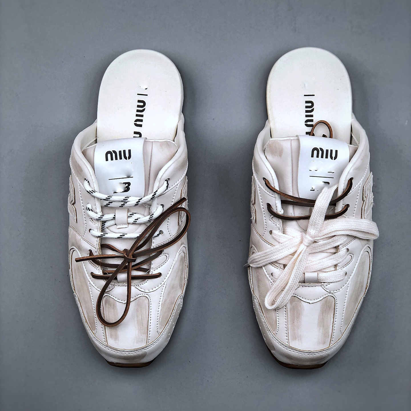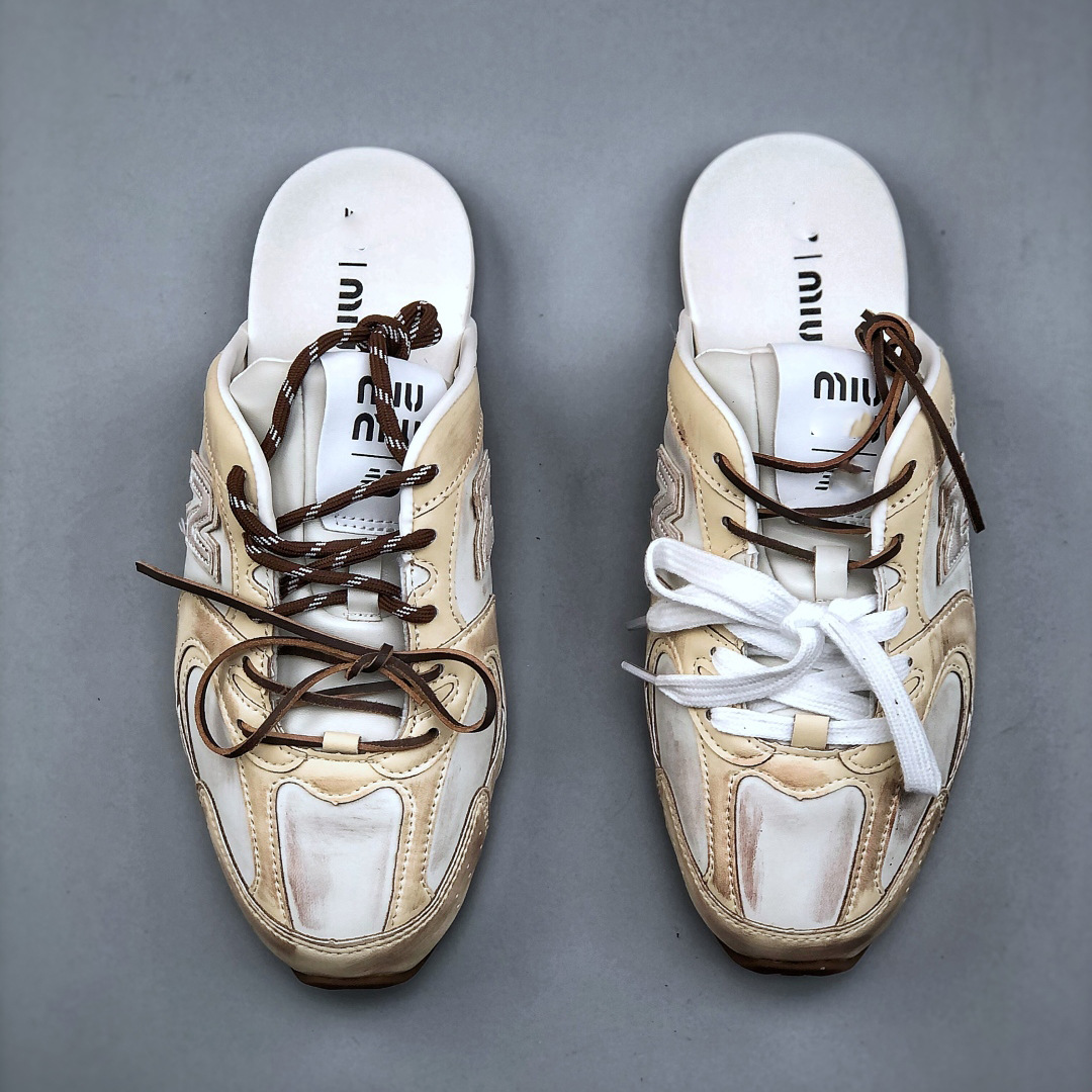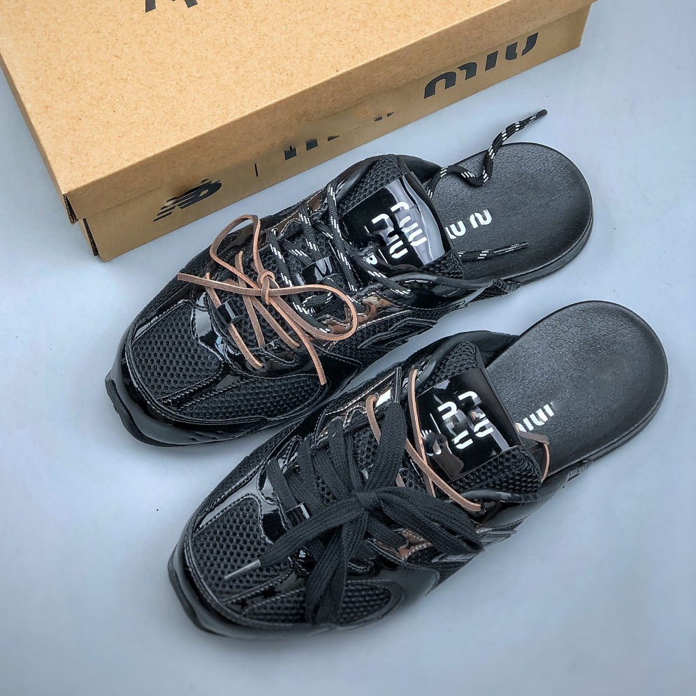 순수 오리지널 NB530xMiu Baotou 슬리퍼 여성 가죽 플랫 힐 슬립 온 신발 복고풍 올드 머니 스타일 Xiaohongshu 트렌디 신발