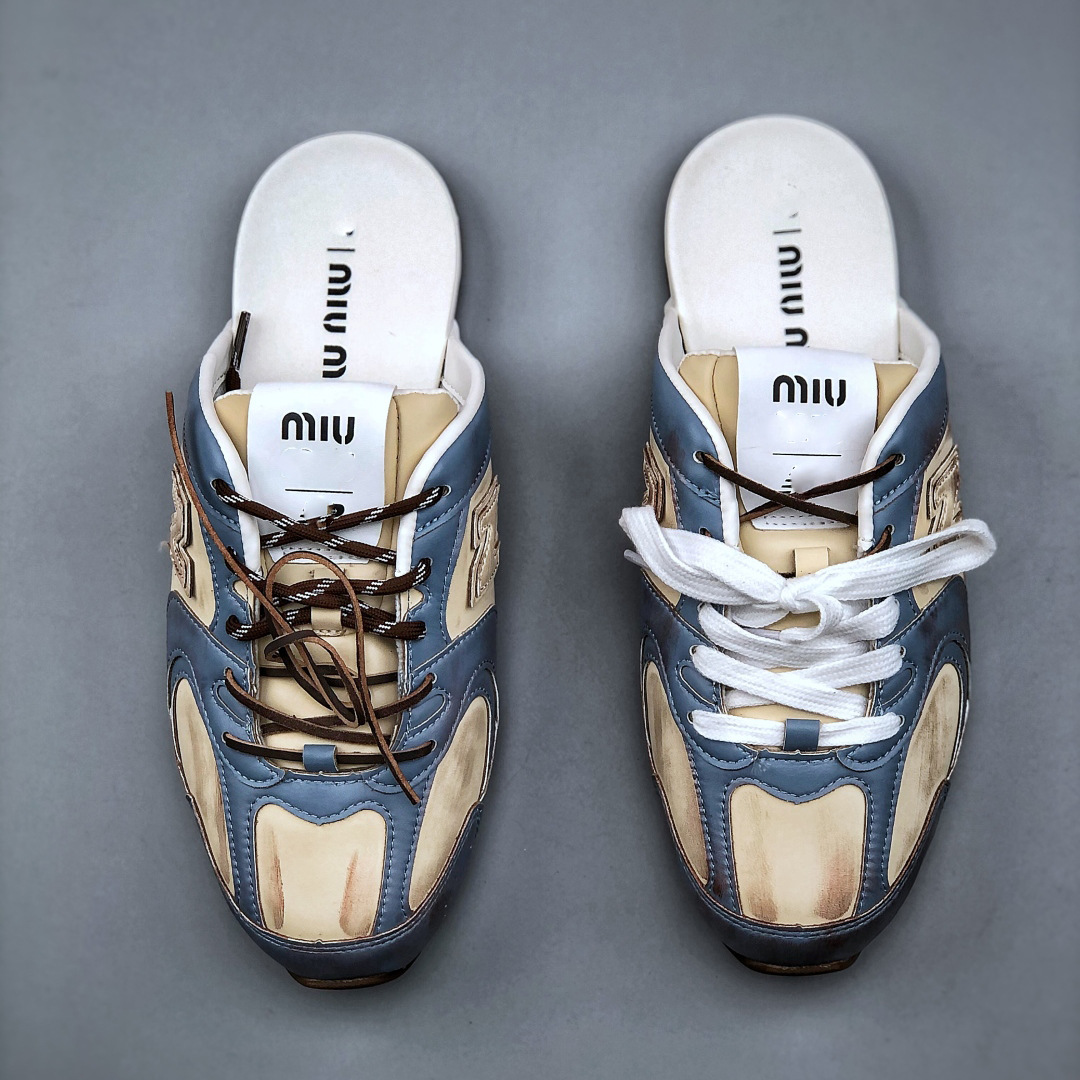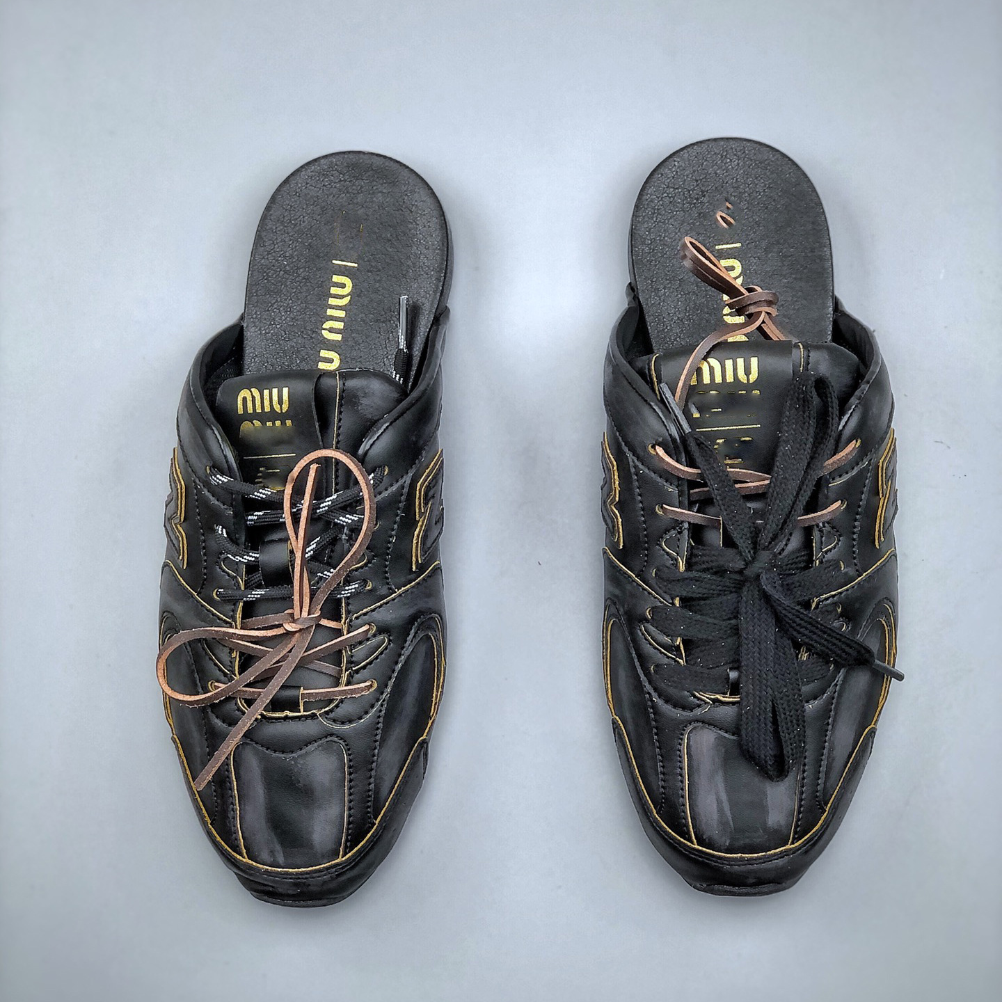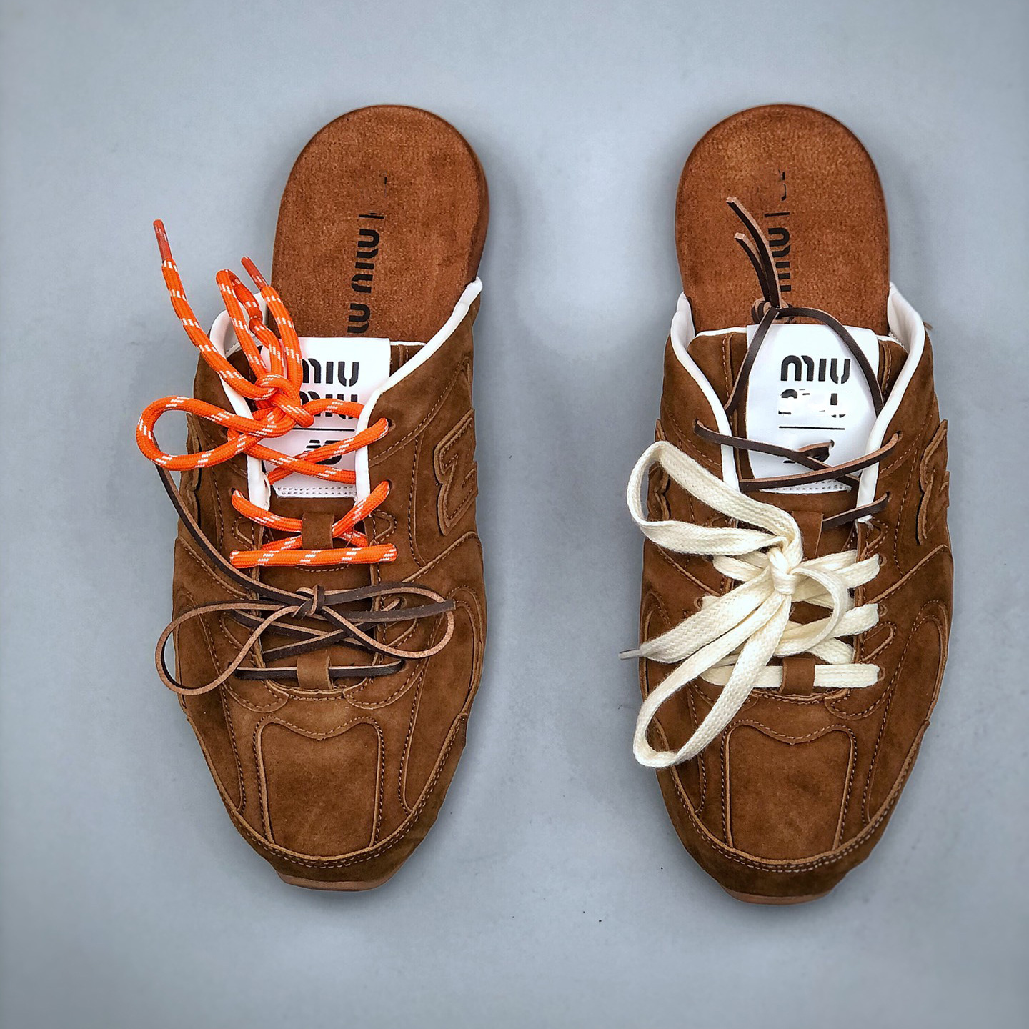 순수 오리지널 NB530xMiu Baotou 슬리퍼 여성 가죽 플랫 힐 슬립 온 신발 복고풍 올드 머니 스타일 Xiaohongshu 트렌디 신발