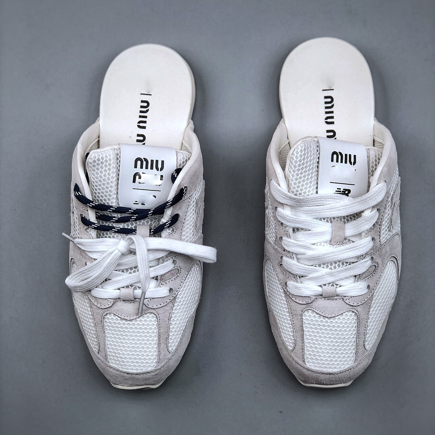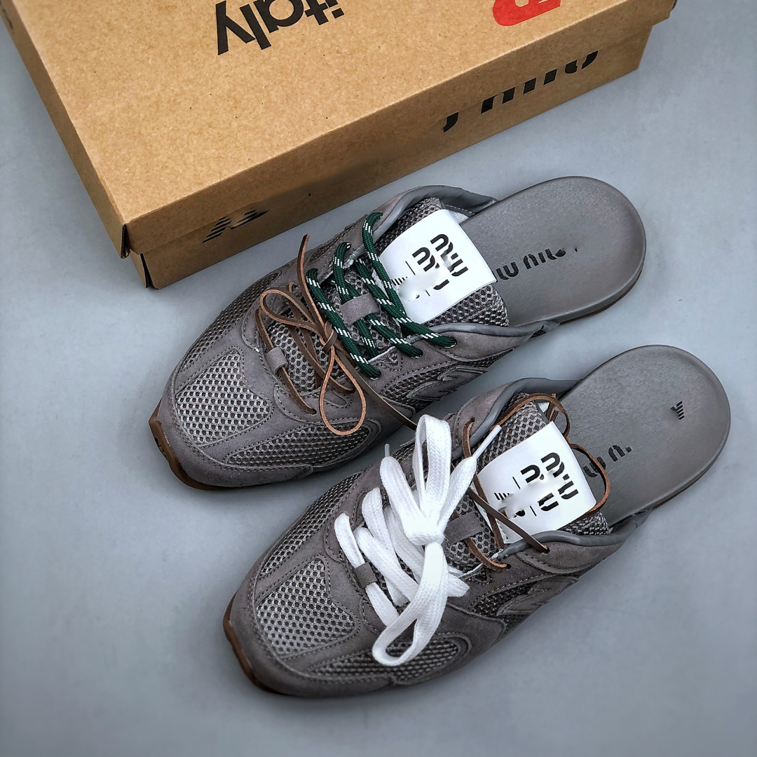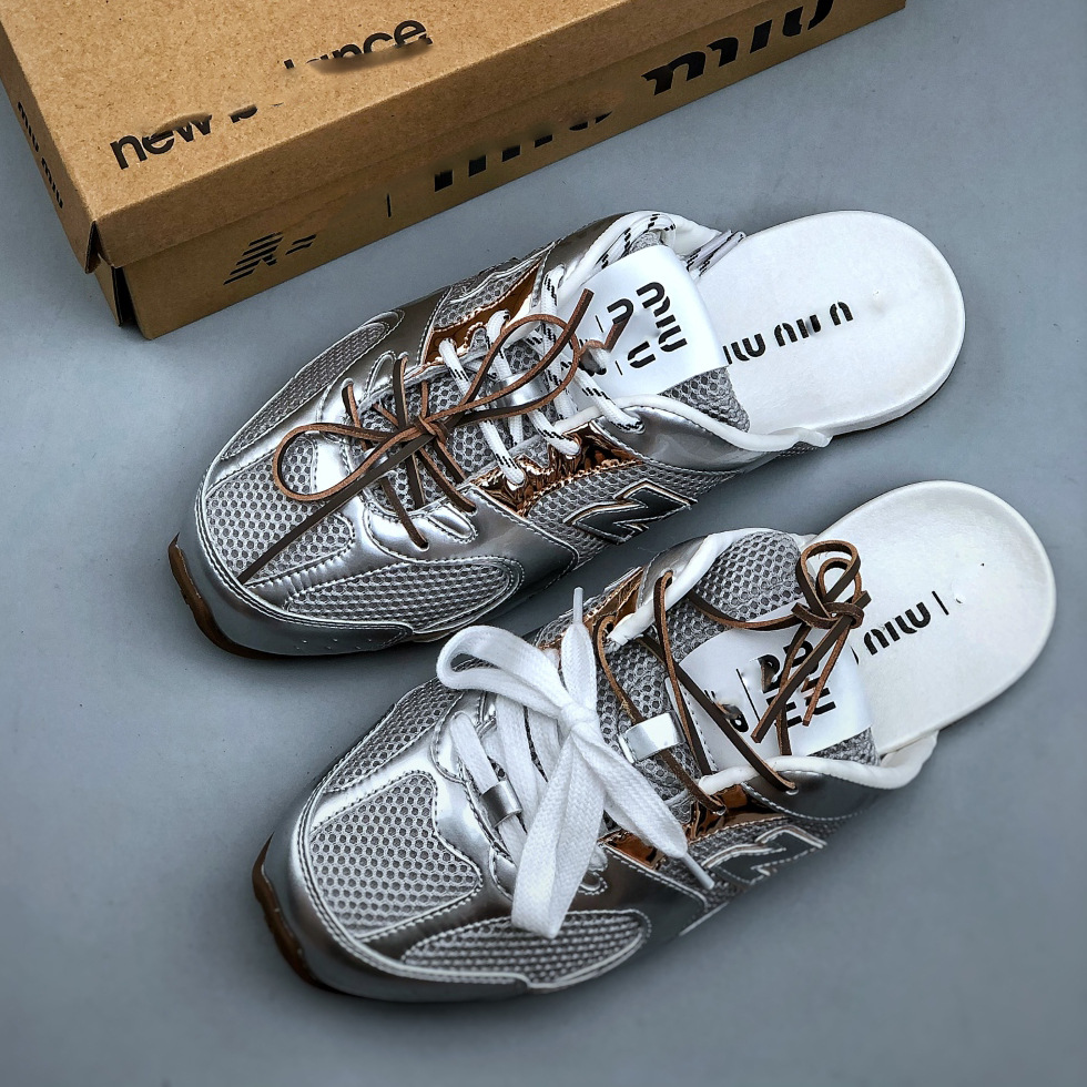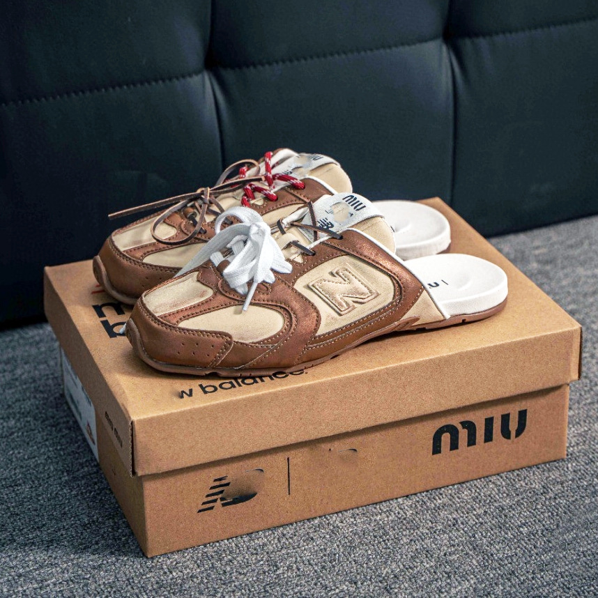 순수 오리지널 NB530xMiu Baotou 슬리퍼 여성 가죽 플랫 힐 슬립 온 신발 복고풍 올드 머니 스타일 Xiaohongshu 트렌디 신발스토어 가기