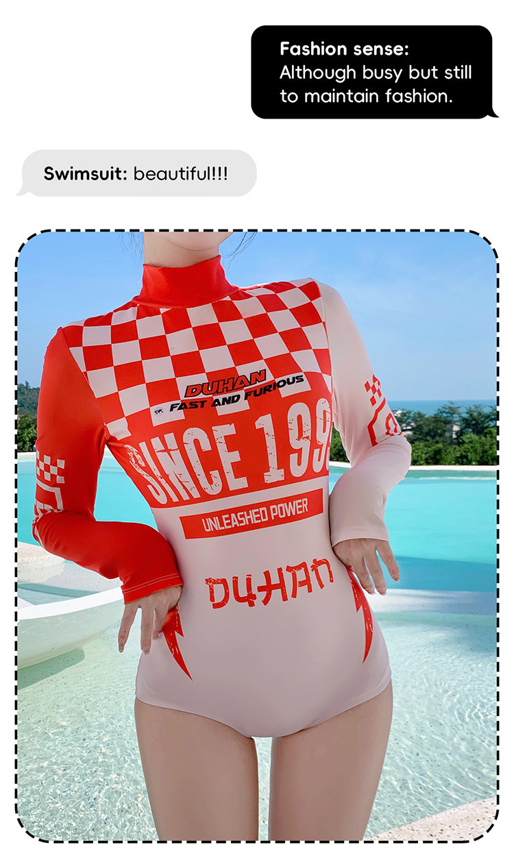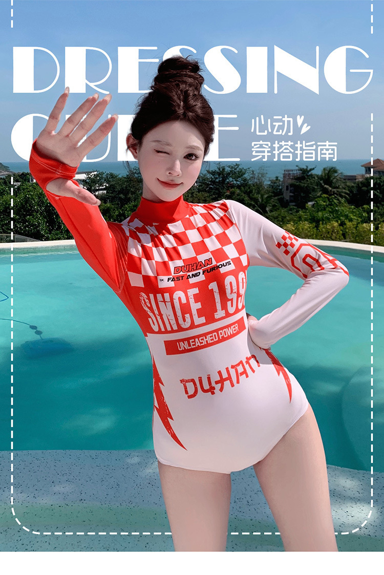 2025 신형 수영복 한국식 비키니 보수적인 배 커버 슬리밍 원피스 레드 긴팔 서핑 잠수복스토어 가기