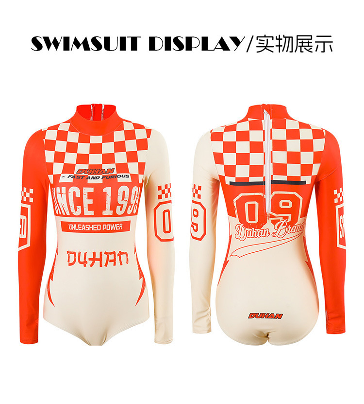 2025新款泳衣韩系比基尼保守遮肚显瘦连体红色长袖防嗮冲浪潜水服