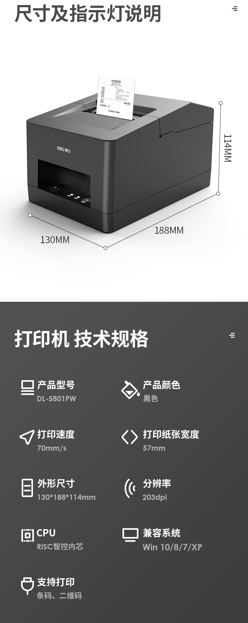 델리 DL-5801PW 감열식 영수증 프린터(블랙) 익스프레스 전자 바코드 라벨 블루투스 오피스