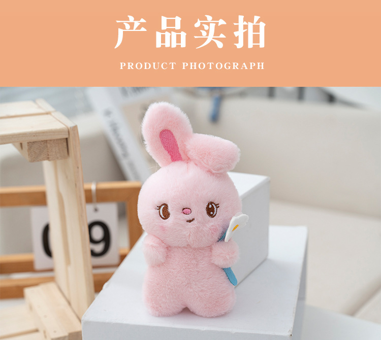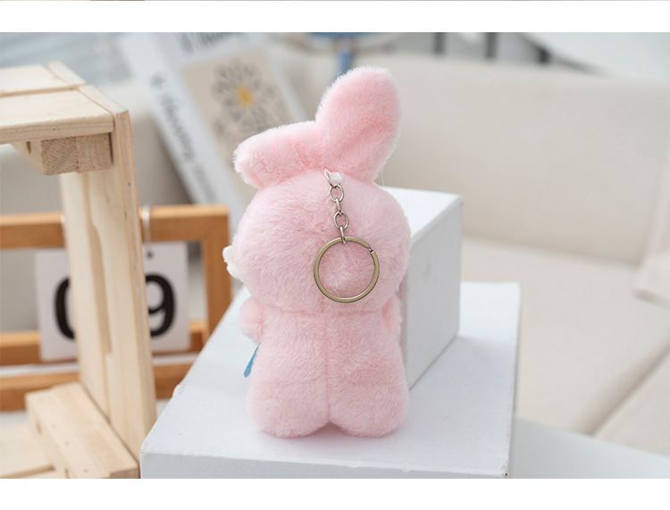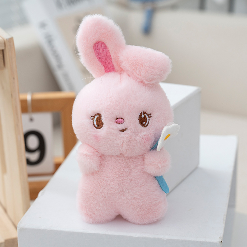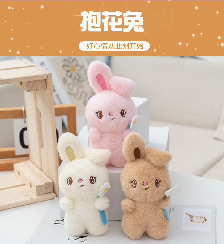 인터넷 연예인 같은 스타일 꽃을 안고 있는 토끼 귀여운 펜던트 봉제 인형 작은 펜던트 만화 토끼 열쇠 고리