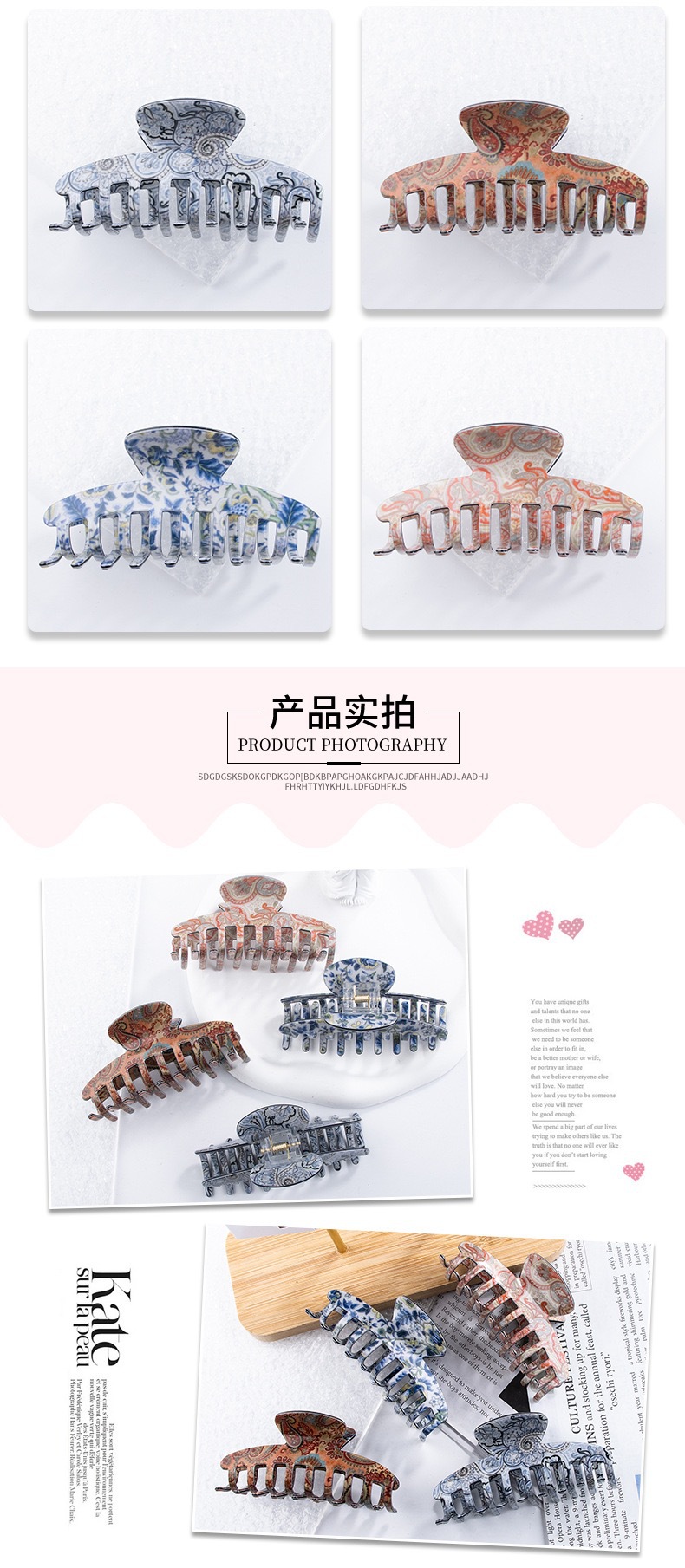 Kokule Yiwu 액세서리 11월 신제품 PVC 9cm 국경 간 핫 세일 목가적 스타일 클립 맞춤형 헤어 클립스토어 가기