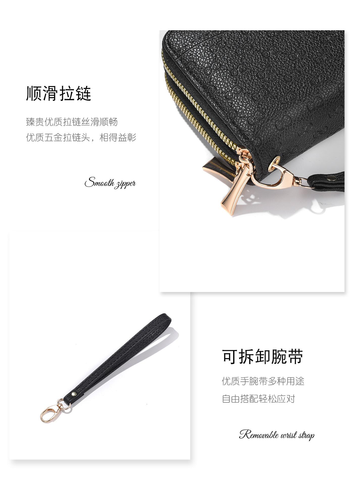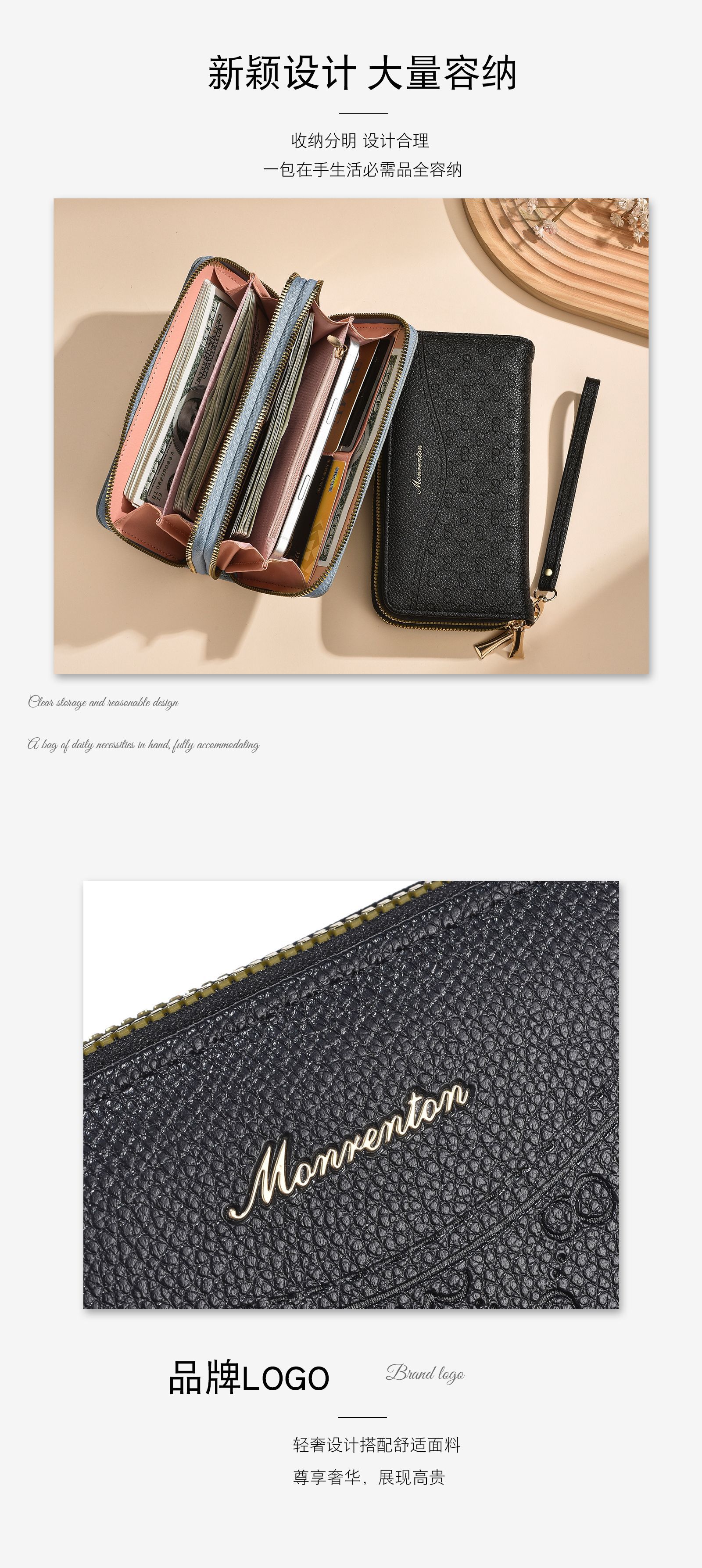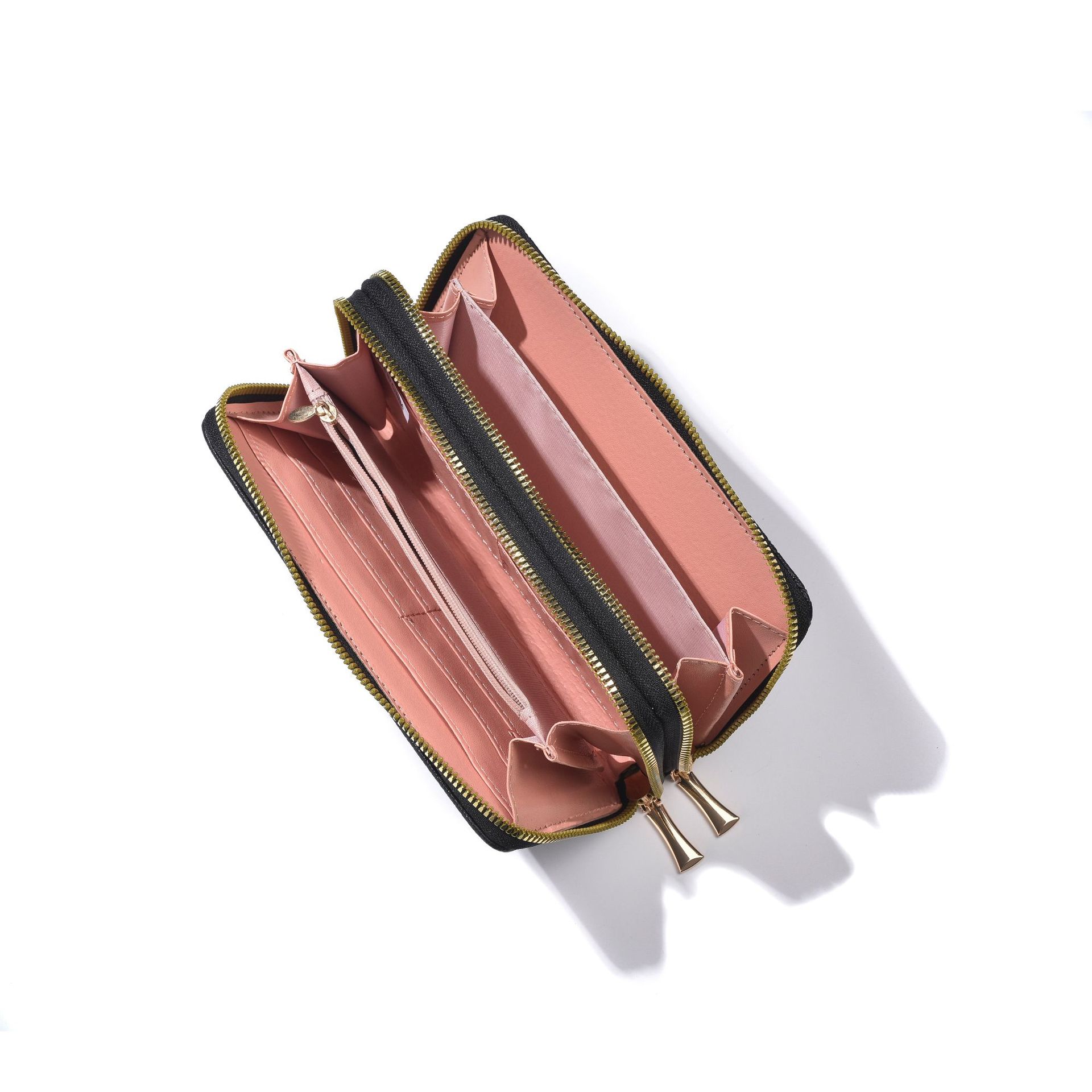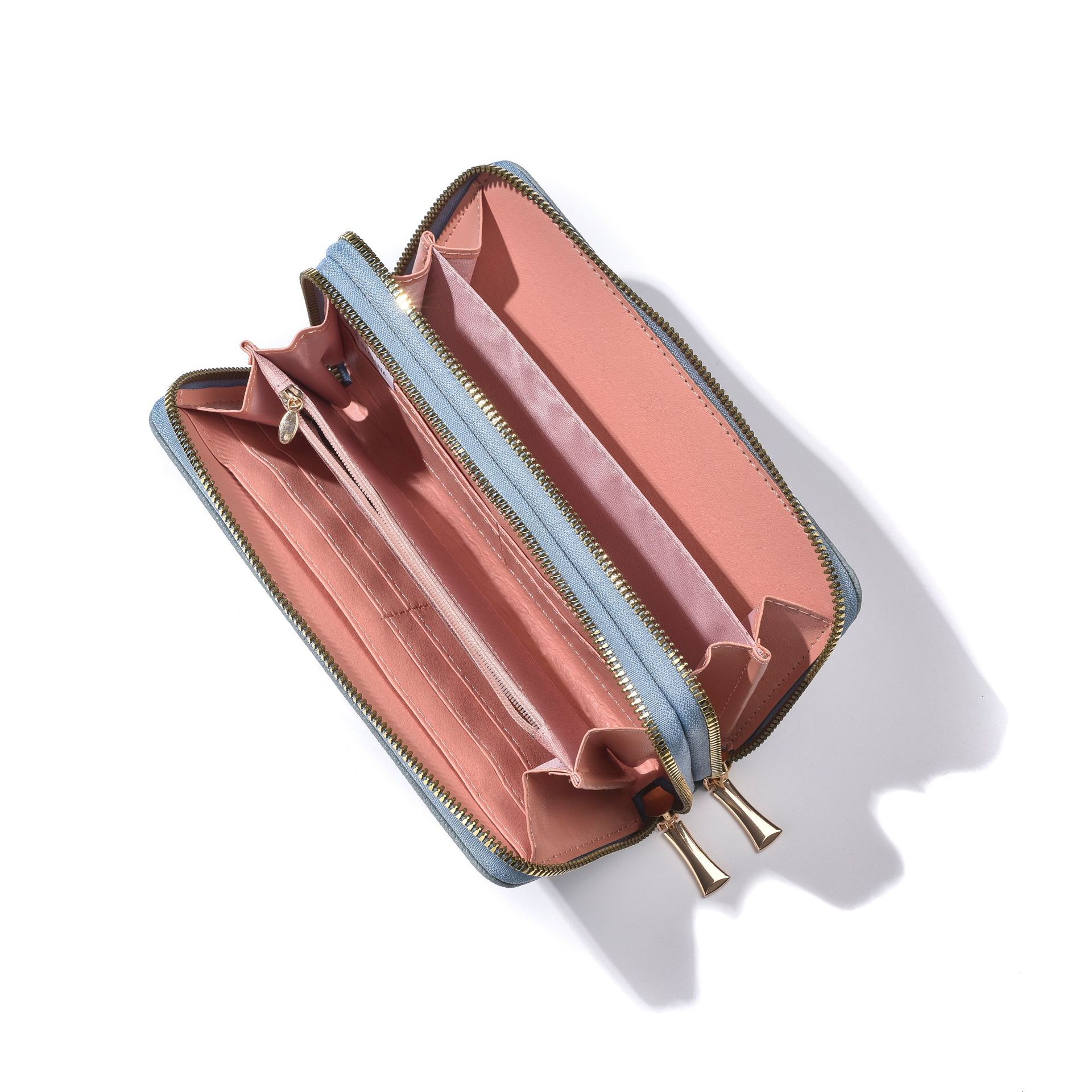 새로운 지갑 여성의 긴 유럽과 미국의 레트로 더블 지퍼 클러치 백 대용량 더블 레이어 휴대 전화 가방 실용적인 손목 스트랩