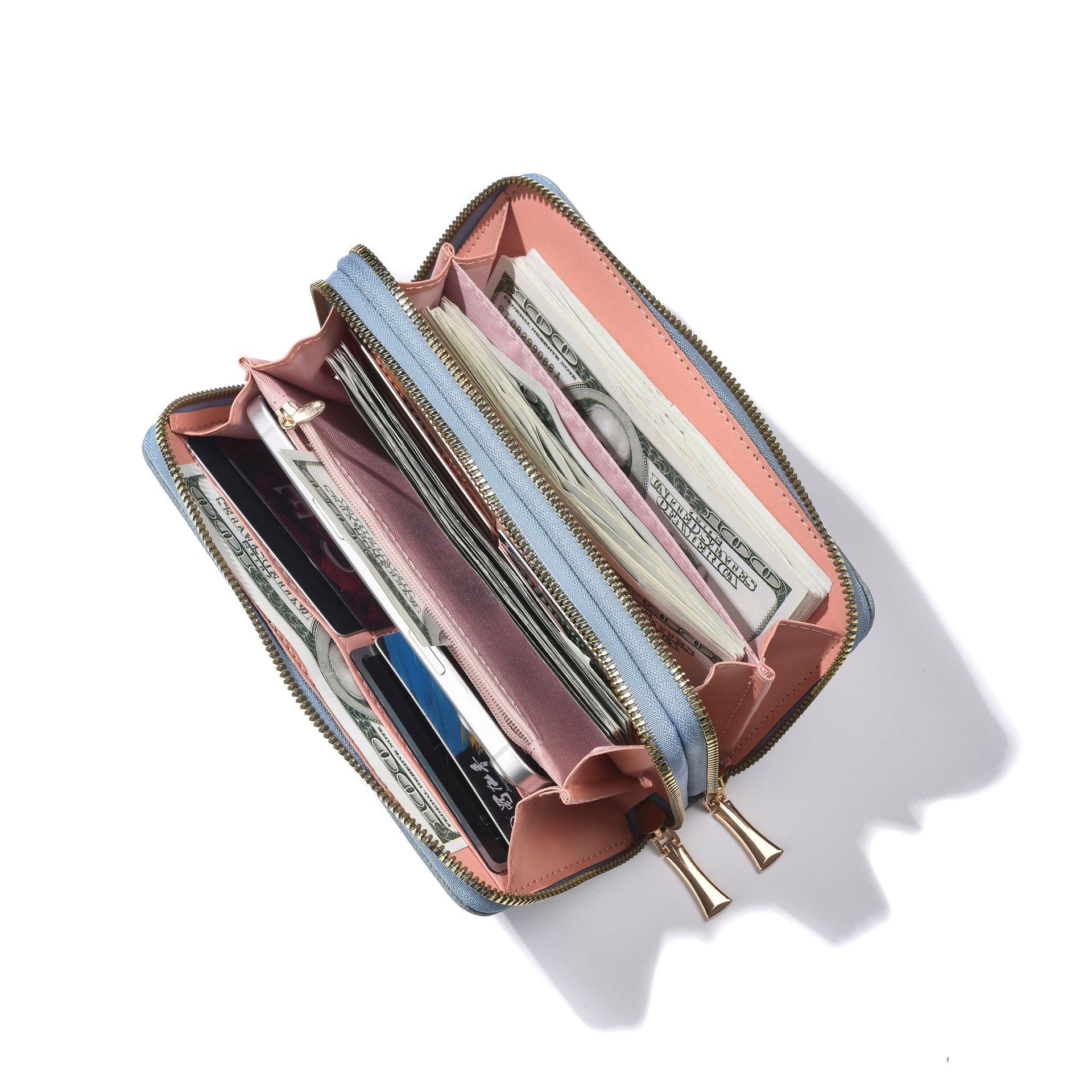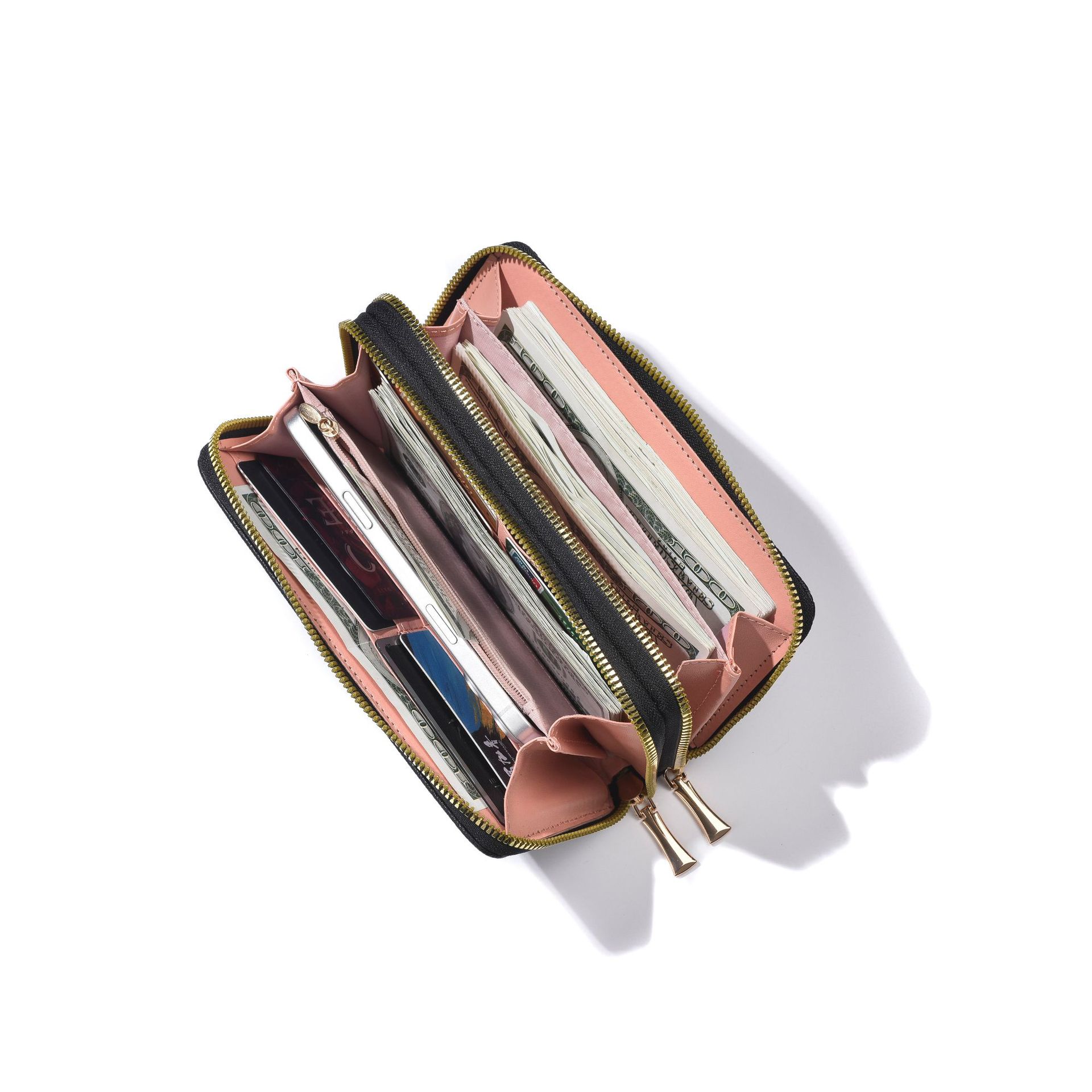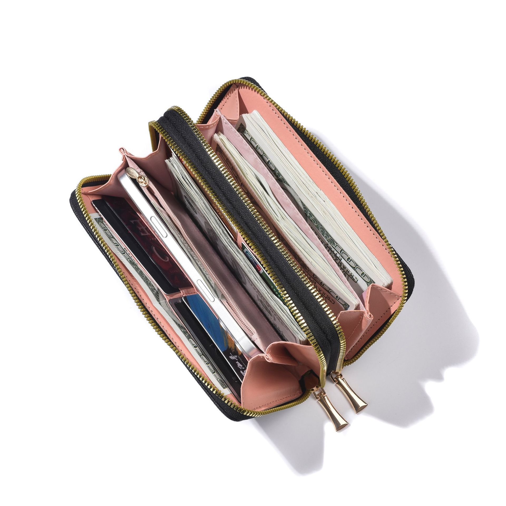 새로운 지갑 여성의 긴 유럽과 미국의 레트로 더블 지퍼 클러치 백 대용량 더블 레이어 휴대 전화 가방 실용적인 손목 스트랩스토어 가기