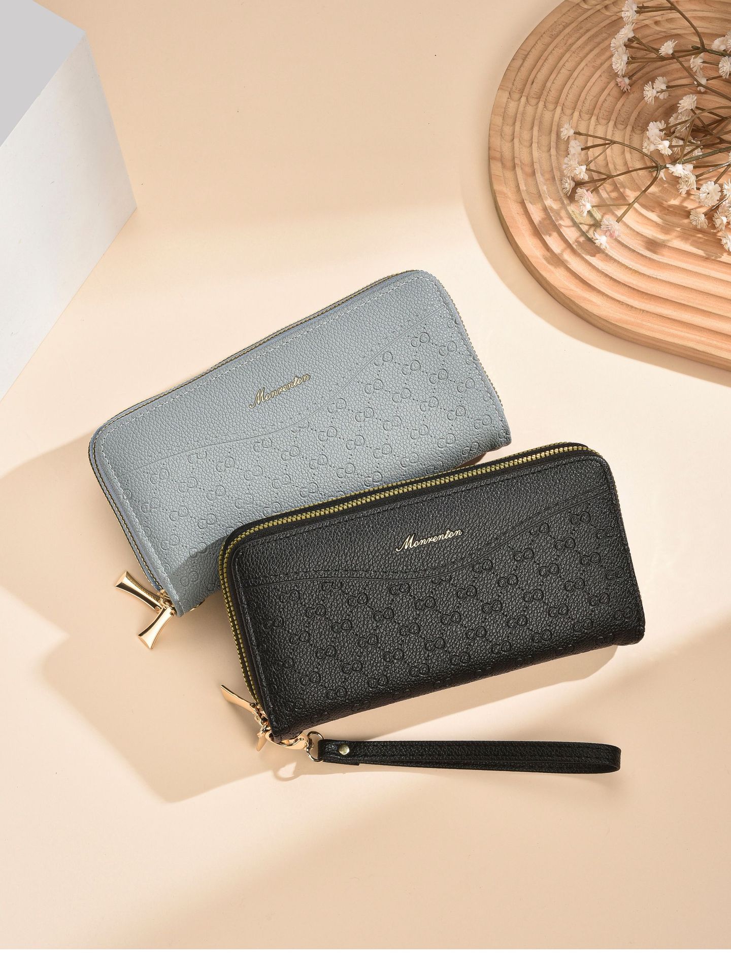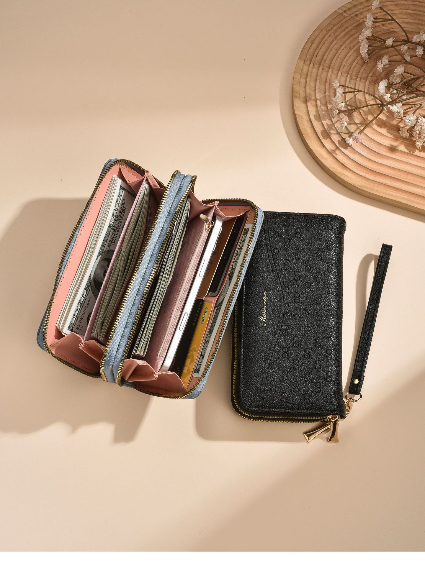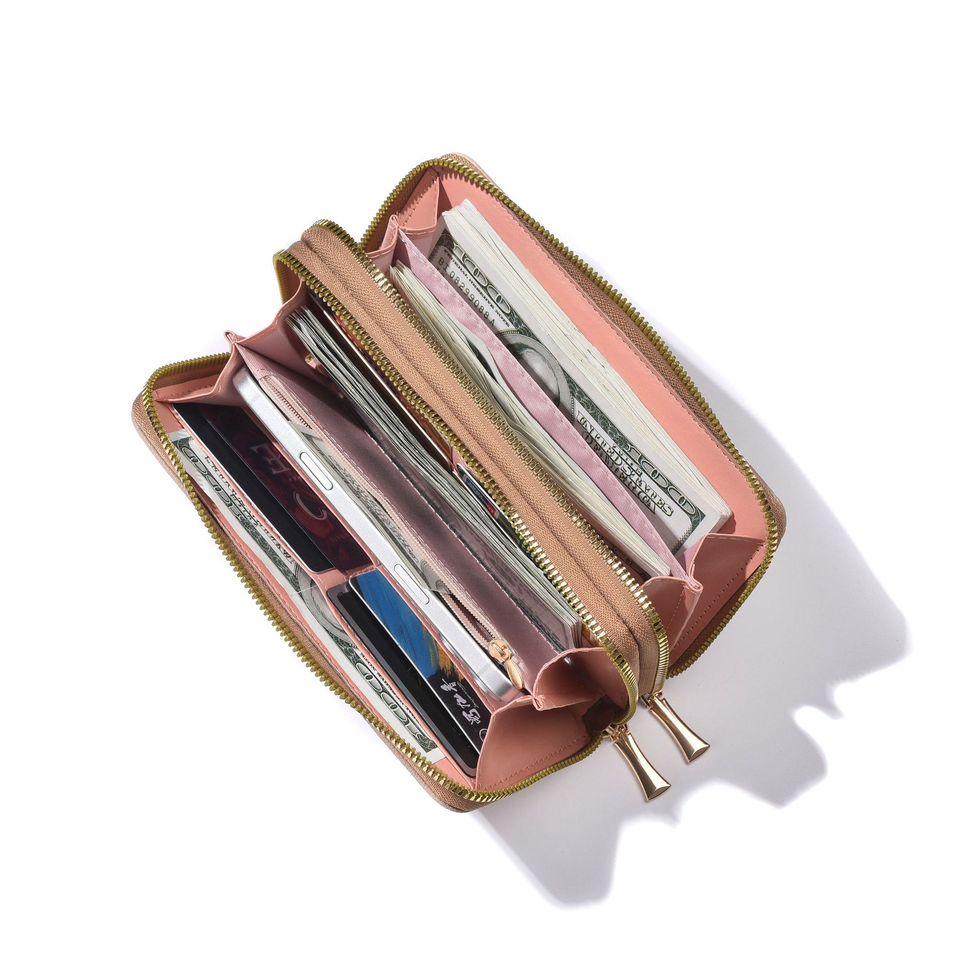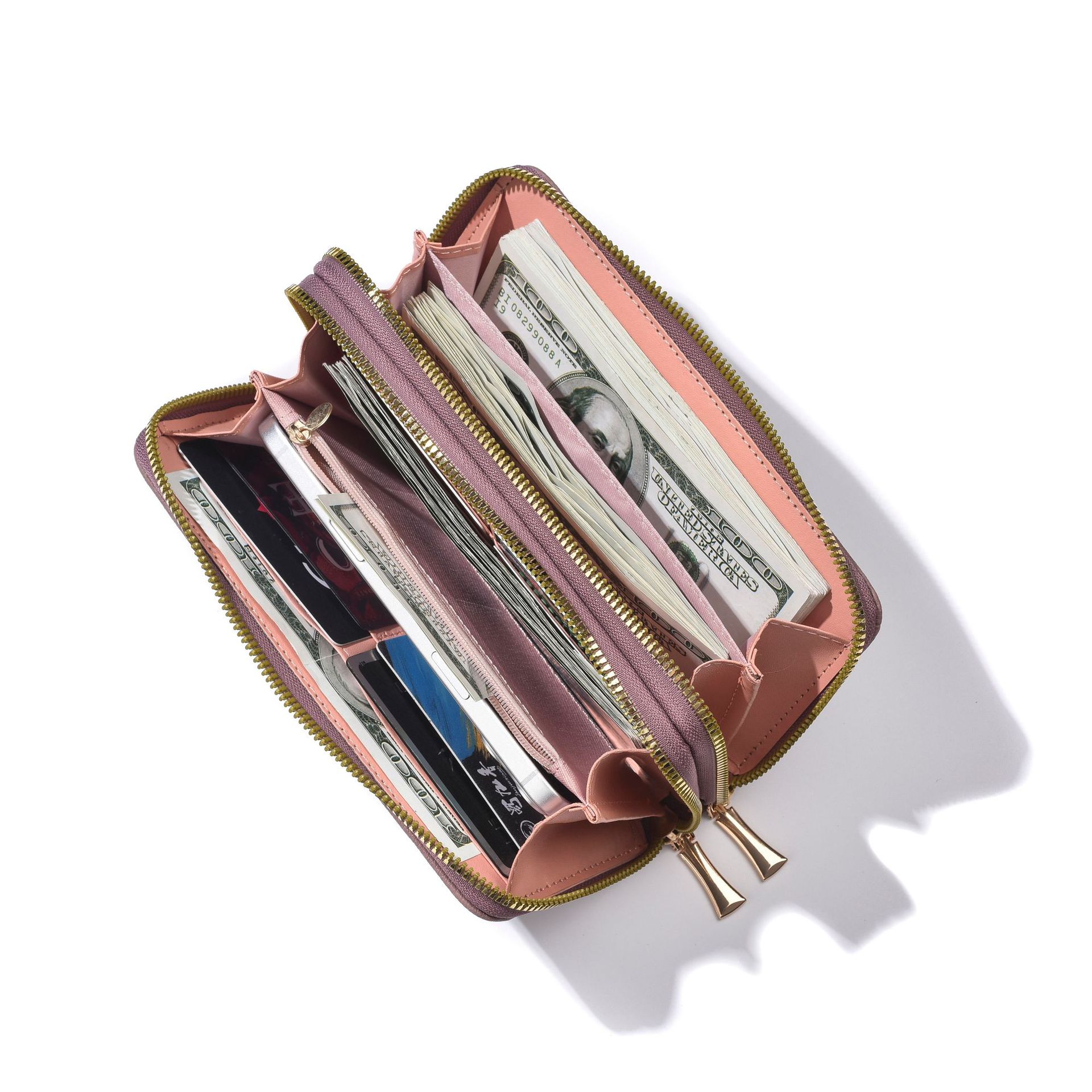 새로운 지갑 여성의 긴 유럽과 미국의 레트로 더블 지퍼 클러치 백 대용량 더블 레이어 휴대 전화 가방 실용적인 손목 스트랩스토어 가기