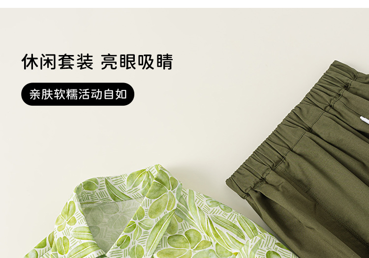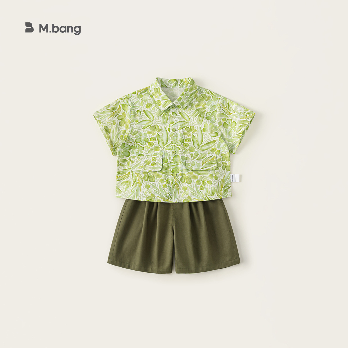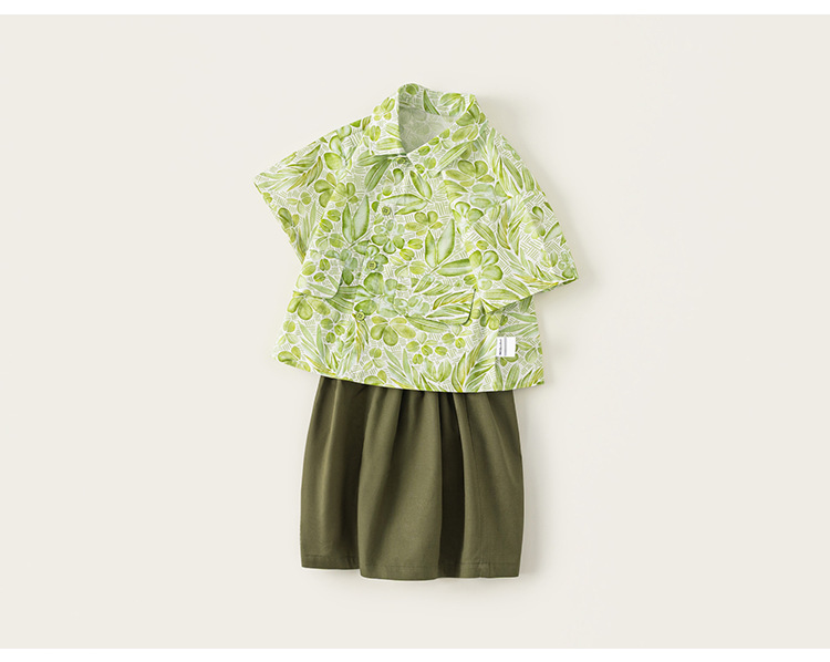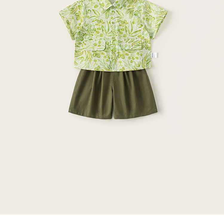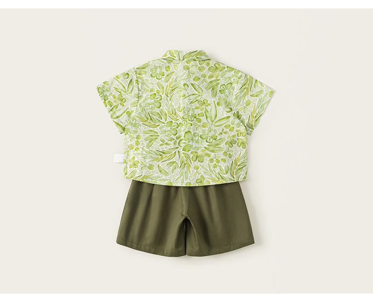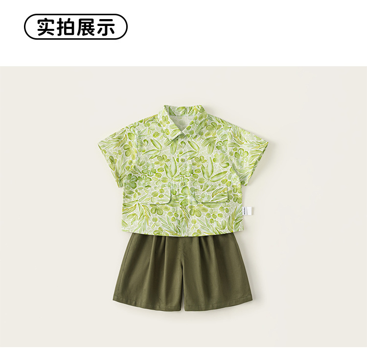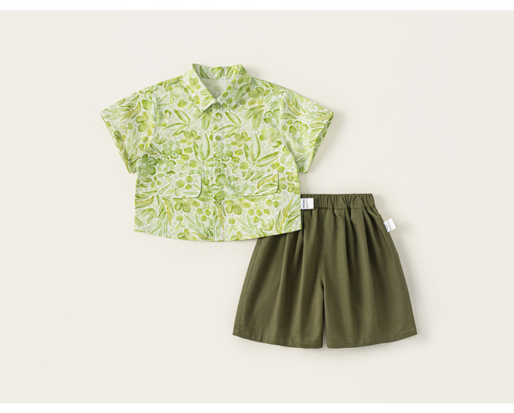 Youbao 아동 의류 여름 어린이 캐주얼 정장 소년 옷깃 얇은 반팔 프린트 셔츠 솔리드 컬러 캐주얼 반바지