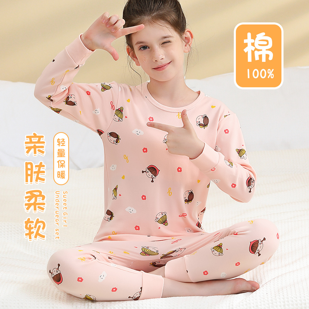 아동용 가을옷 세트 남아 여아 순면 보온 속옷 A급 순면 잠옷 7A