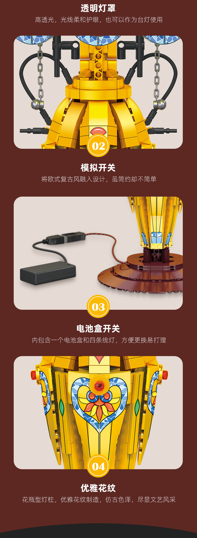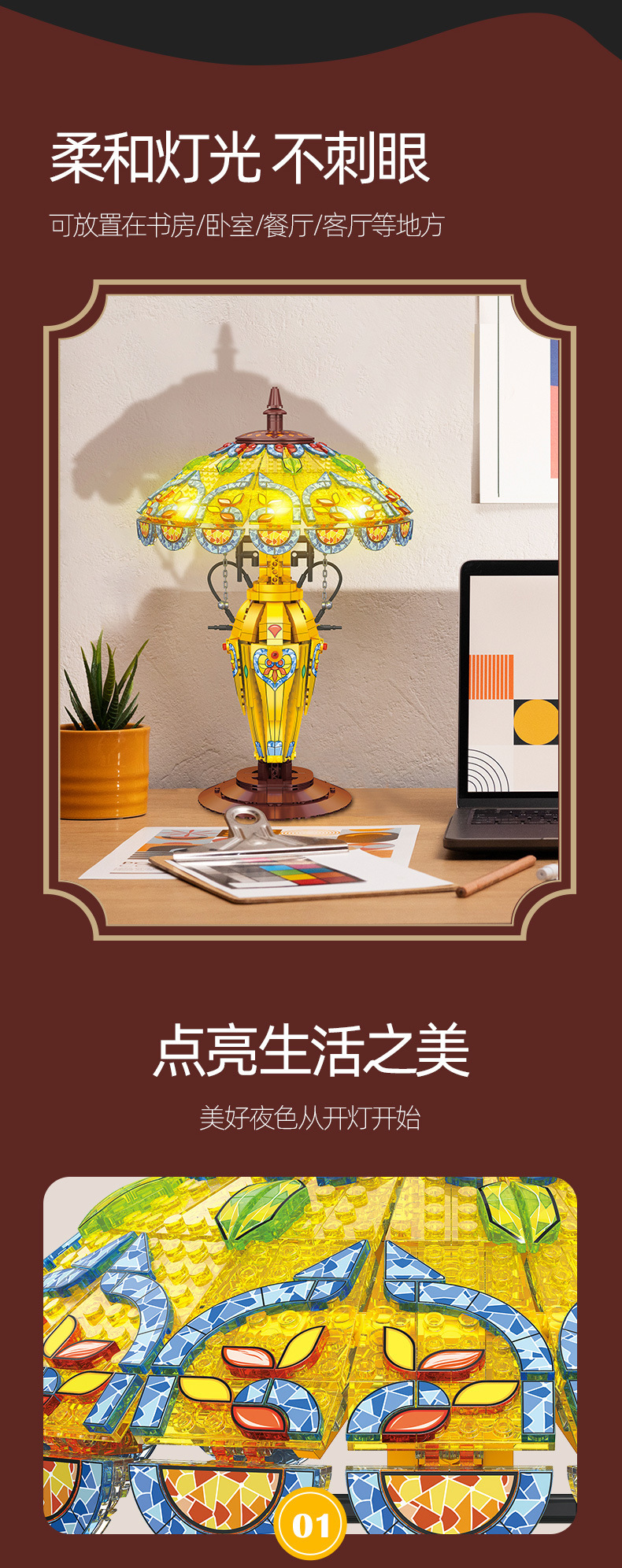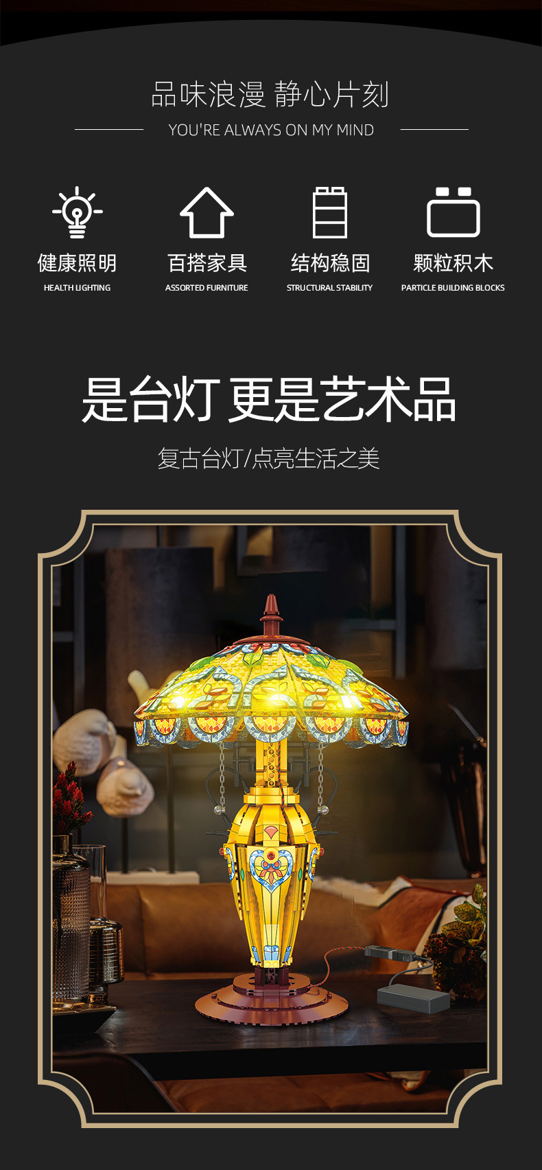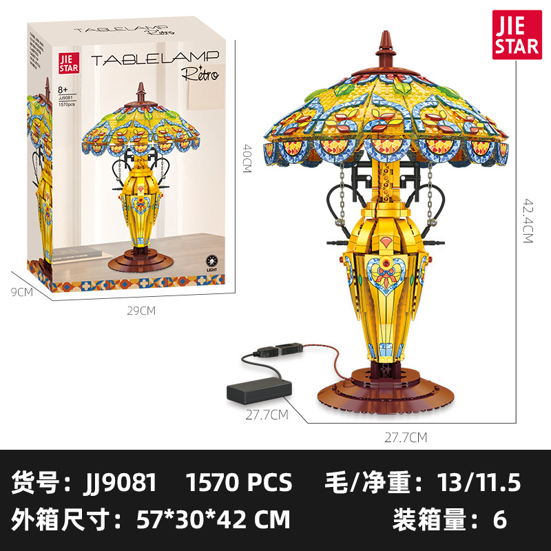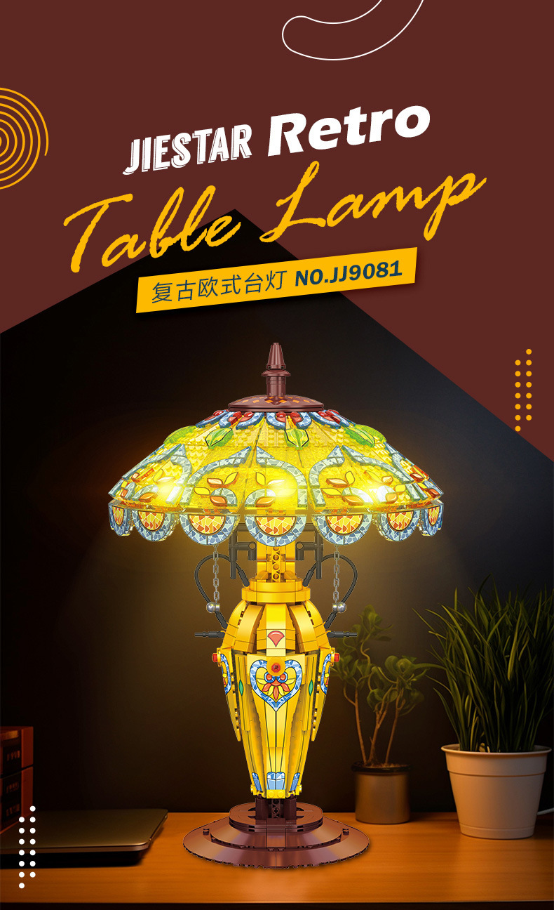 Jiexing JJ9081 레트로 테이블 램프 모델은 레고 빌딩 블록과 호환됩니다. 어린이를위한 창조적 인 장식품 남성용 교육 장난감을 조립합니다.스토어 가기
