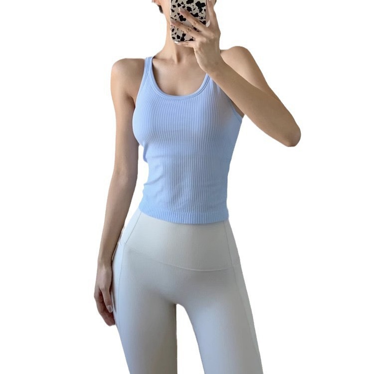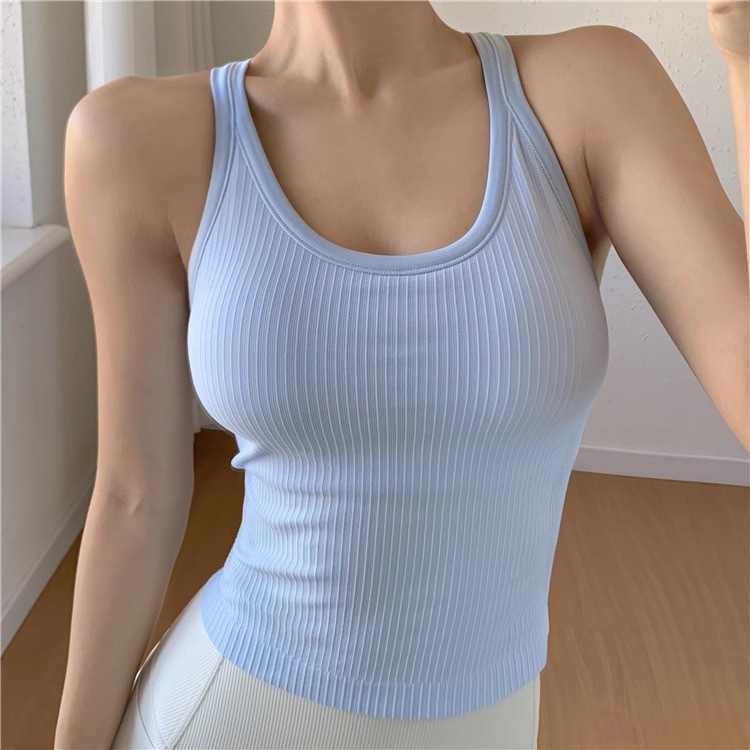 루루와 같은 스타일의 에브 스포츠 요가 조끼, 가슴 패드가 있는 여성용 아우터, 슬리밍, 아름다운 등, 피트니스, 속건성, 여름에 다용도로 사용 가능스토어 가기