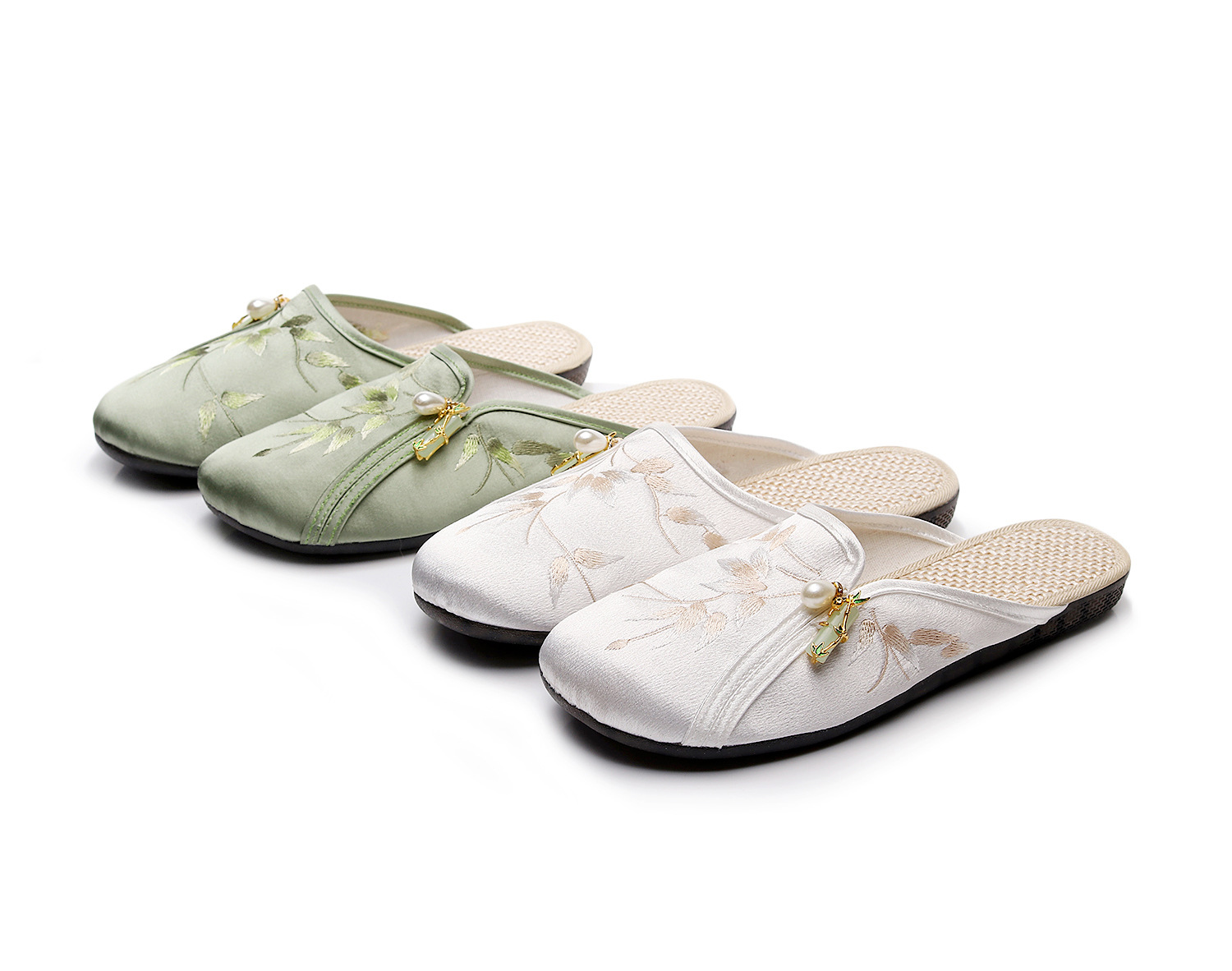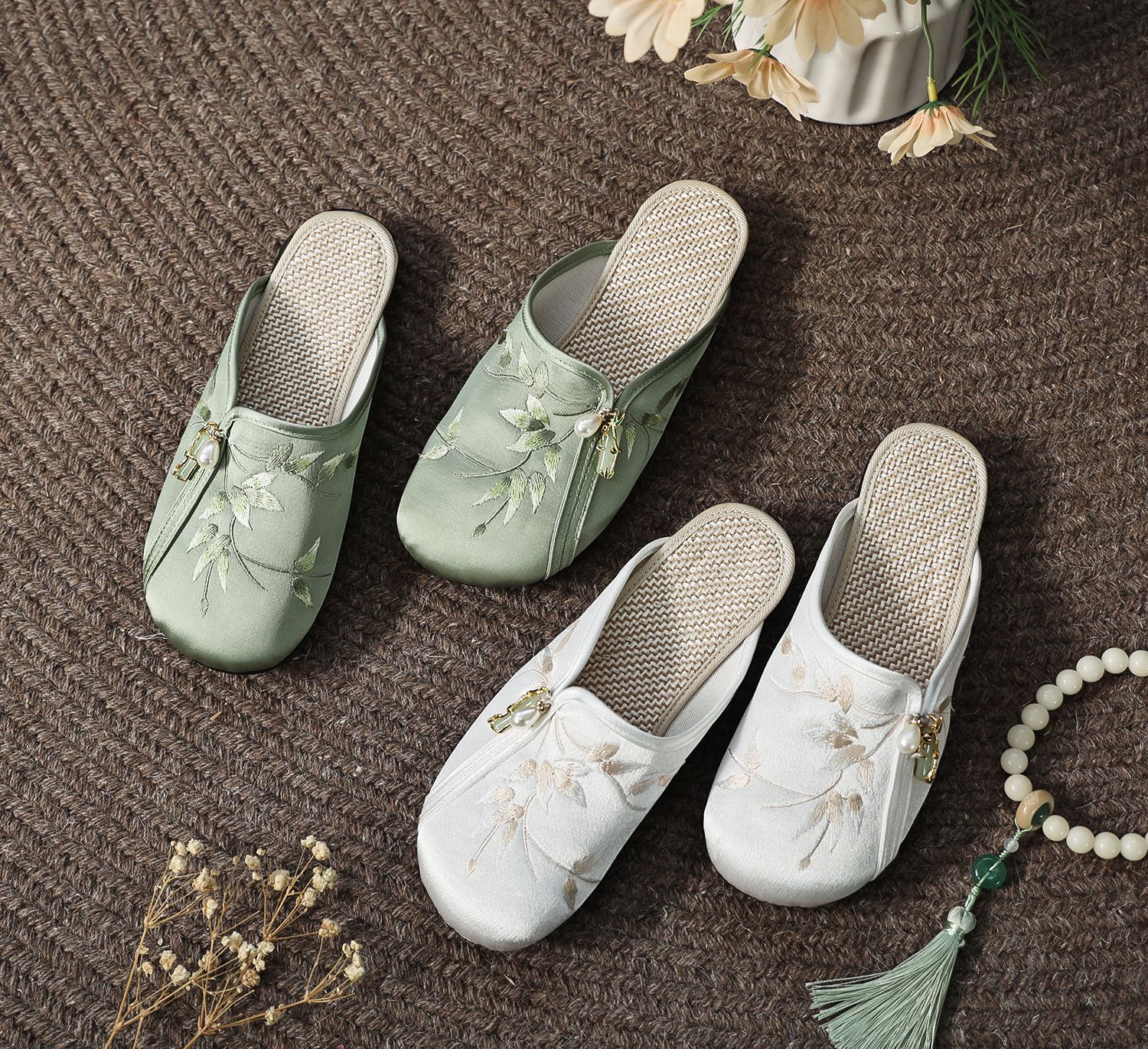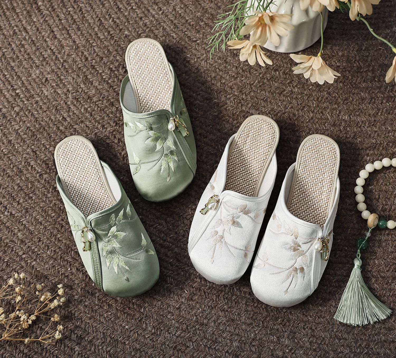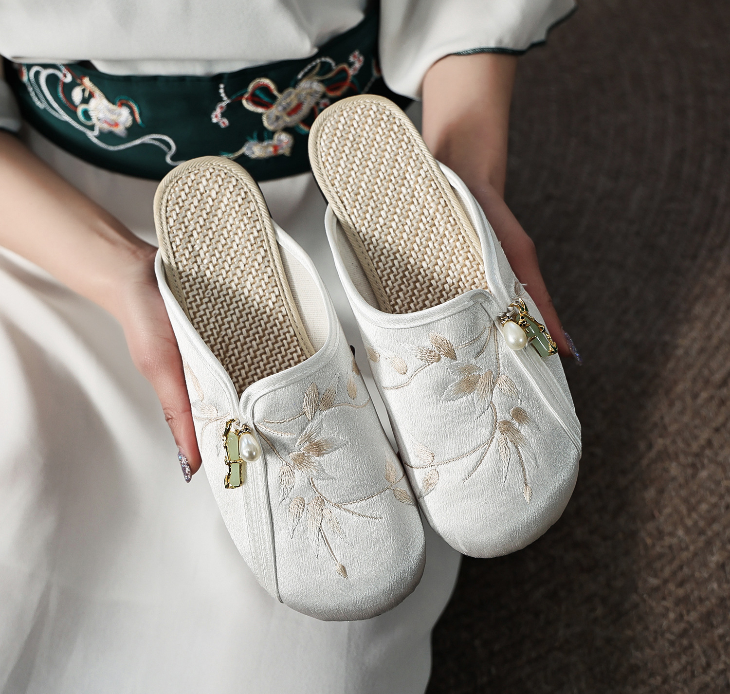 여름 새틴 수 놓은 반 슬리퍼 홈 및 의상 여성용 포크 자수 신발스토어 가기
