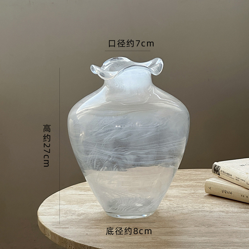 2025 새로운 화이트 송나라 미적 화이트 와비사비 스타일 유리 꽃병 하이 엔드 틈새 장식품 데스크탑 꽃병
