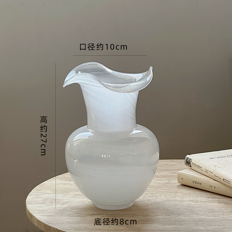 2025 새로운 화이트 송나라 미적 화이트 와비사비 스타일 유리 꽃병 하이 엔드 틈새 장식품 데스크탑 꽃병스토어 가기