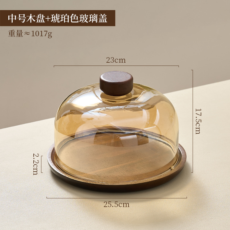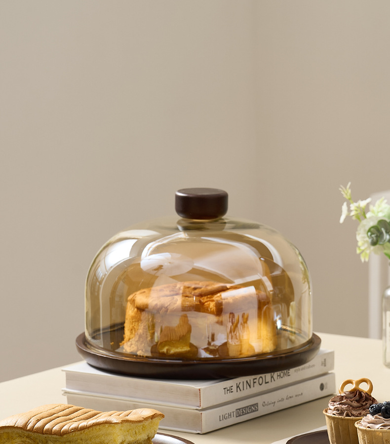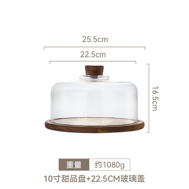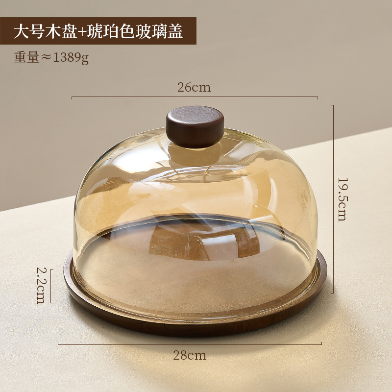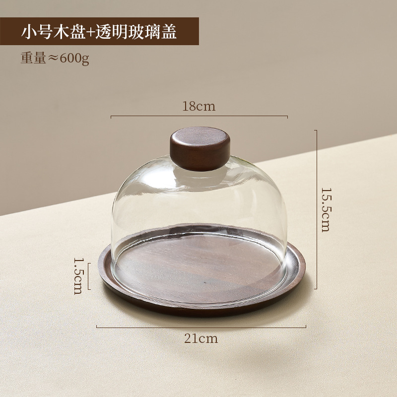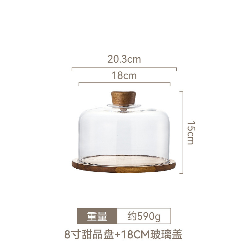 새로운 단단한 나무 케이크 스탠드 방진 유리 디스플레이 트레이 음식 커버 고급스러운 투명 유리 커버 과자 서양 음식