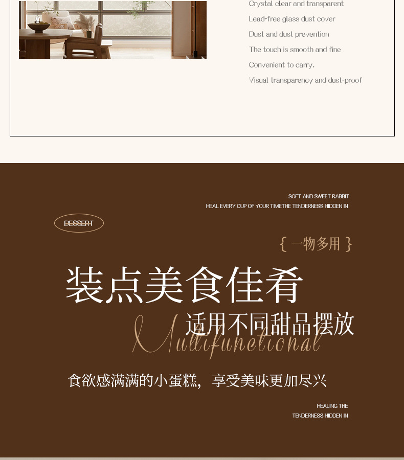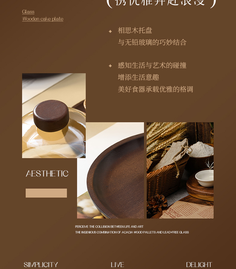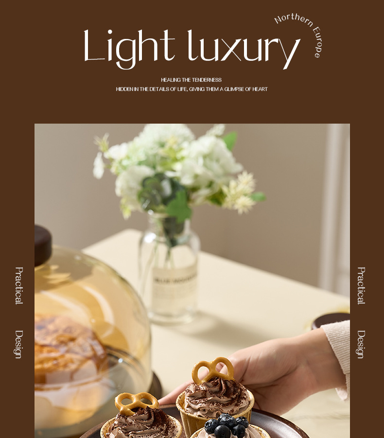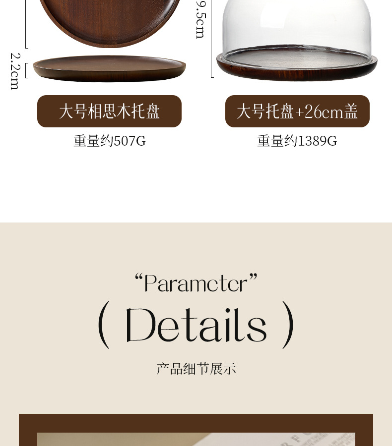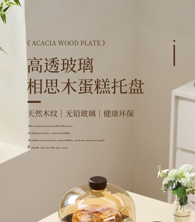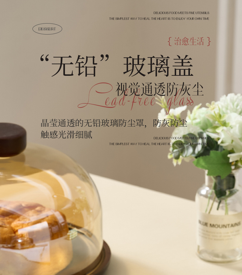 새로운 단단한 나무 케이크 스탠드 방진 유리 디스플레이 트레이 음식 커버 고급스러운 투명 유리 커버 과자 서양 음식