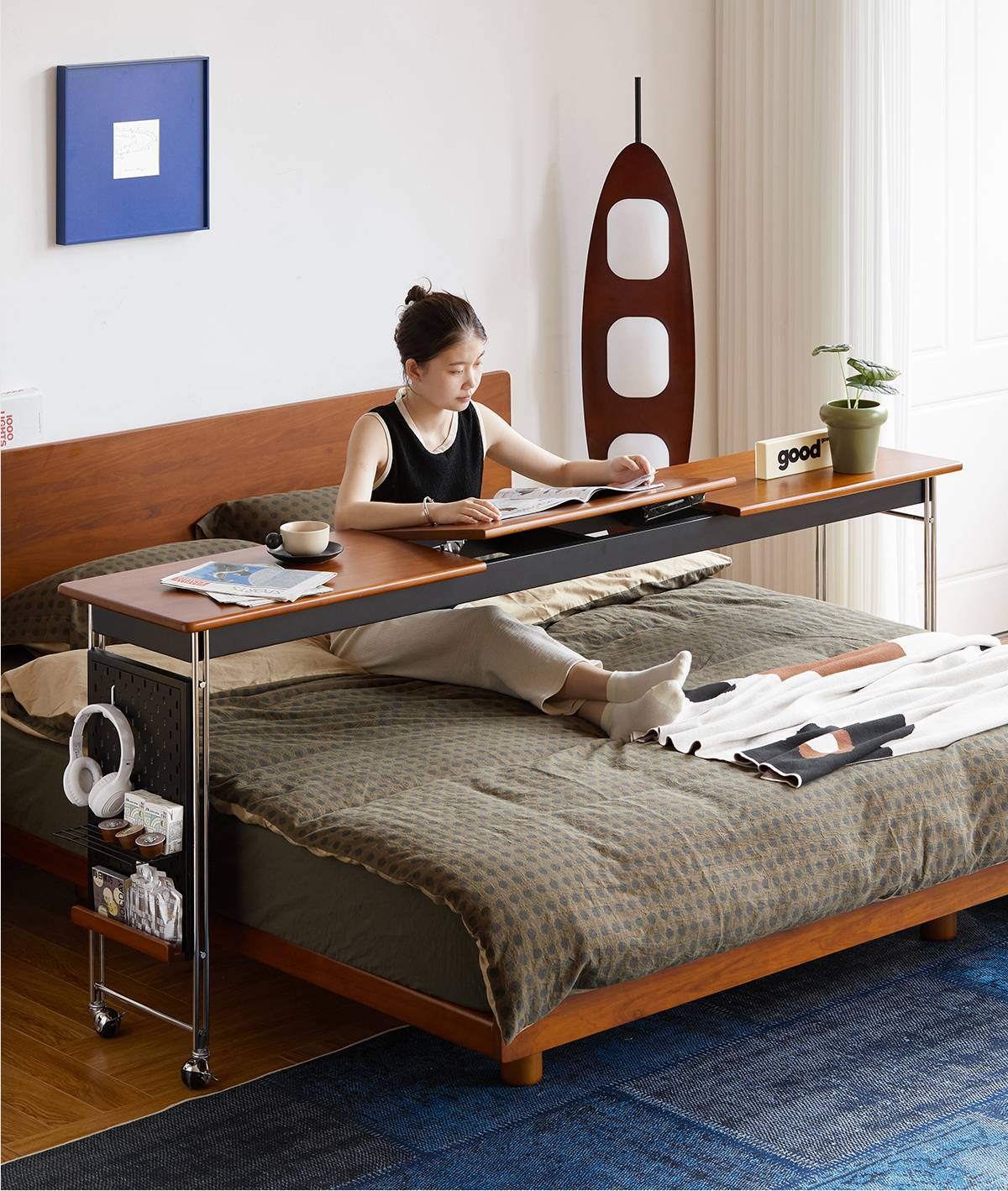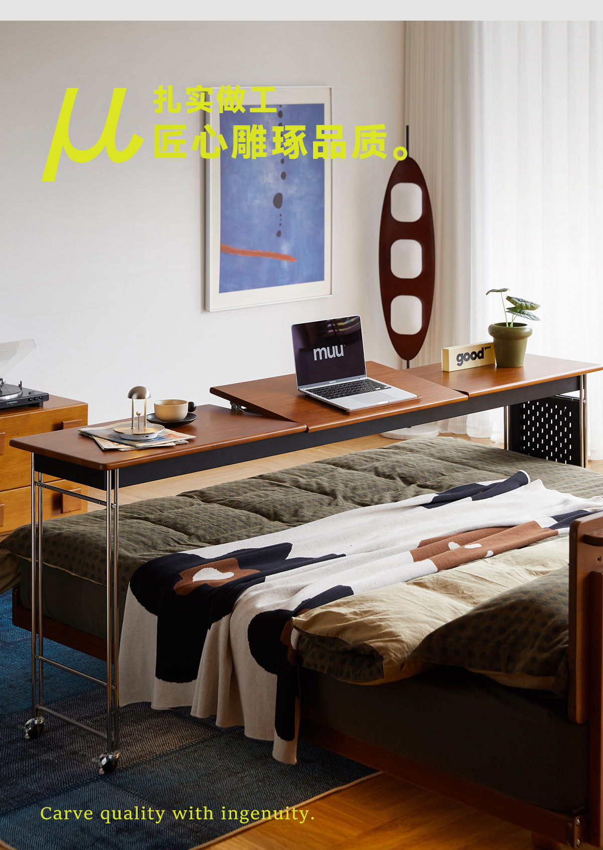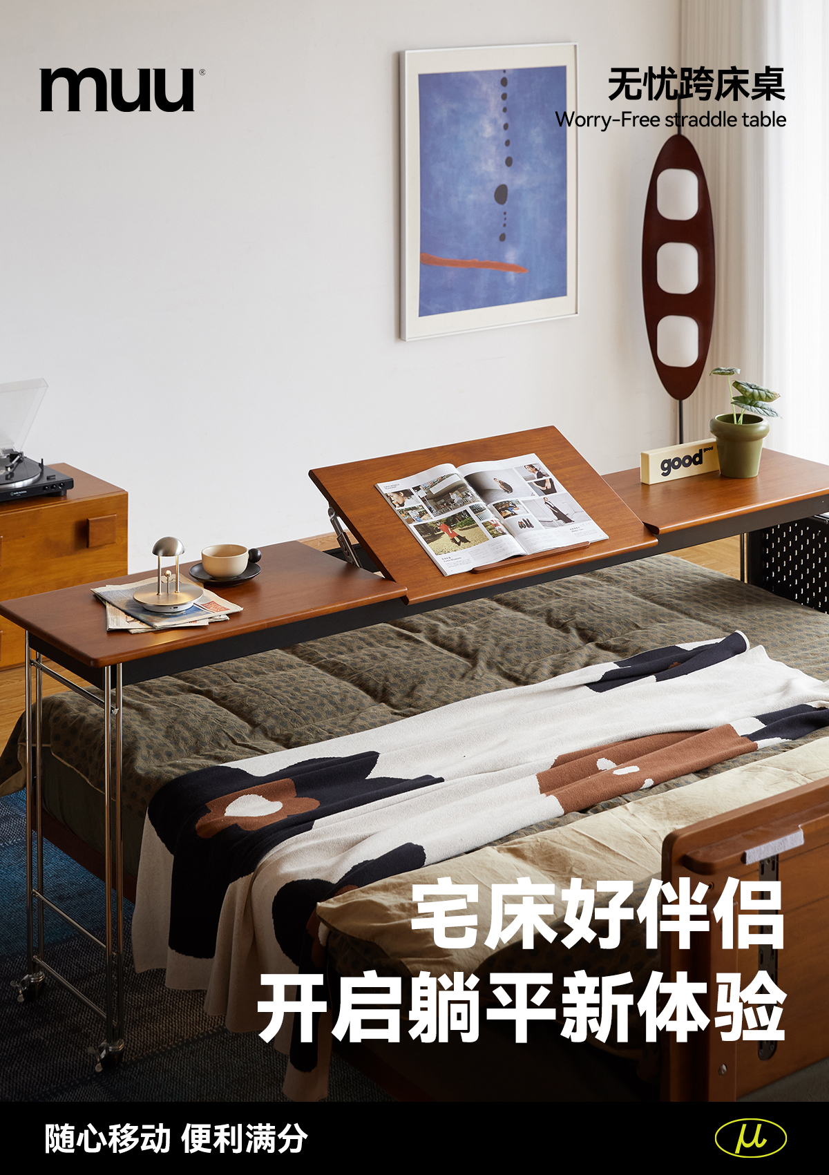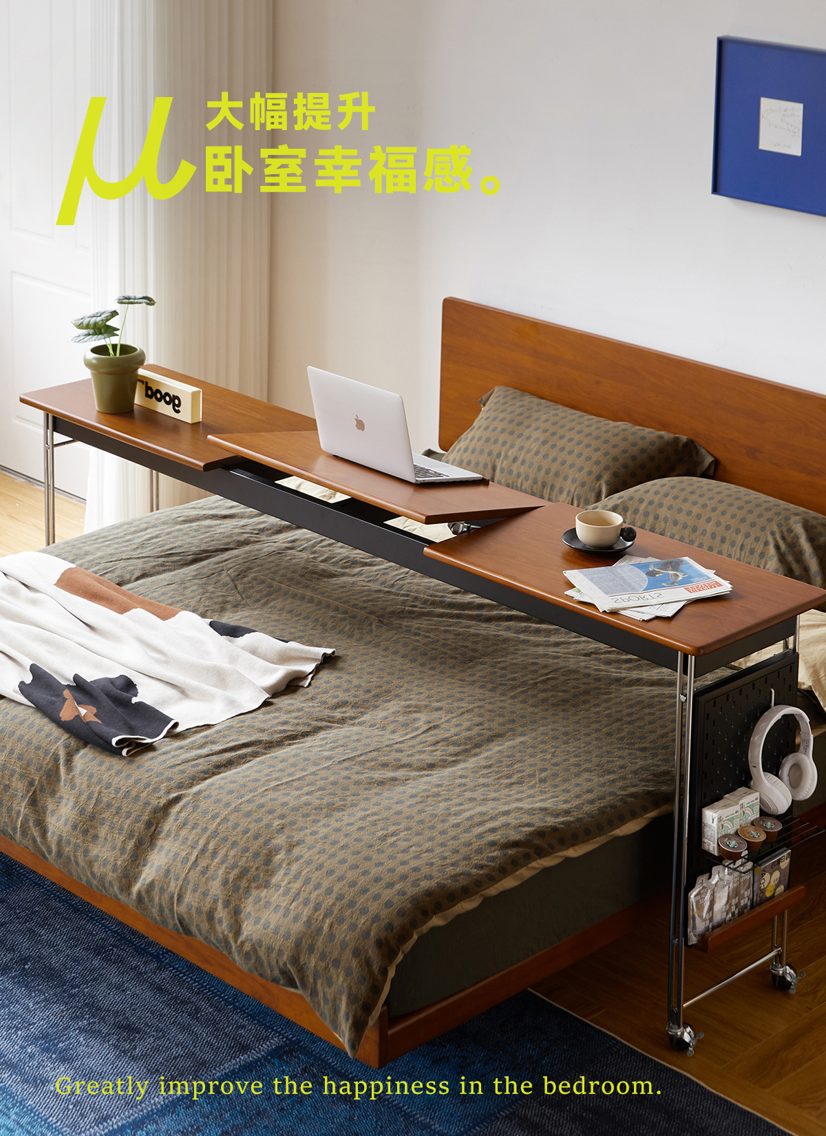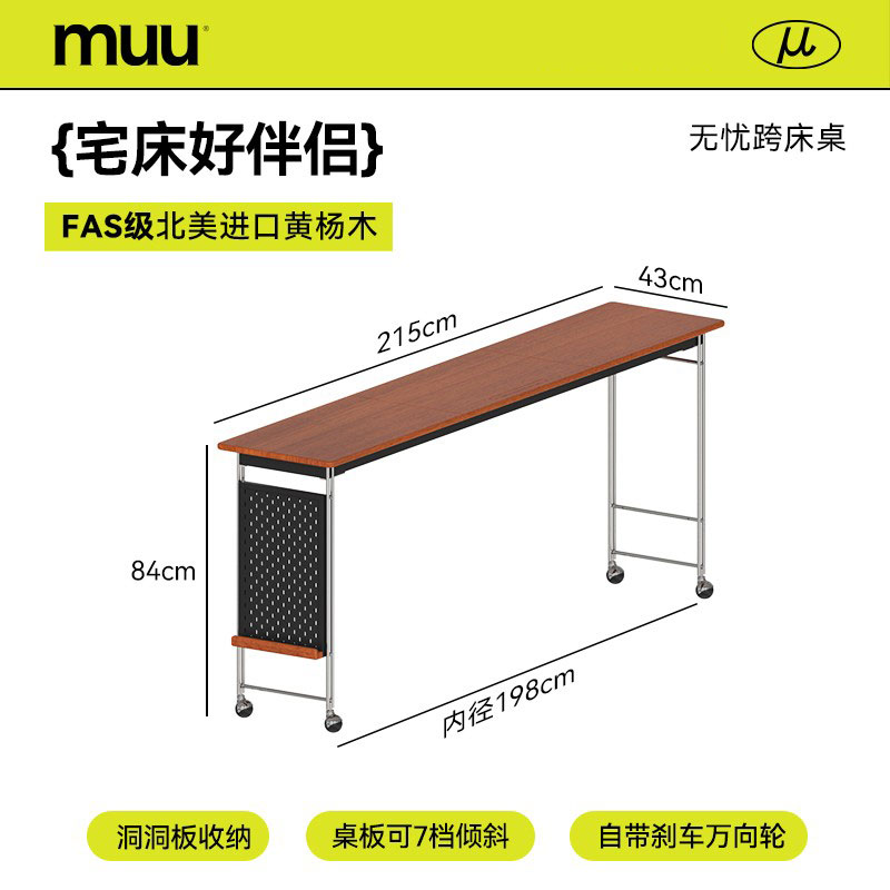 MUU 침대 옆 테이블 단단한 나무 침대 책상 침실 이동식 침대 끝 긴 테이블 홈 침대 크로스 게으른 컴퓨터 책상스토어 가기