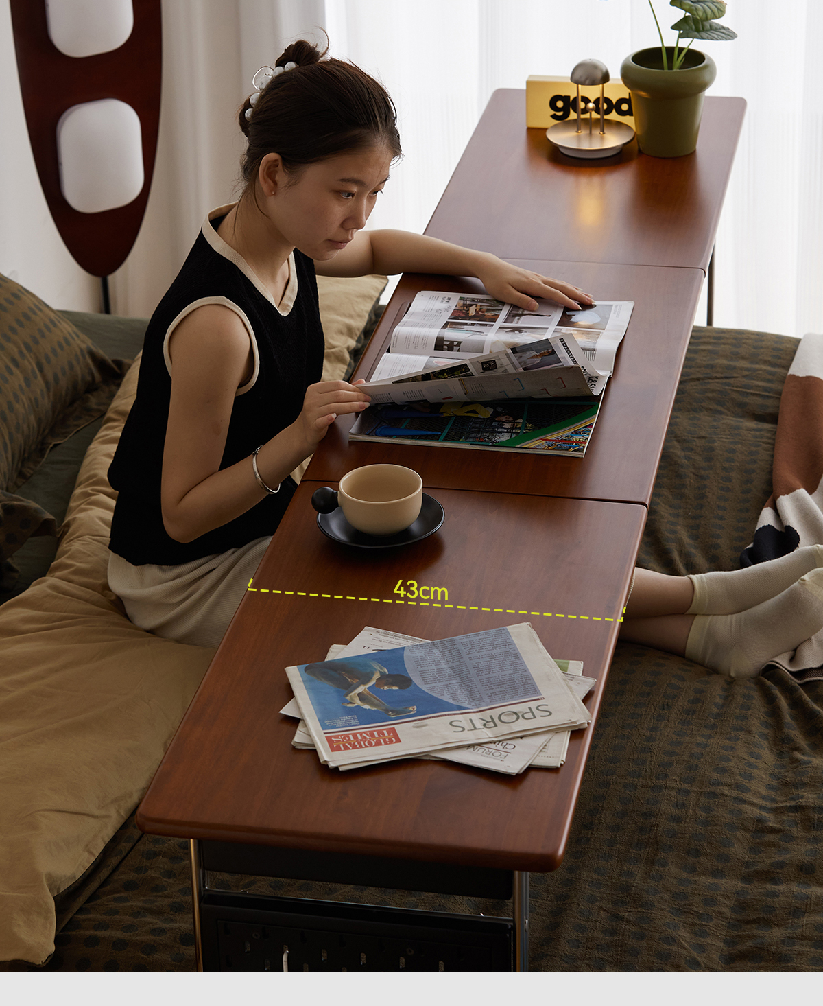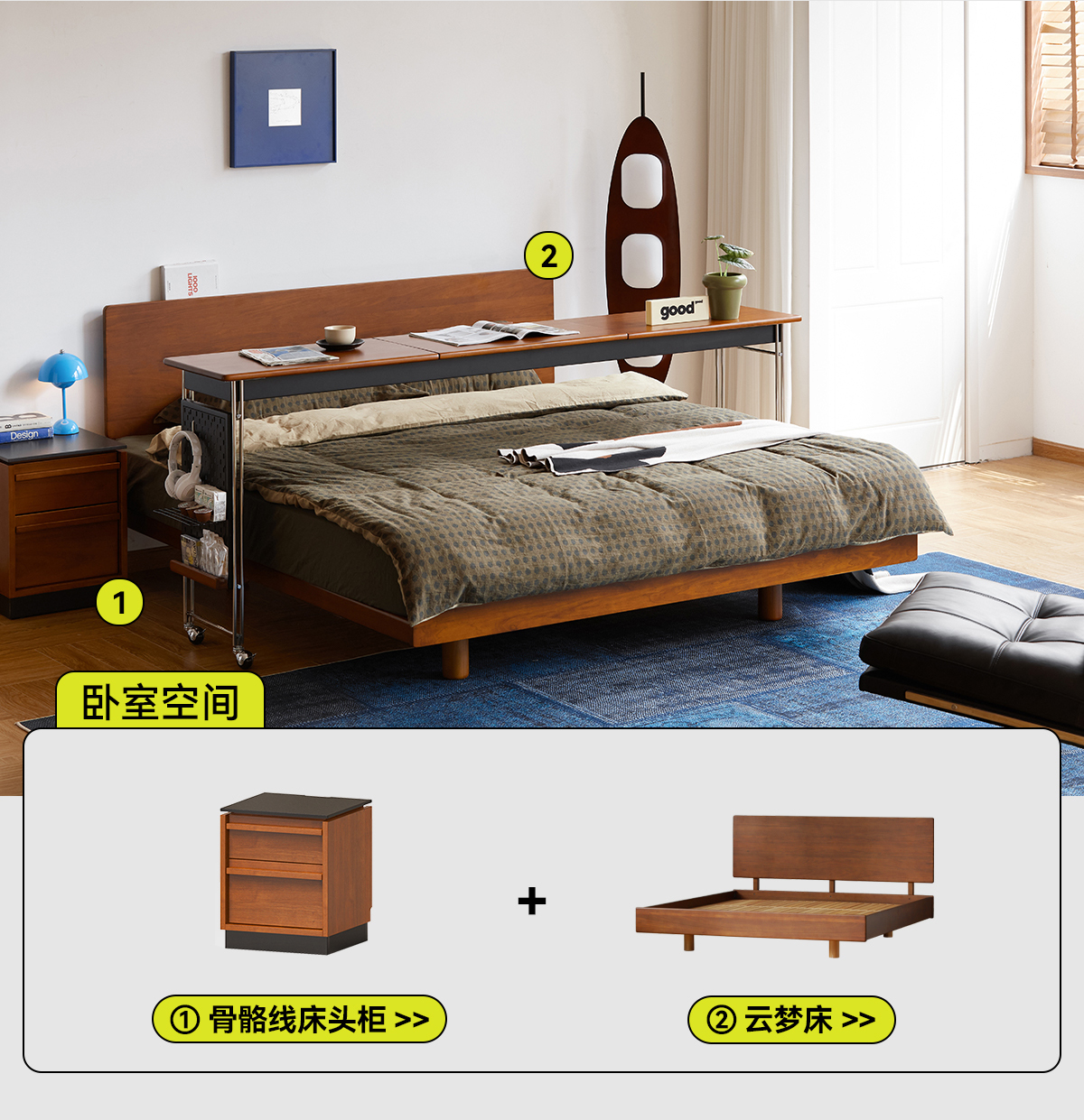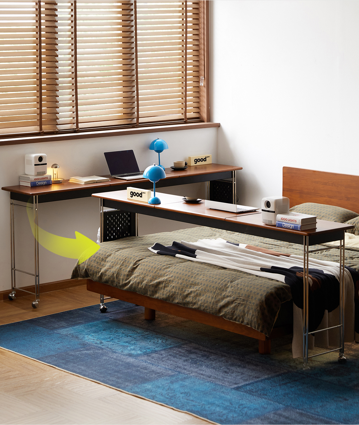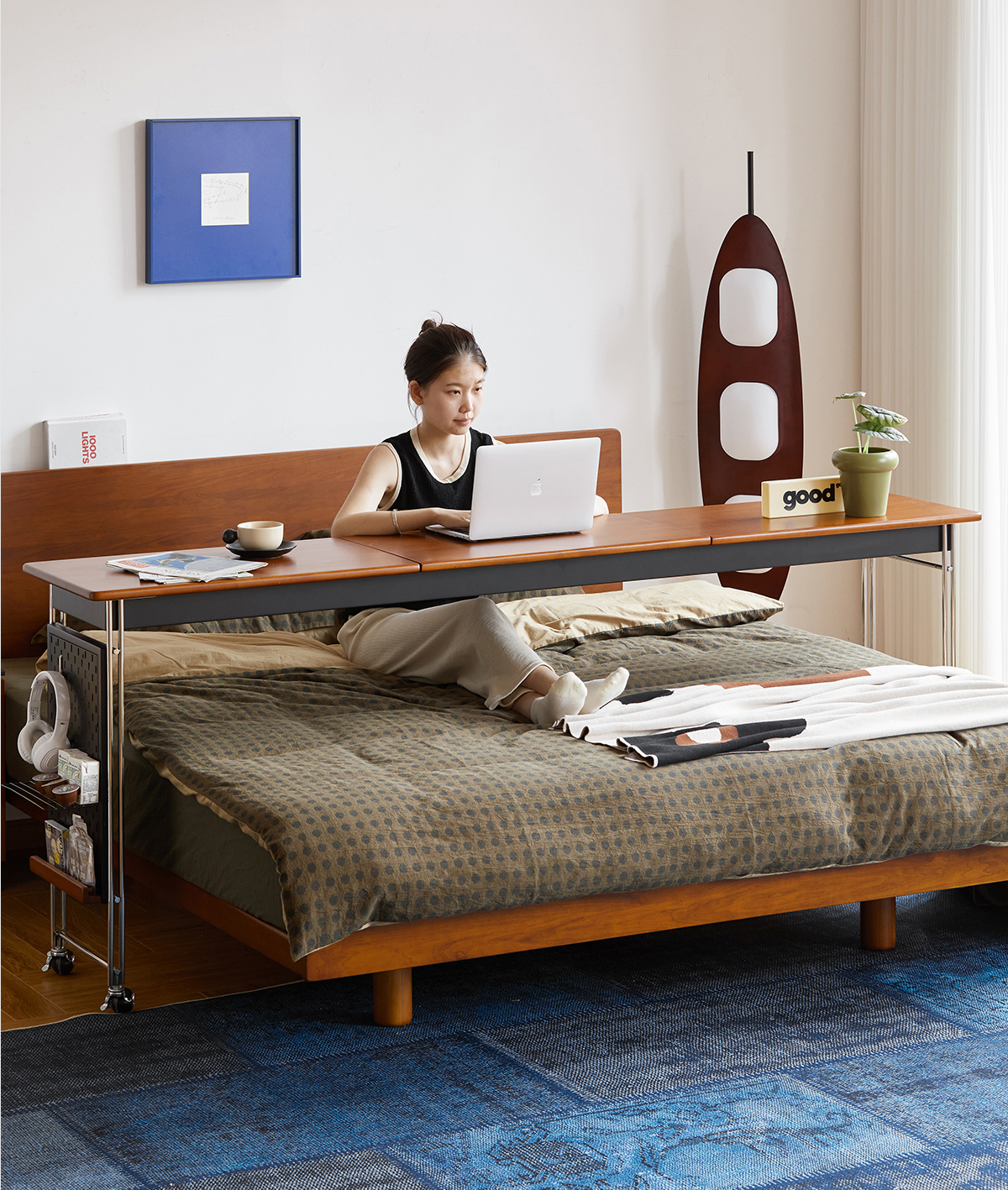 MUU 침대 옆 테이블 단단한 나무 침대 책상 침실 이동식 침대 끝 긴 테이블 홈 침대 크로스 게으른 컴퓨터 책상스토어 가기