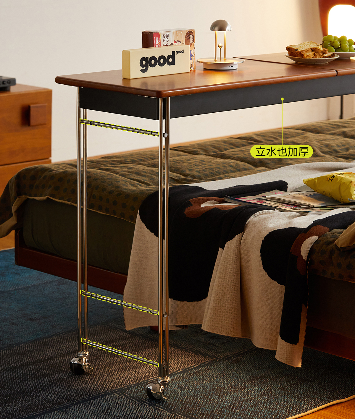 MUU 침대 옆 테이블 단단한 나무 침대 책상 침실 이동식 침대 끝 긴 테이블 홈 침대 크로스 게으른 컴퓨터 책상