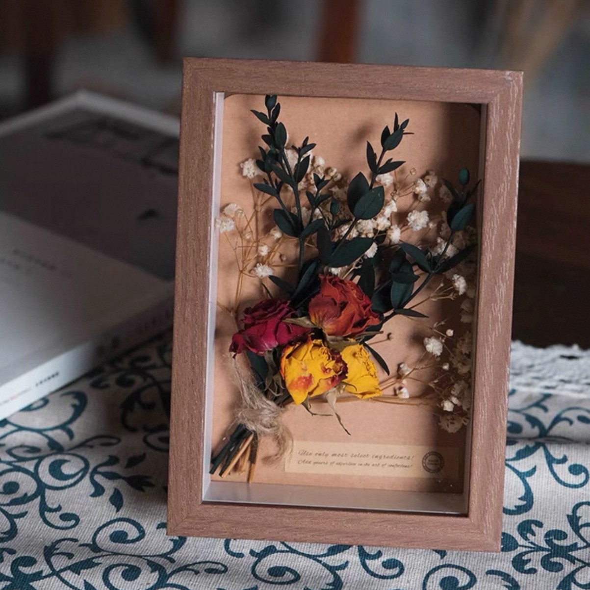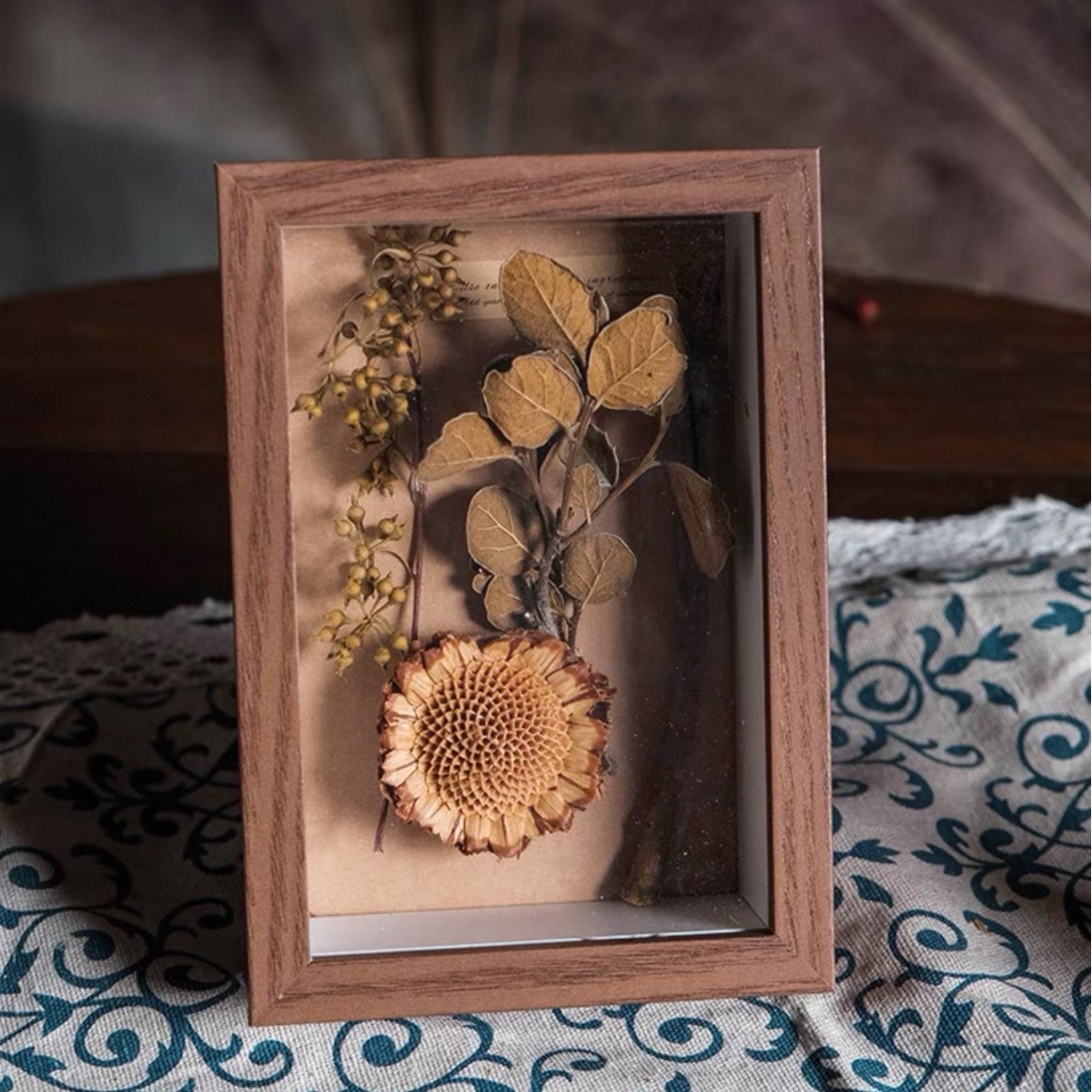 건조 꽃 액자 완성품 수제 DIY 장미 해바라기 재료 패키지 장식품 선물 크리스마스스토어 가기