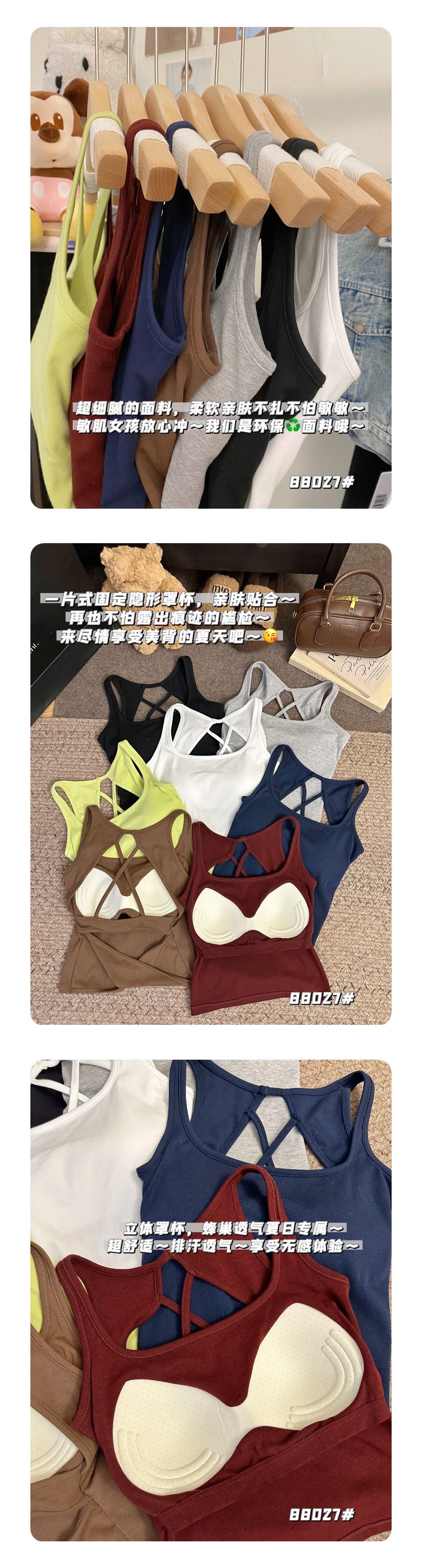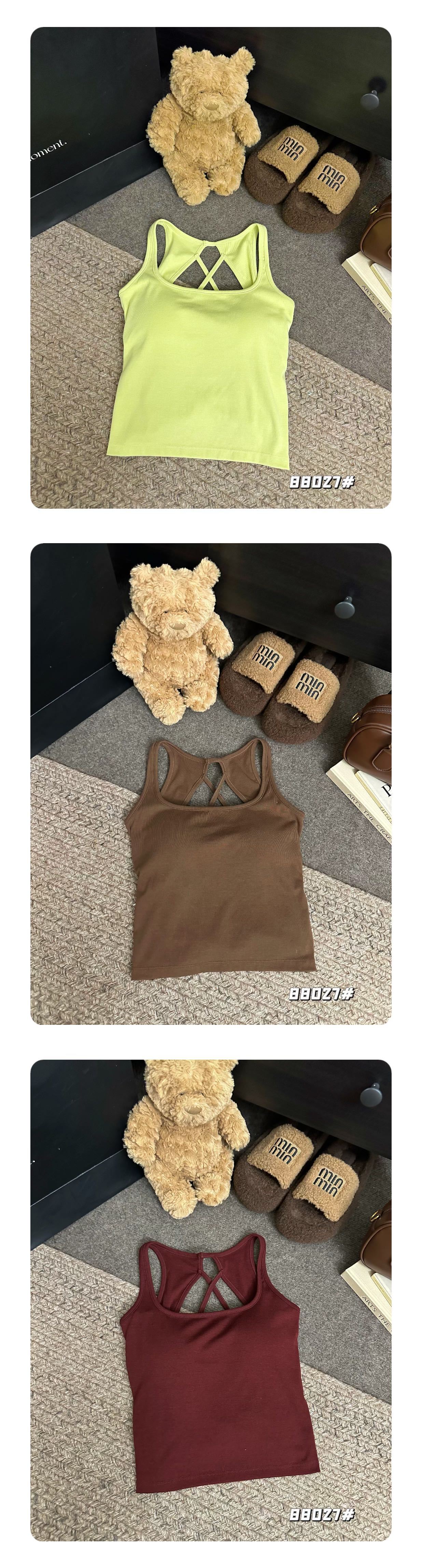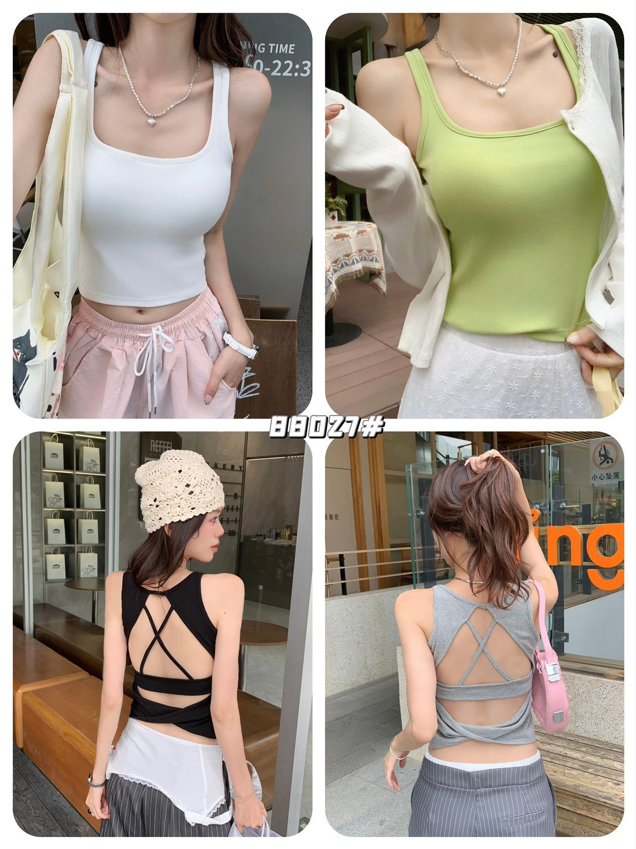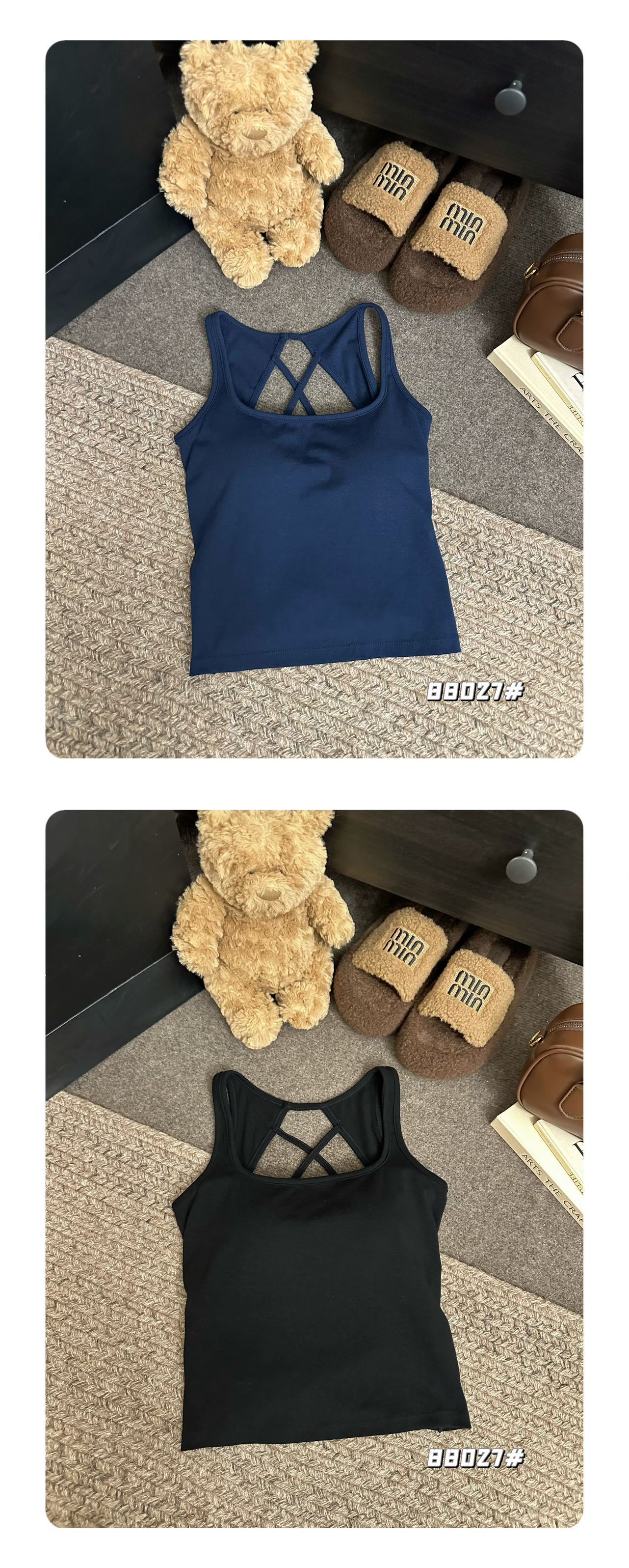 여름 아우터로 입기 좋은 여성용 섹시 퓨어 러스티 백리스 크로스 캐미솔, 슬림핏 밑단, 아름다운 브라 패드 탑스토어 가기