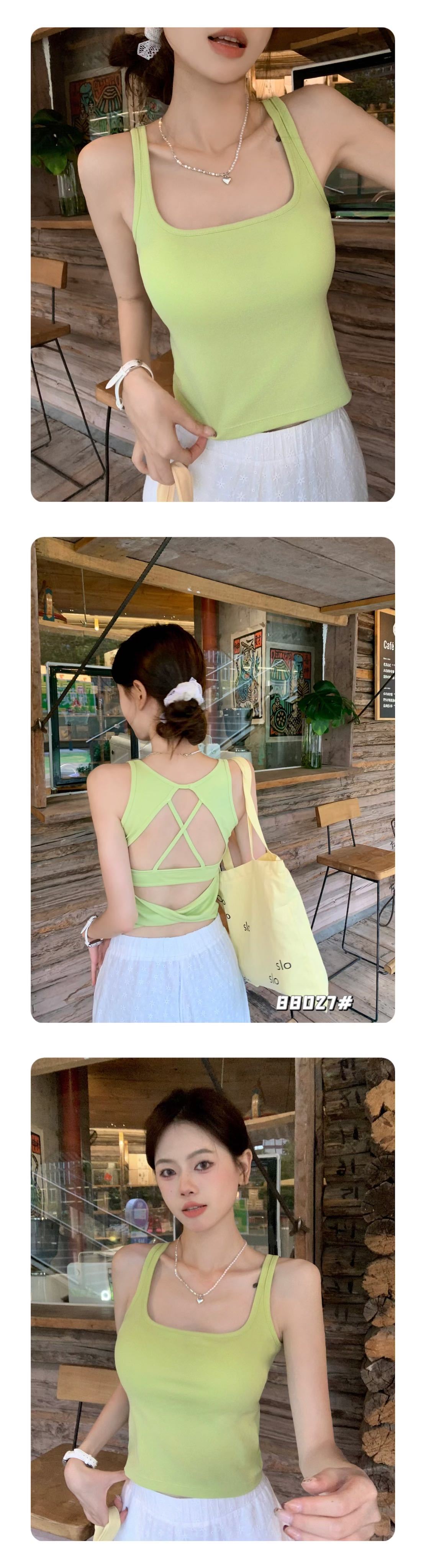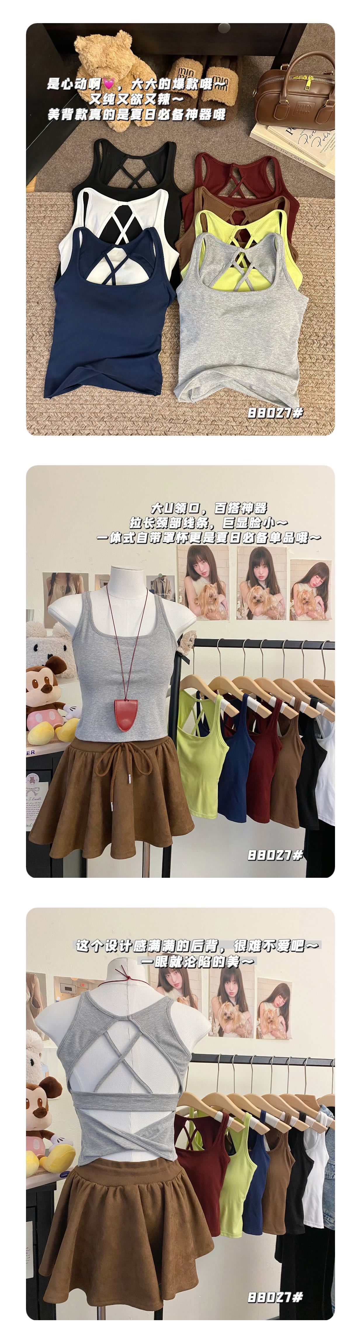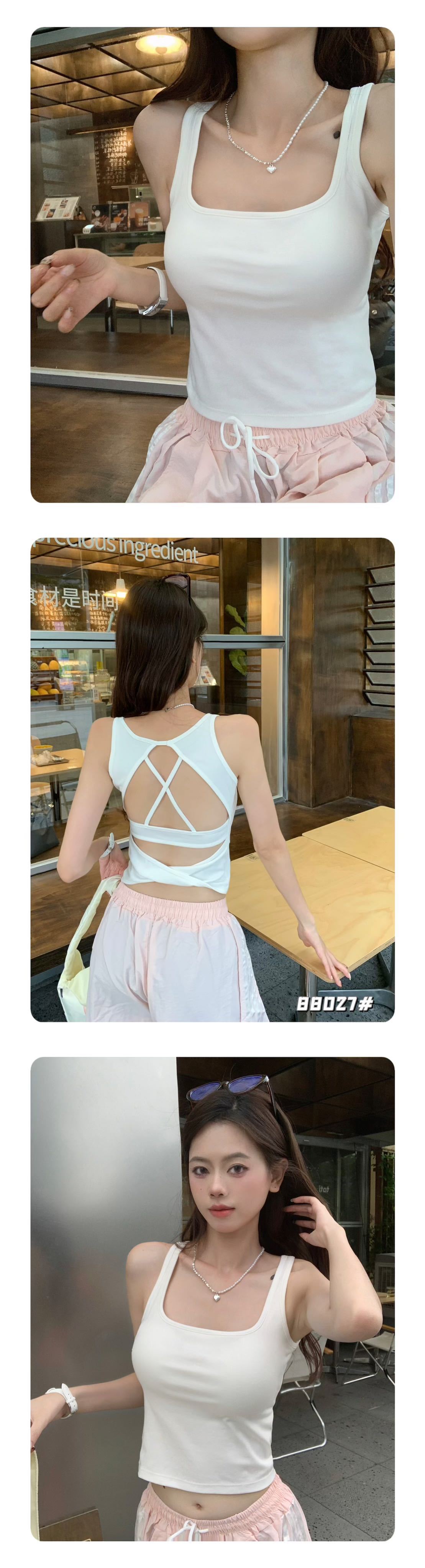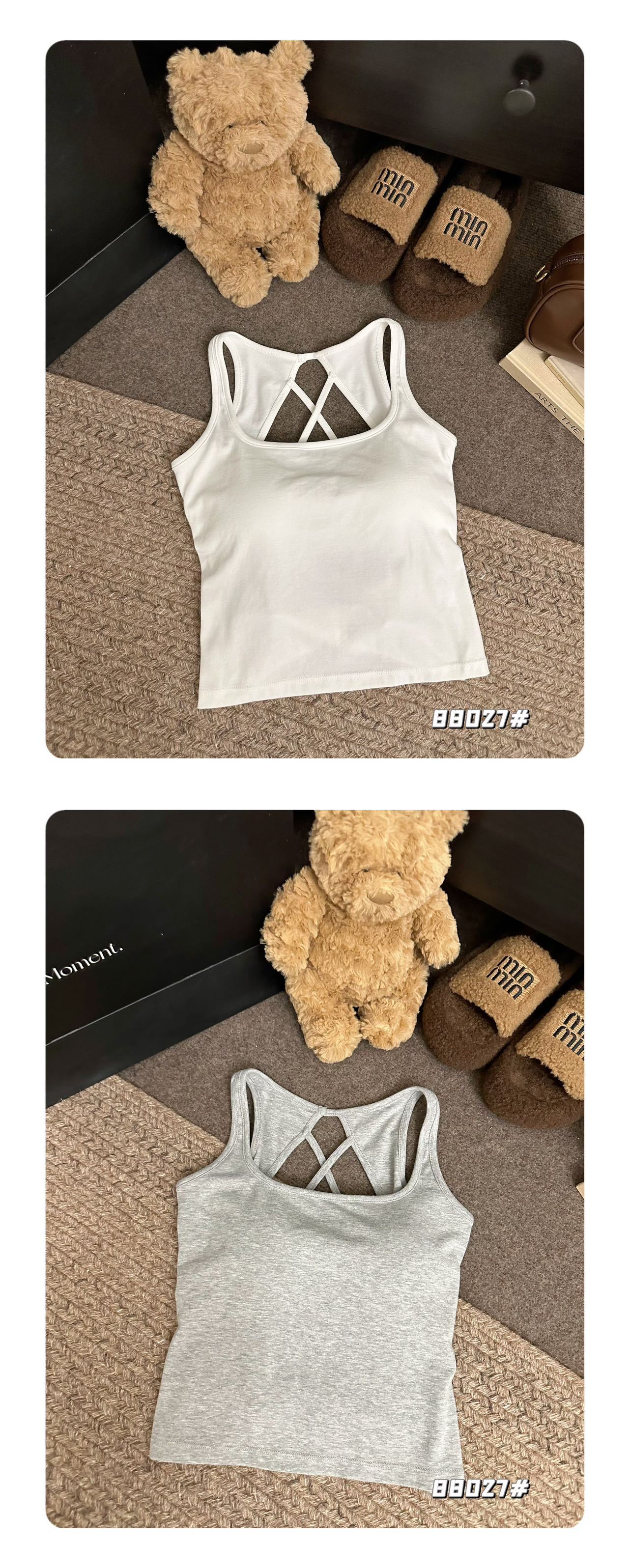 여름 아우터로 입기 좋은 여성용 섹시 퓨어 러스티 백리스 크로스 캐미솔, 슬림핏 밑단, 아름다운 브라 패드 탑스토어 가기