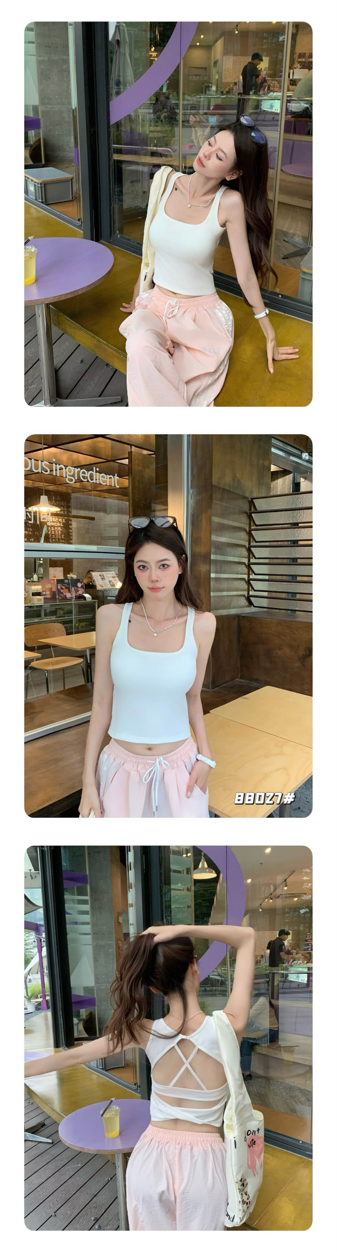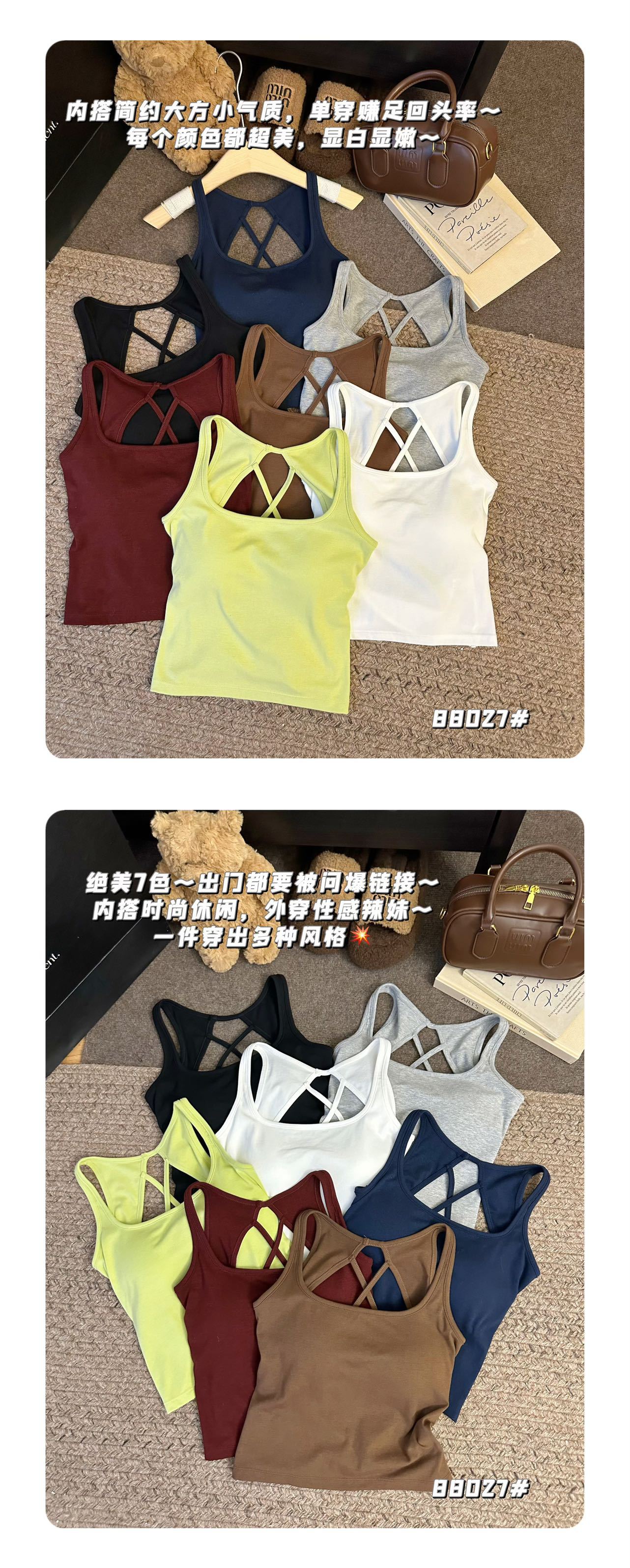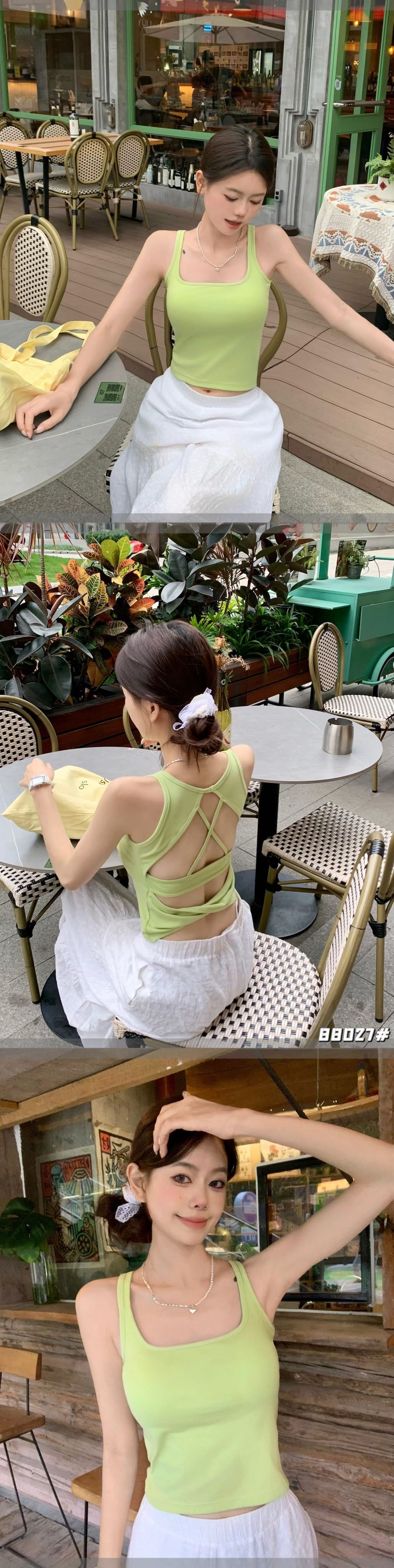 여름 아우터로 입기 좋은 여성용 섹시 퓨어 러스티 백리스 크로스 캐미솔, 슬림핏 밑단, 아름다운 브라 패드 탑