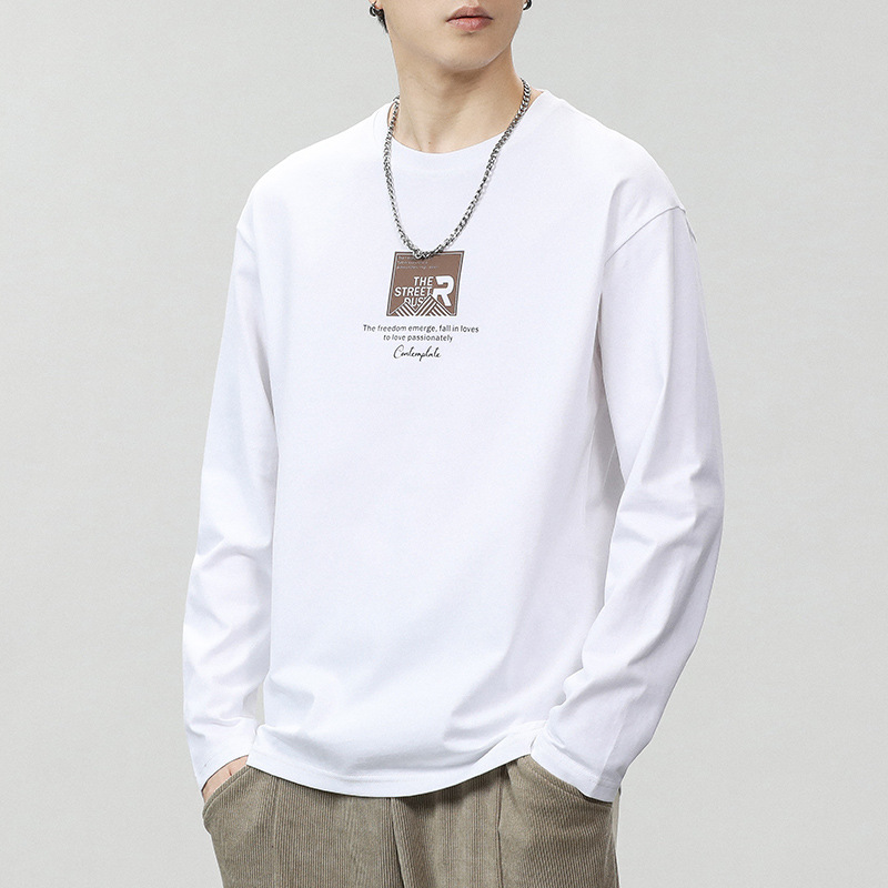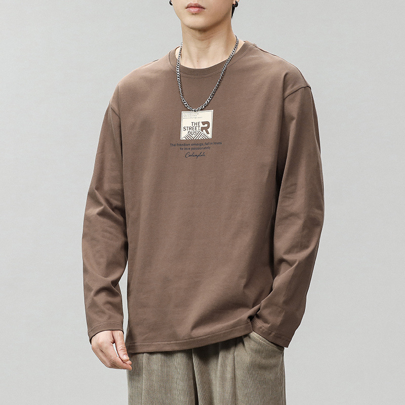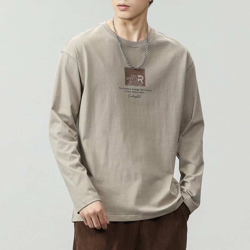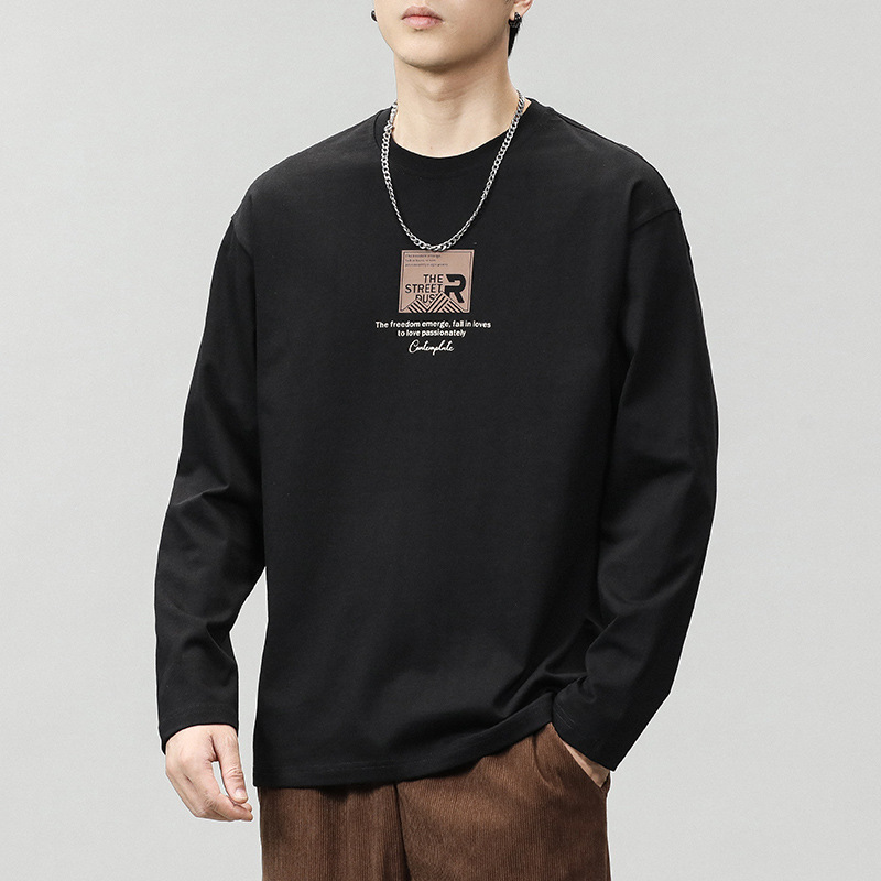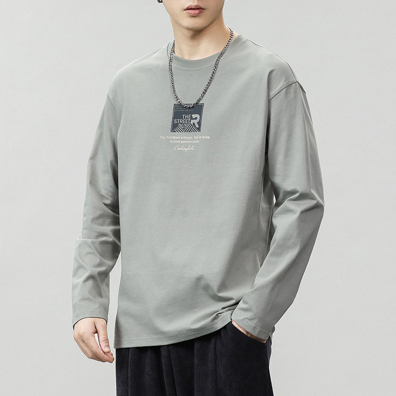 긴팔 남성 티셔츠 봄, 가을 2025 새로운 루즈 탑 이너웨어 라운드 넥 스웨트 셔츠 남성용 바닥 셔츠스토어 가기
