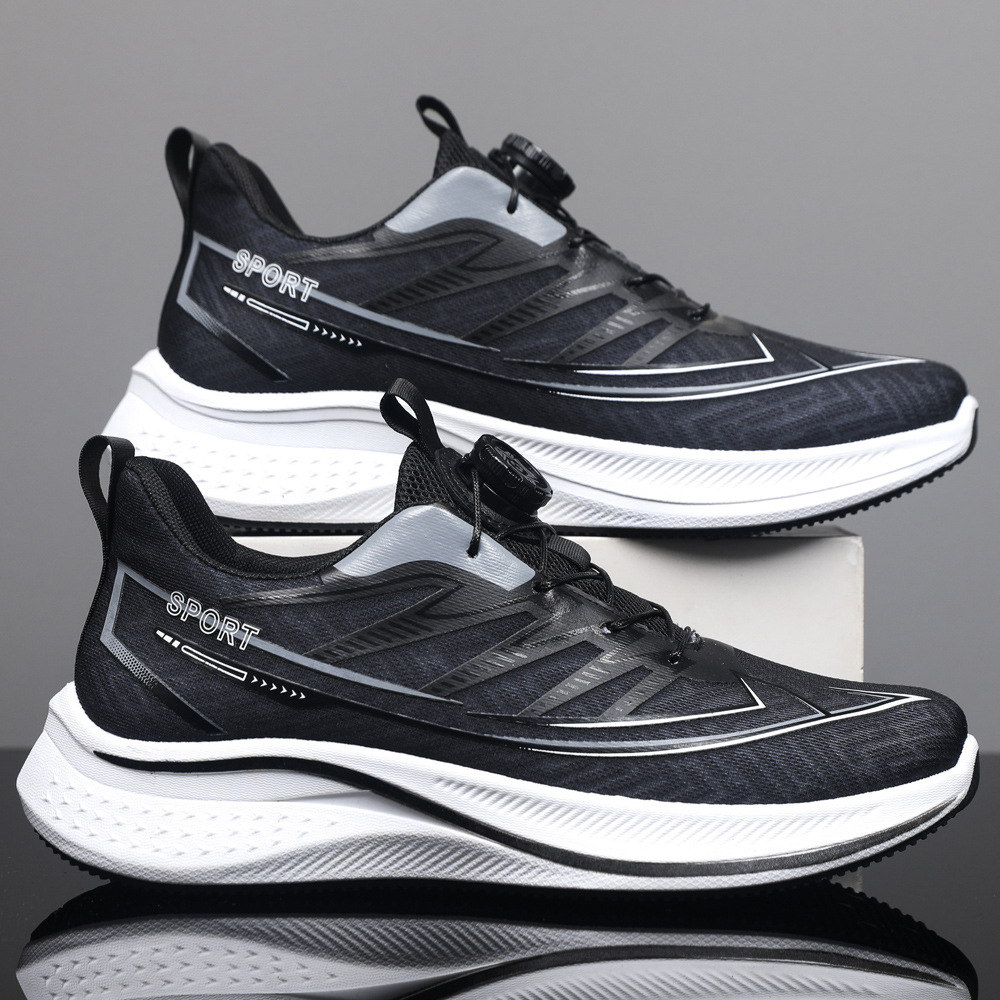 트렌디한 남성 신발 회전 버클 끈 없는 운동화 여름 메쉬 트레이닝 남성 신발 체육 시험 러닝화스토어 가기