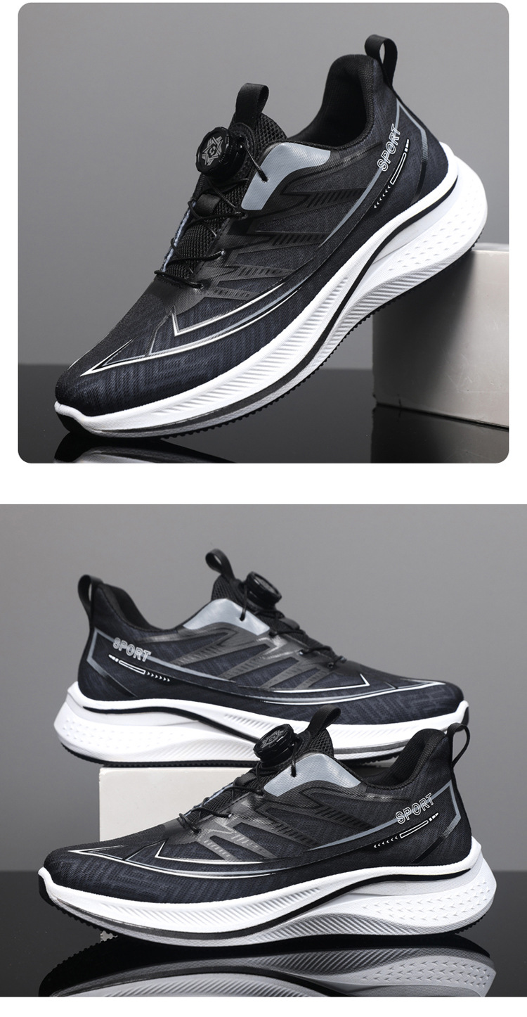 트렌디한 남성 신발 회전 버클 끈 없는 운동화 여름 메쉬 트레이닝 남성 신발 체육 시험 러닝화