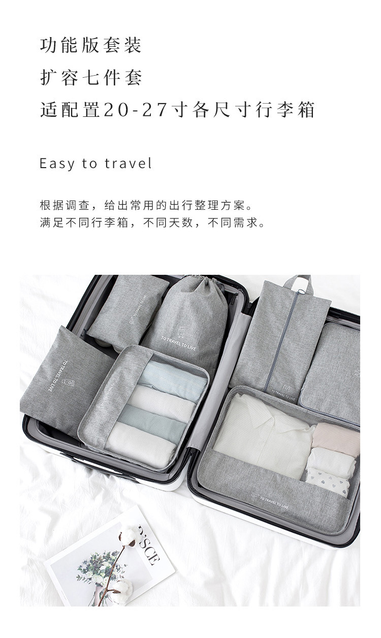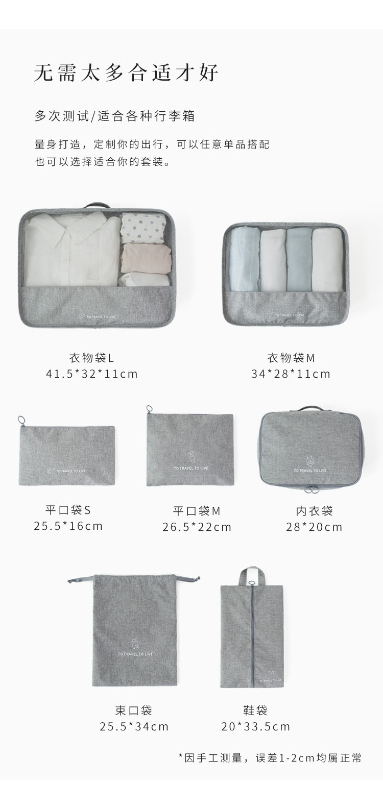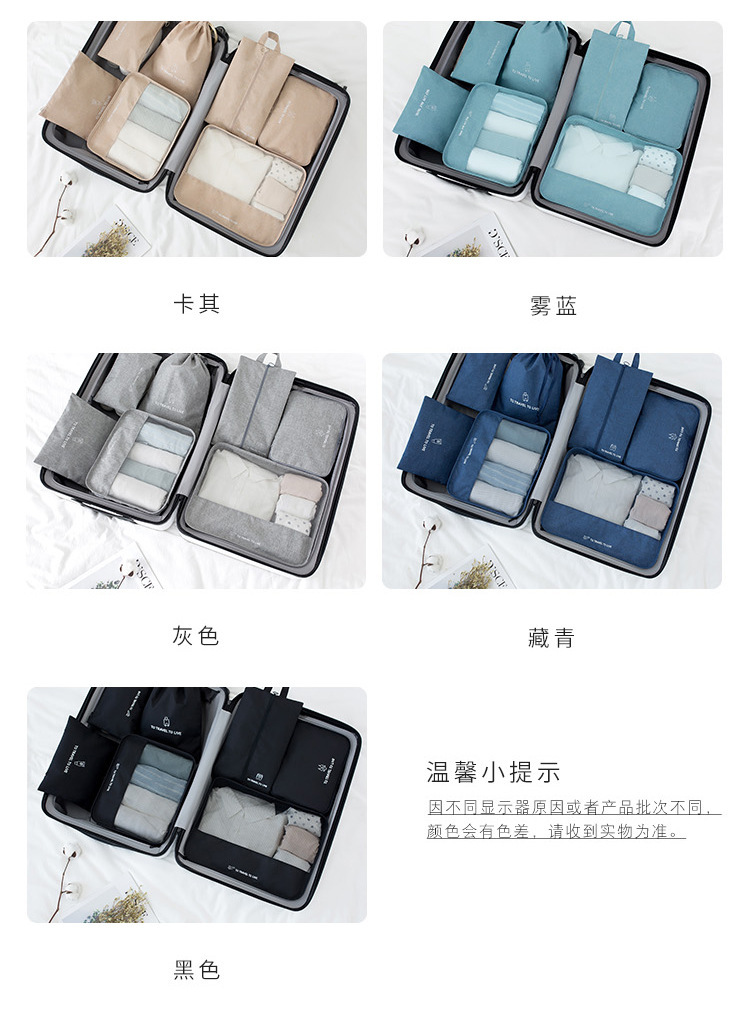 여행용 수하물 정리 및 보관 가방 7종 세트 양이온 옥스포드 천 간단한 의류 분류 정리 가방스토어 가기