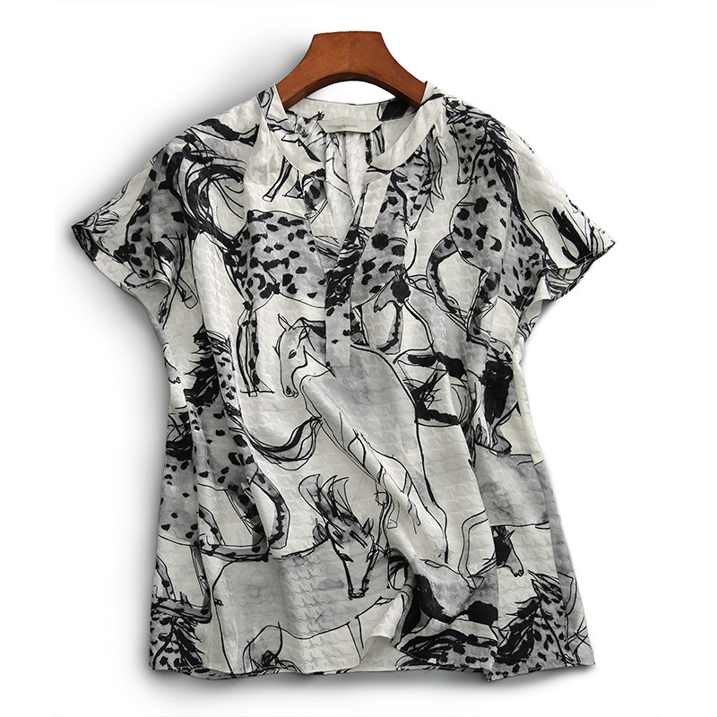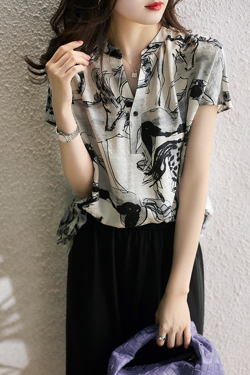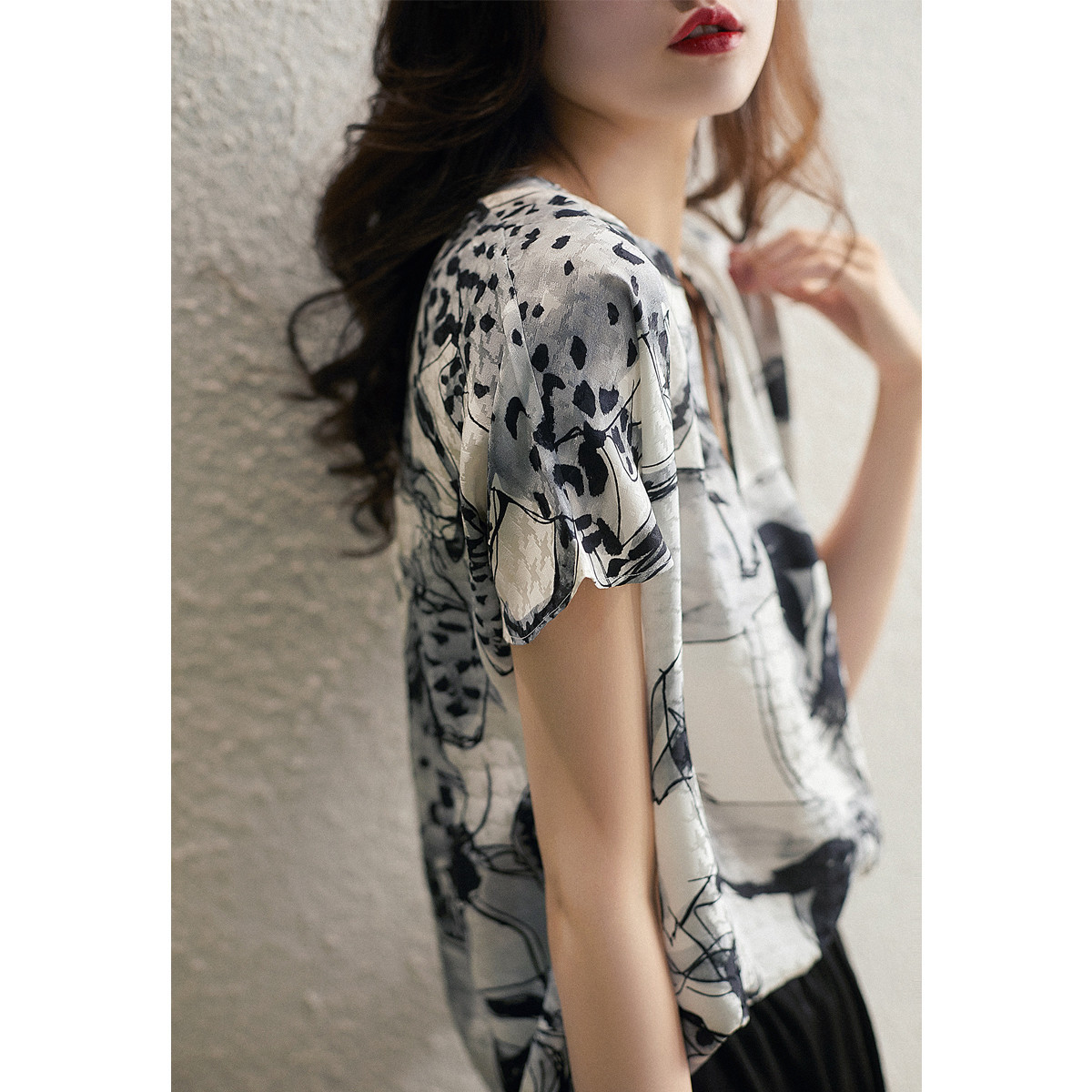 꽃무늬 쉬폰 셔츠 여성 여름 반팔 2026 새로운 디자인 예술적인 프린트 루즈핏 슬리밍 얇은 탑