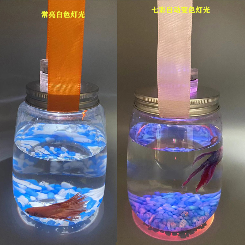 • 500ML 타원형 + 유색 또는 흰색 램프 + 리프팅 로프 + 파란색과 흰색 바닥 모래 해파리 베타 탱크