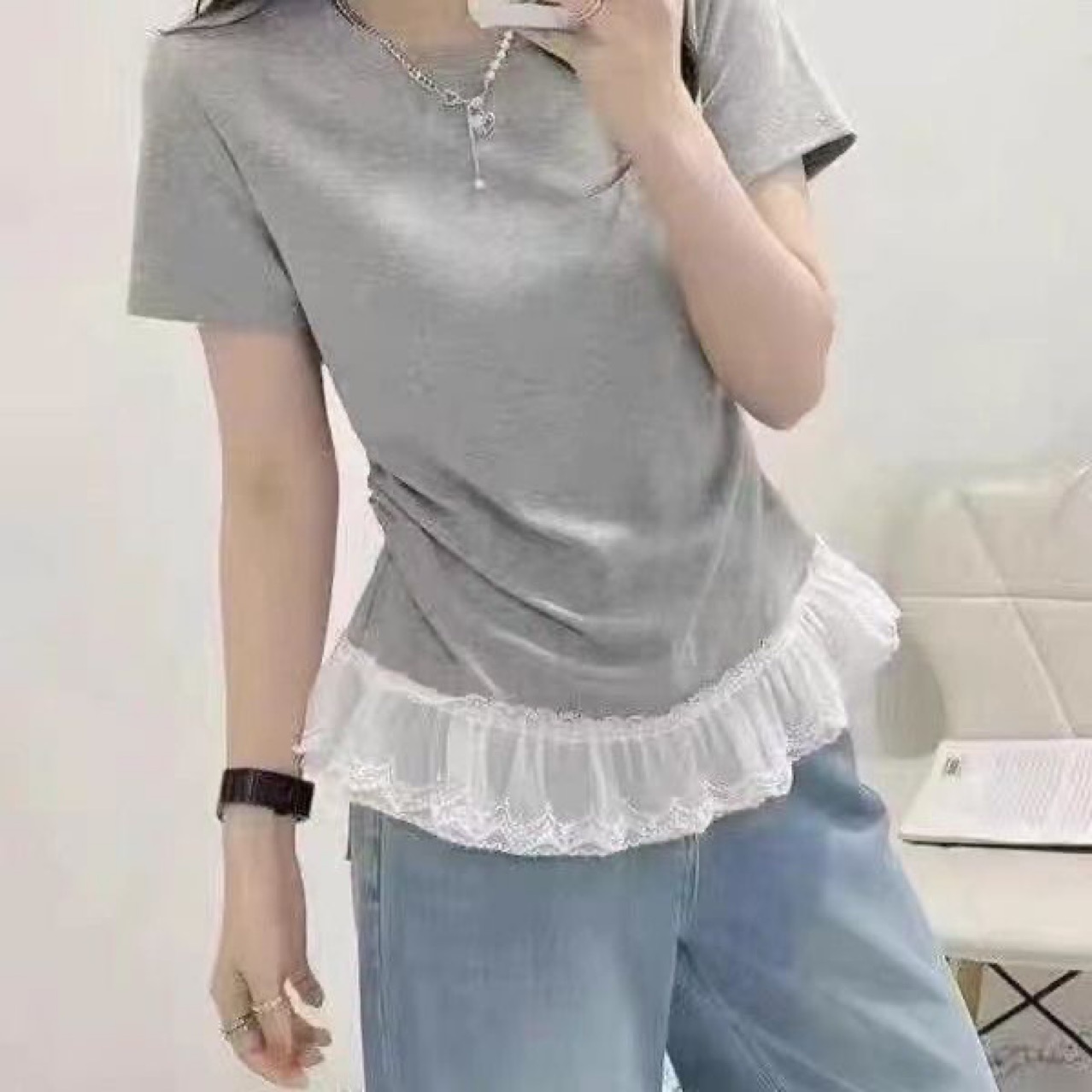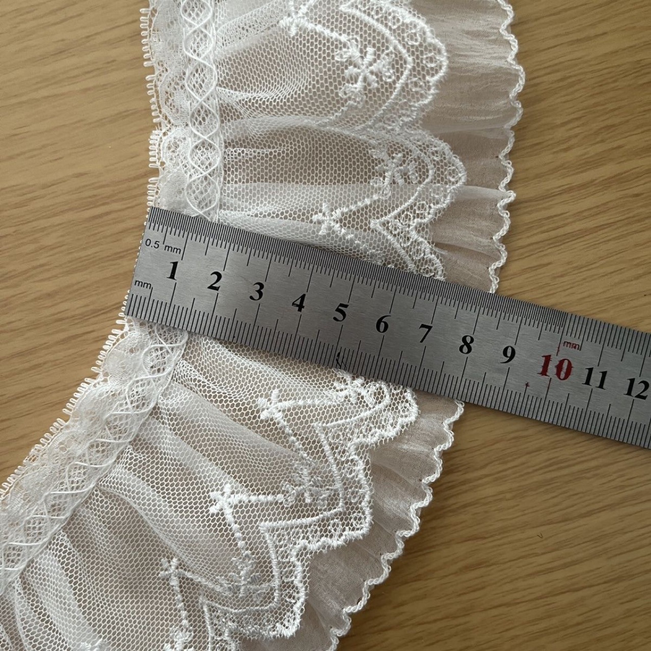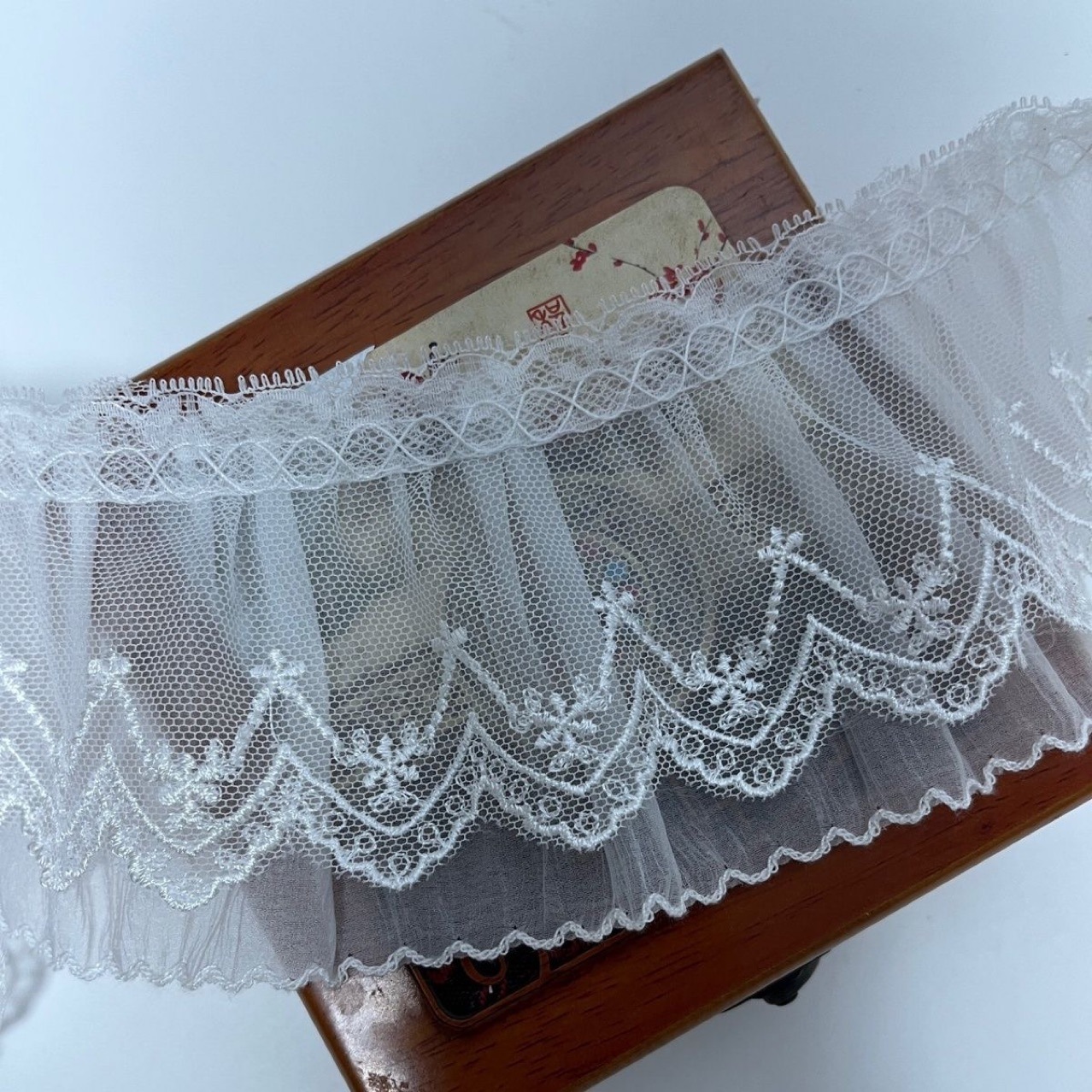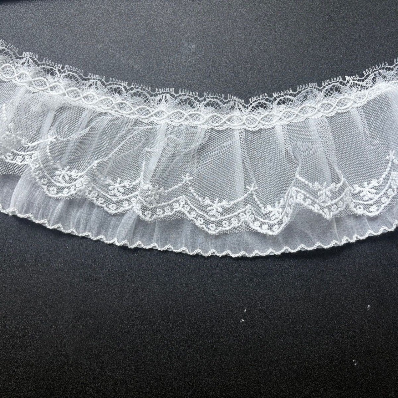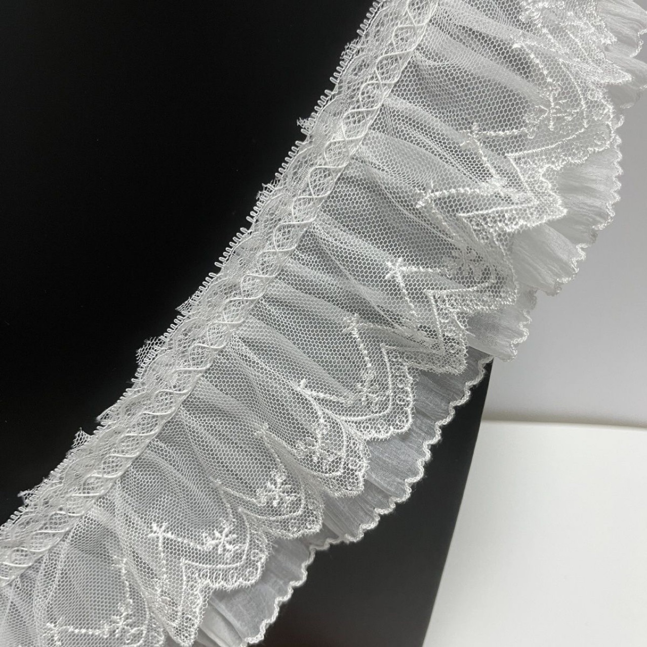 • 플리츠 더블 레이어 레이스 메쉬 [폭 약 8cm]