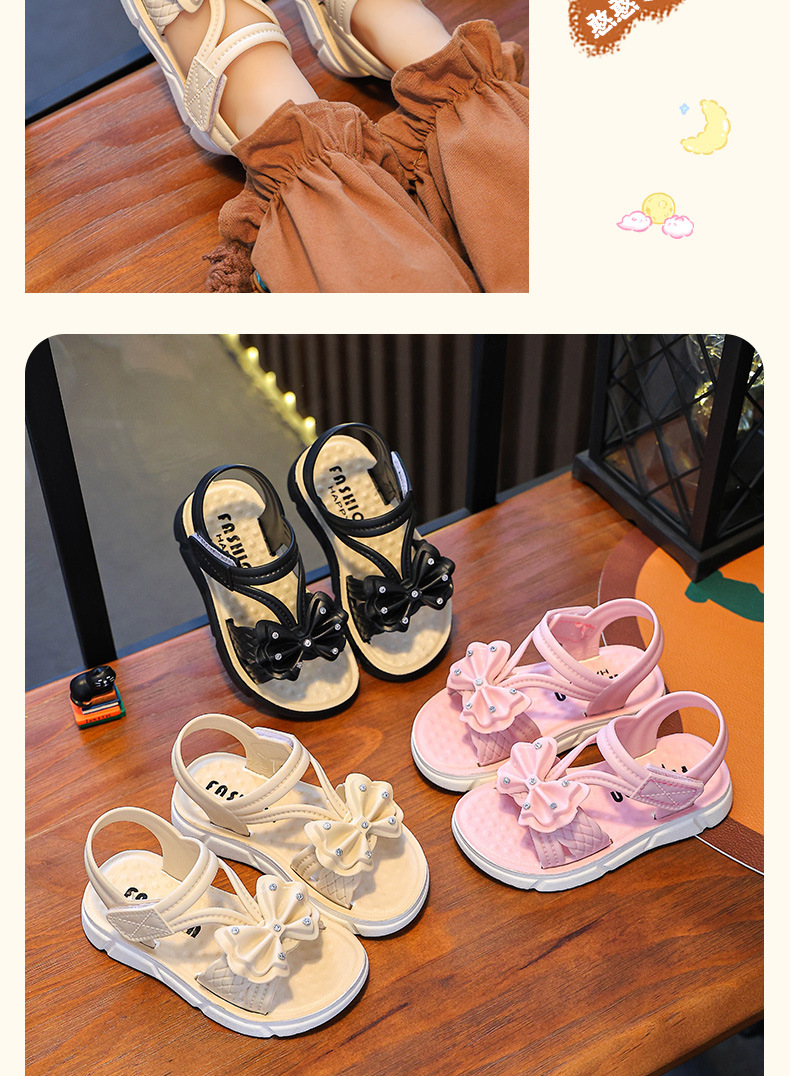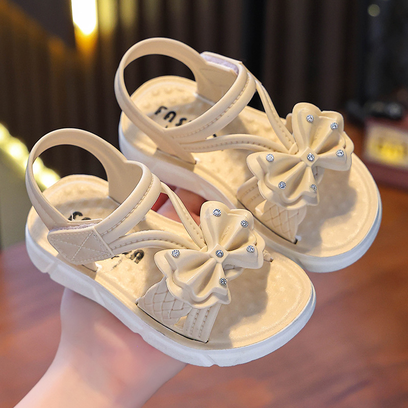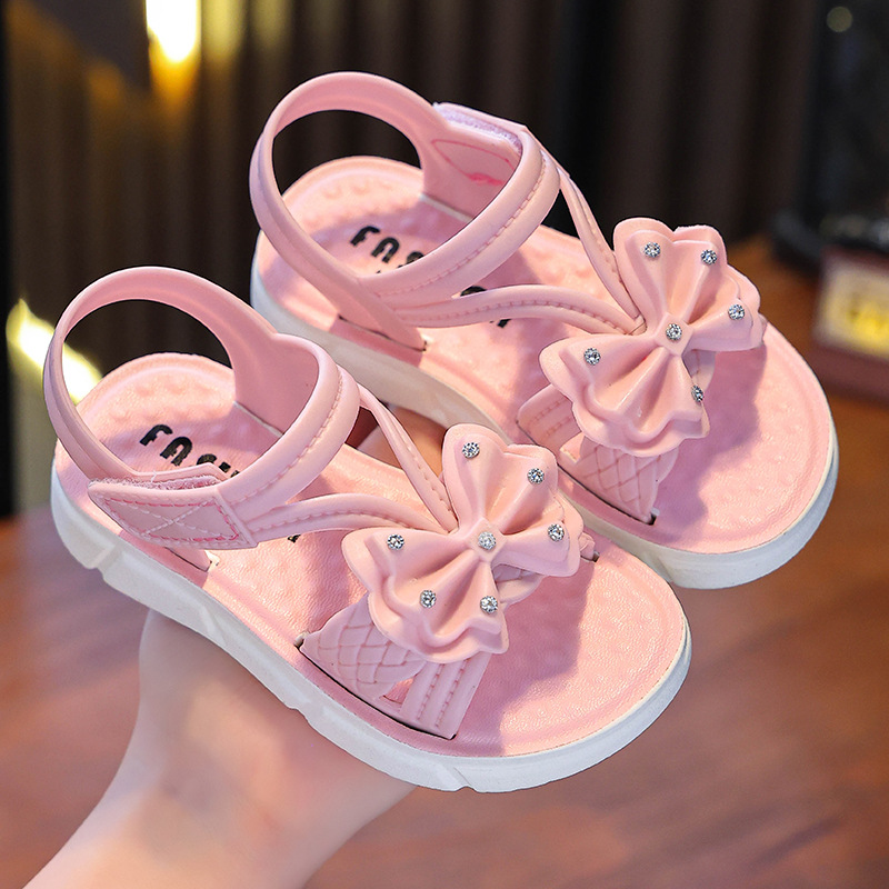 어린이 샌들 여름 새로운 스타일의 활 다목적 미끄럼 방지 어린 소녀 겉옷 부드러운 바닥 학생 공주 비치 샌들