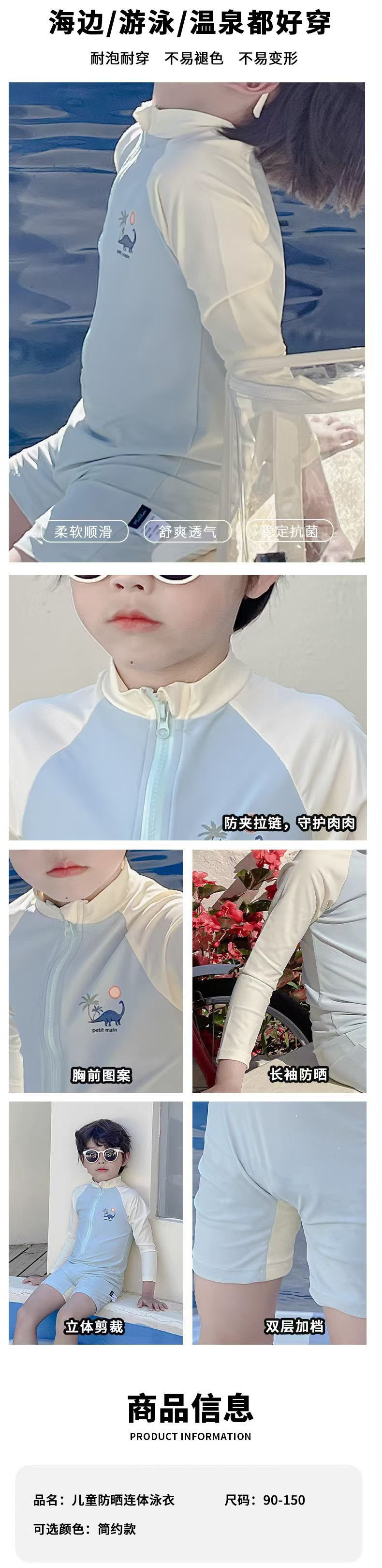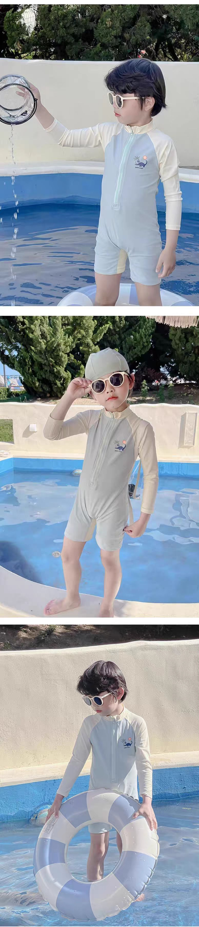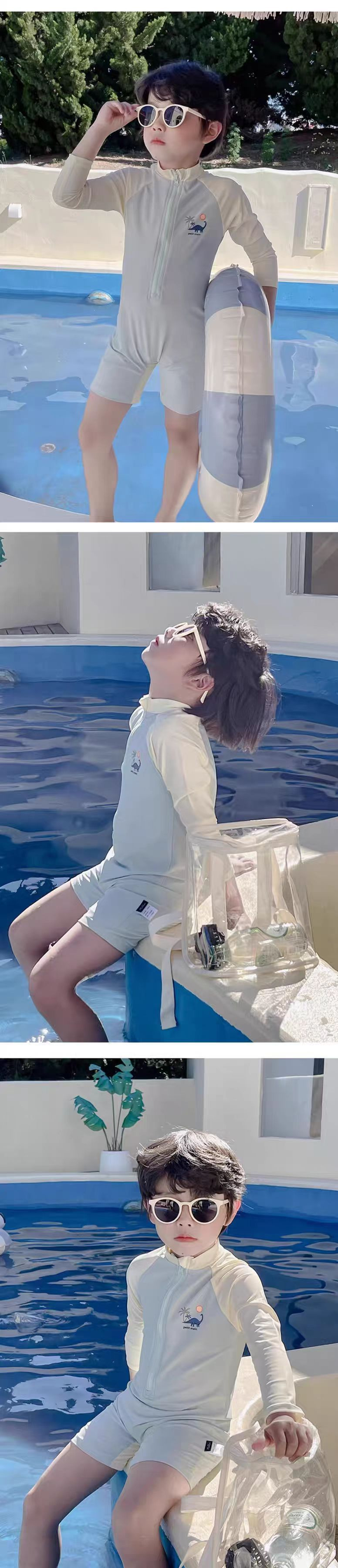 아동 수영복 소년 지퍼 원피스 수영복 여름 긴팔 자외선 차단제 속건성 온천 해변 휴가 수영복 유행